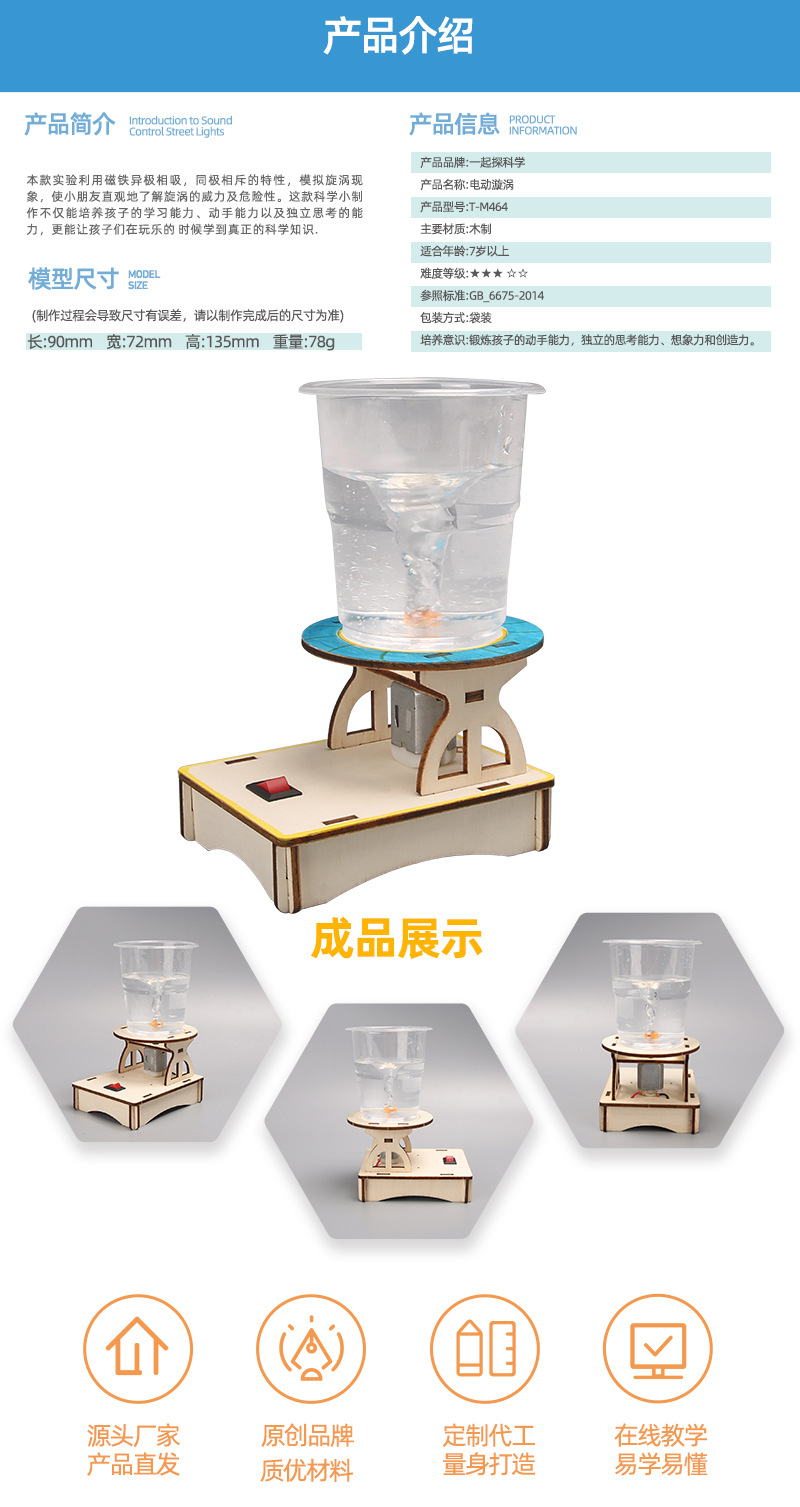 小学生玩具教具科学实验材料电动旋涡模拟水龙卷风模型科技小制作