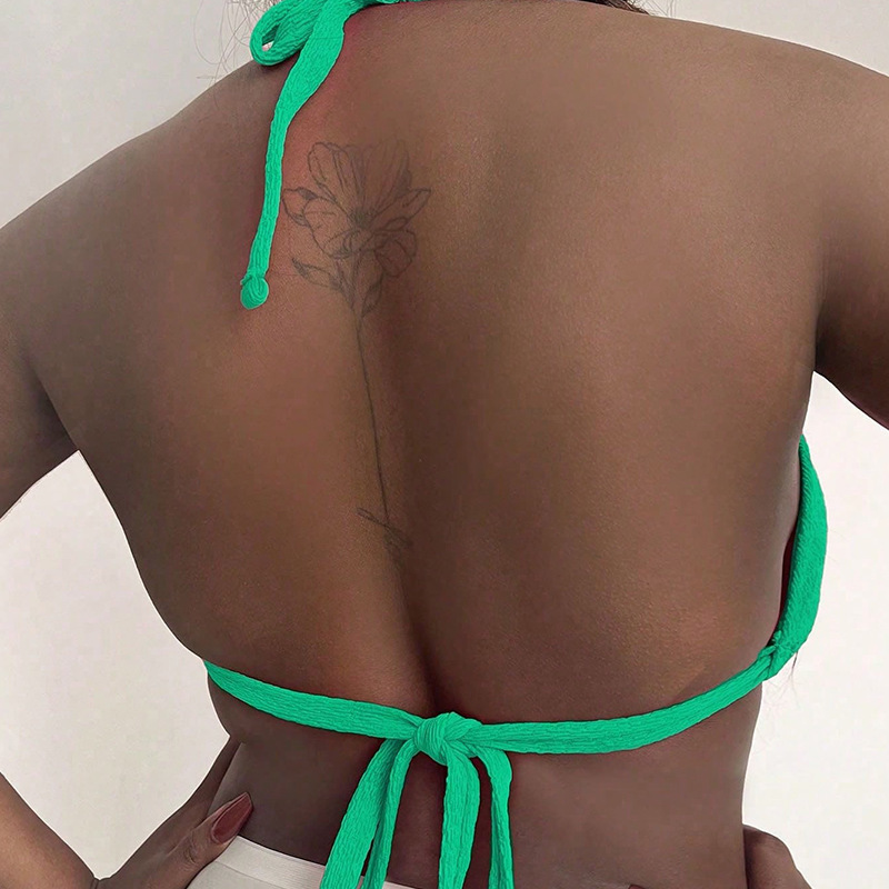 2025新款亚马逊欧美纯色挂脖大码泳衣女沙滩比基尼性感系带单上衣
