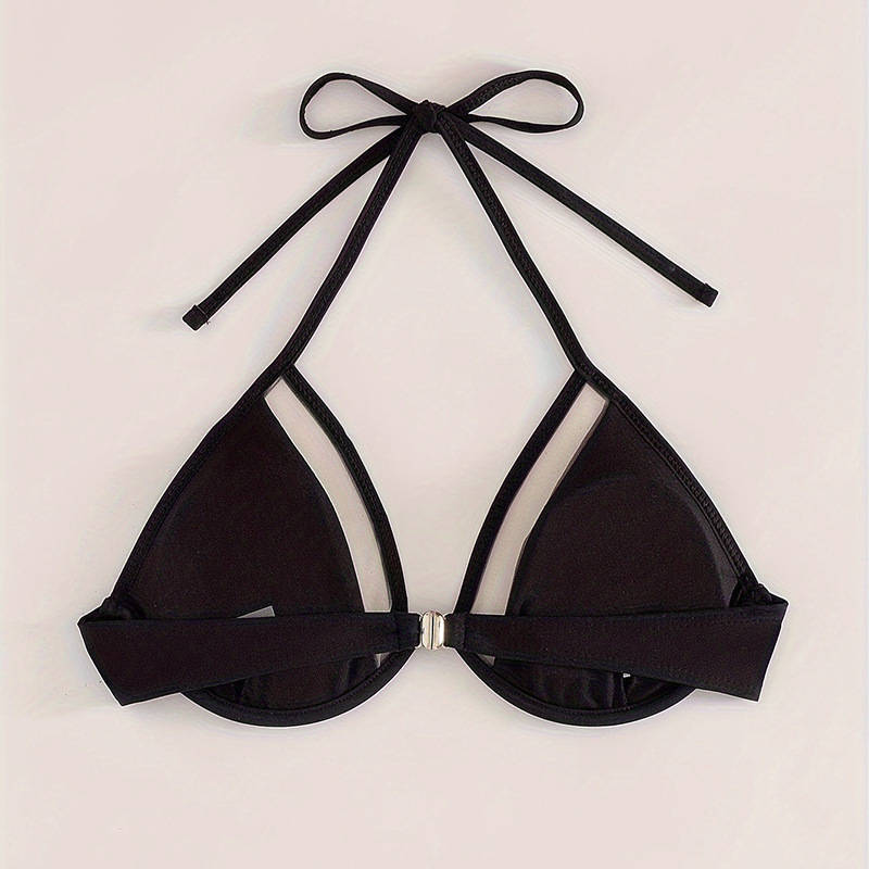 现货批发比基尼亚马逊欧美纯色系带钢托沙滩泳衣女高级感泳装上衣