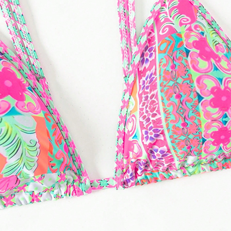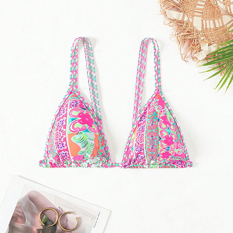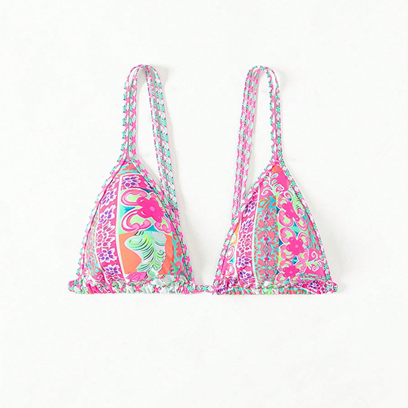 亚马逊葫芦岛泳装2025新款印花吊带比基尼沙滩泳衣女款文胸单上衣