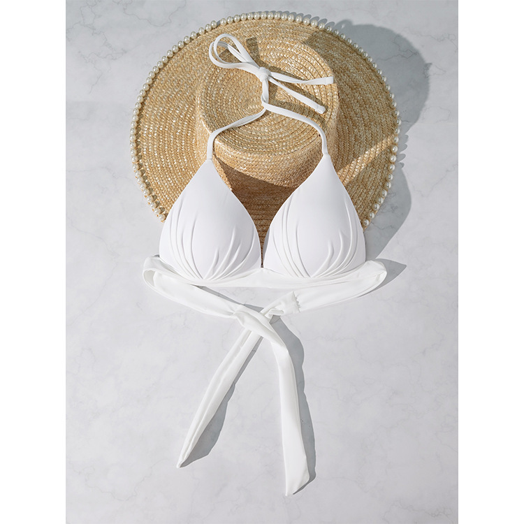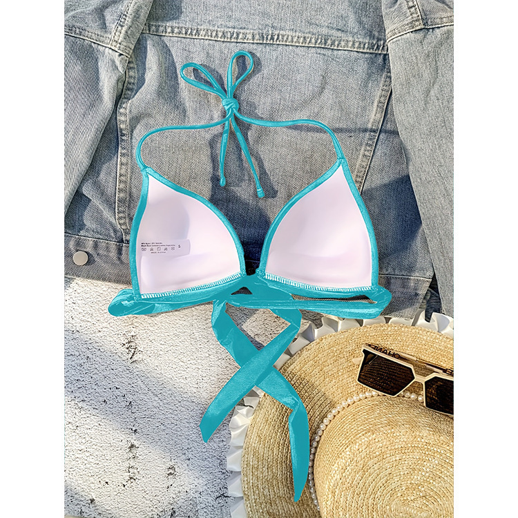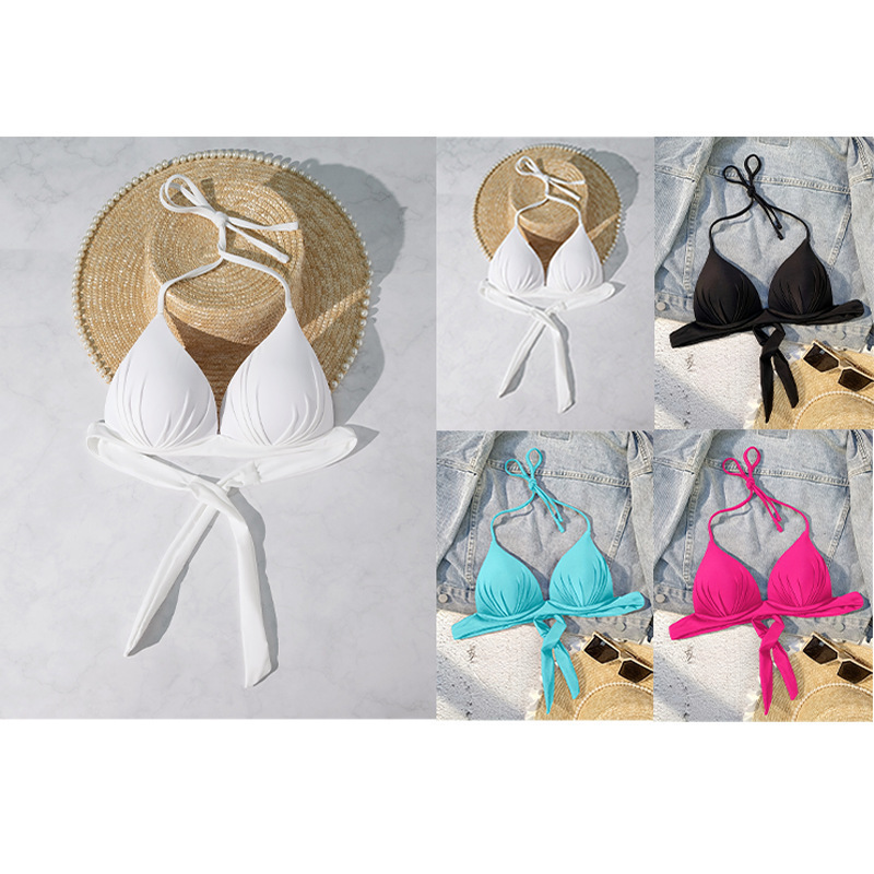 2025新款跨境欧美挂脖系带聚拢比基尼泳衣女温泉沙滩性感泳装上衣