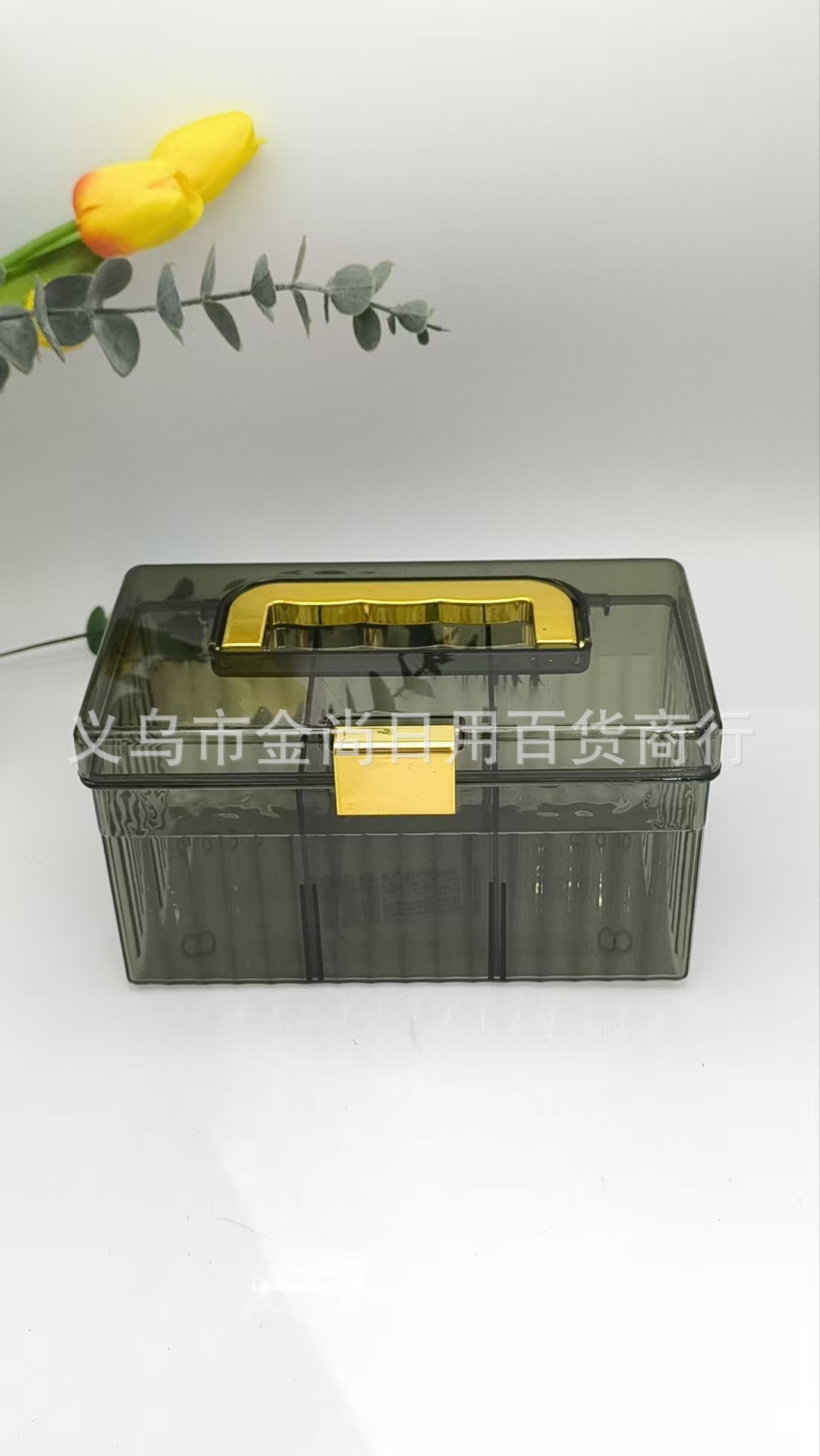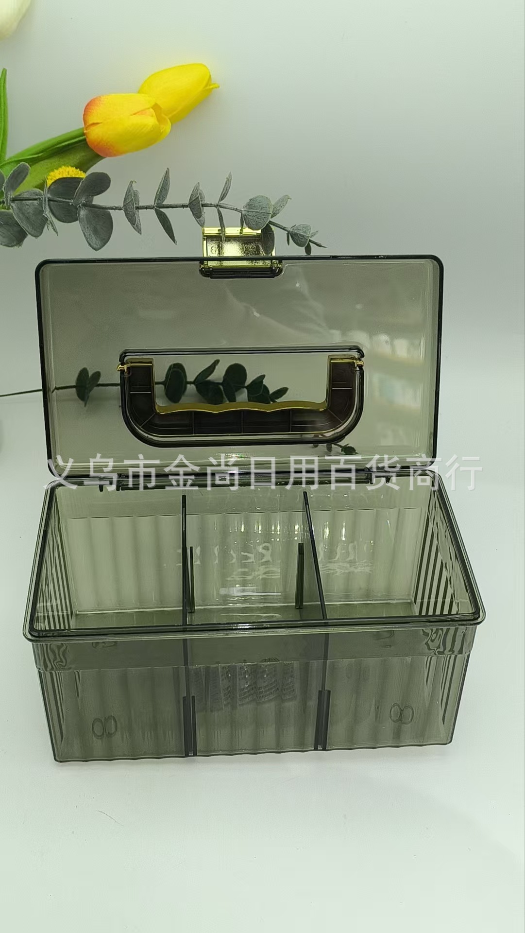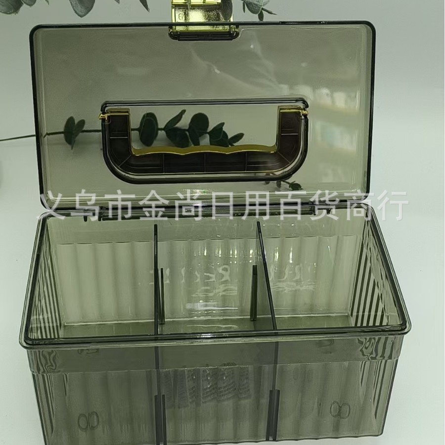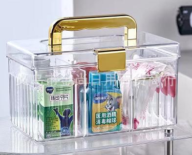 塑料透明手提三格收纳箱小型家用药箱杂物收纳盒便携式收纳盒口罩