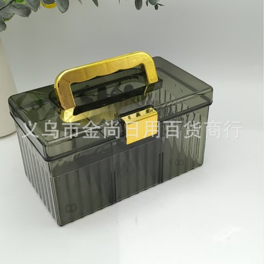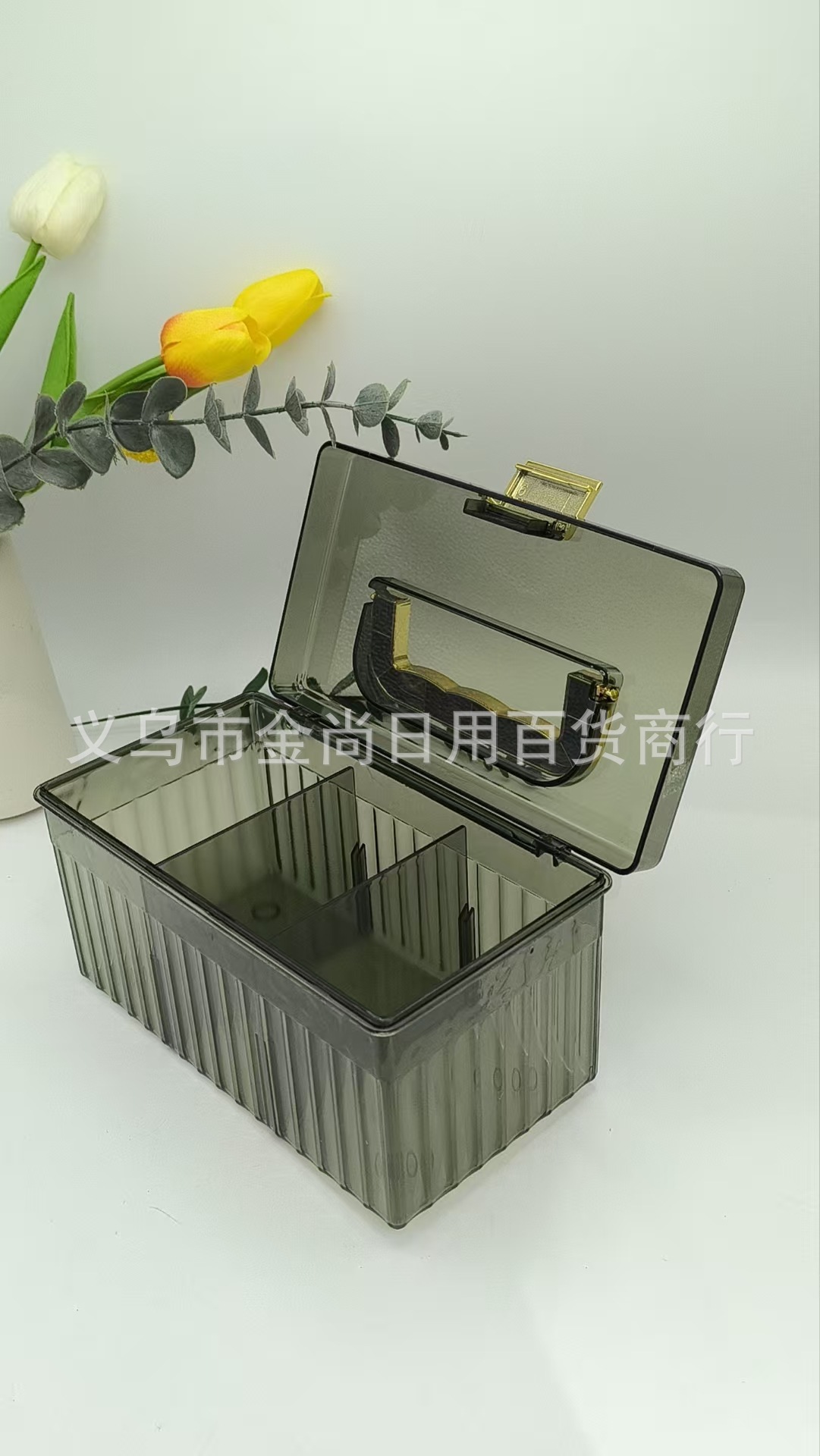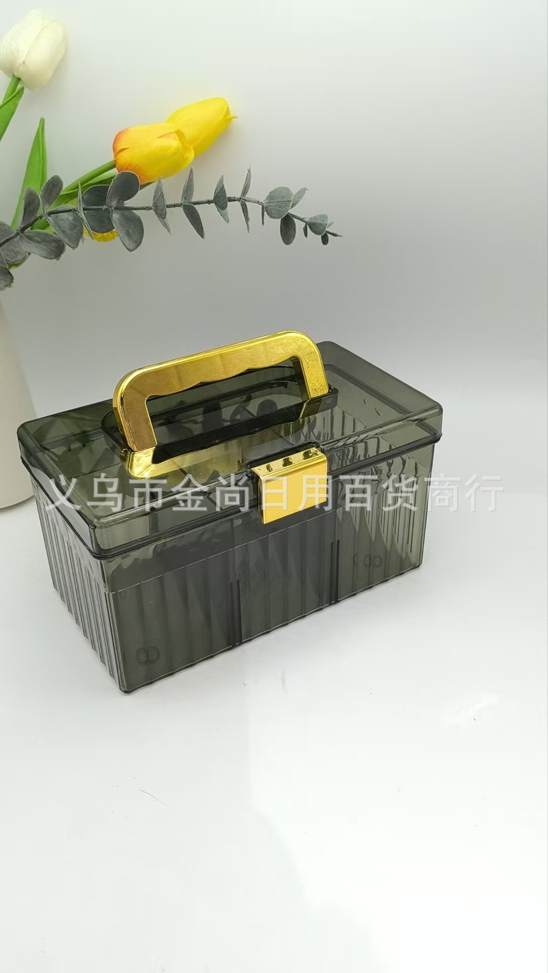 塑料透明手提三格收纳箱小型家用药箱杂物收纳盒便携式收纳盒口罩
