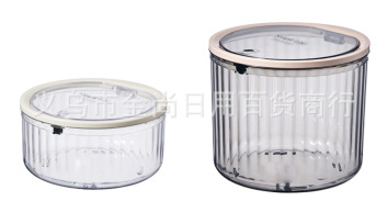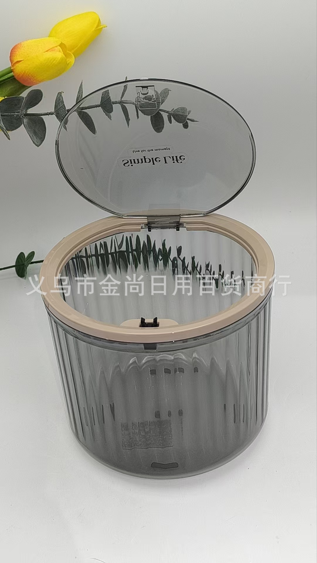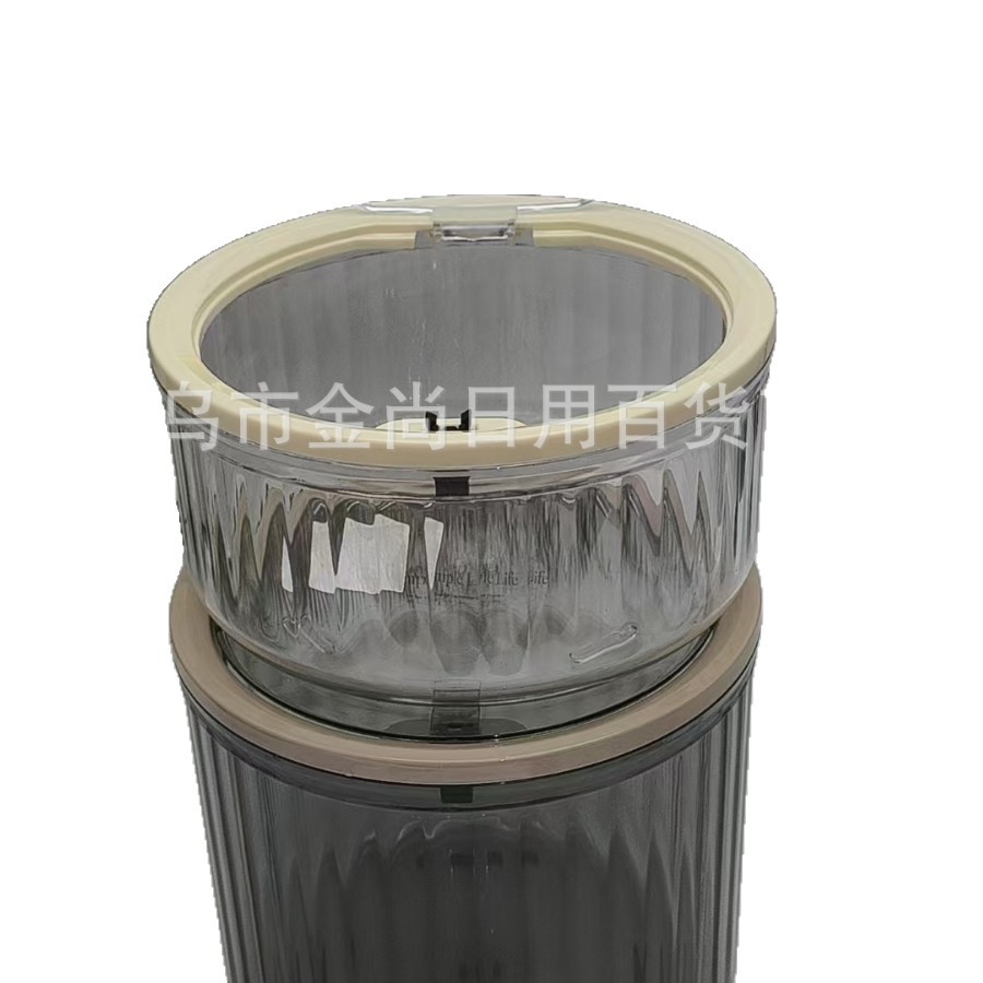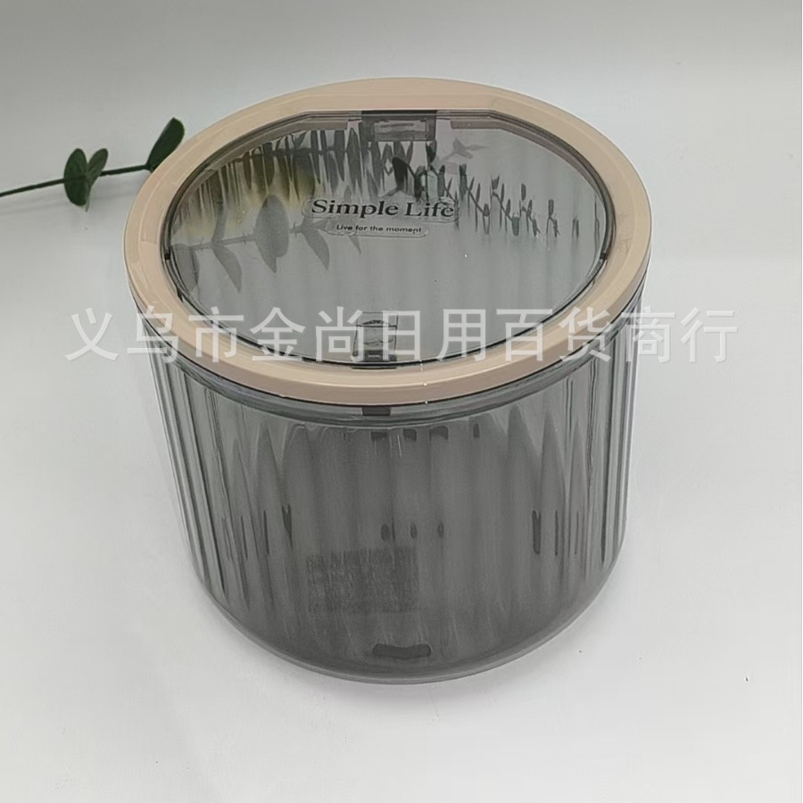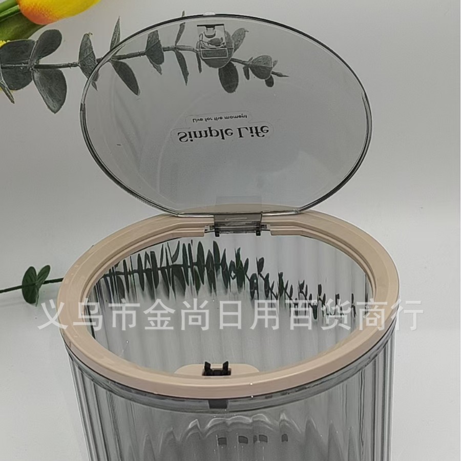 桌面垃圾桶圆形弹盖竖条纹收纳盒家用高颜值透明厨房台面餐桌卧室