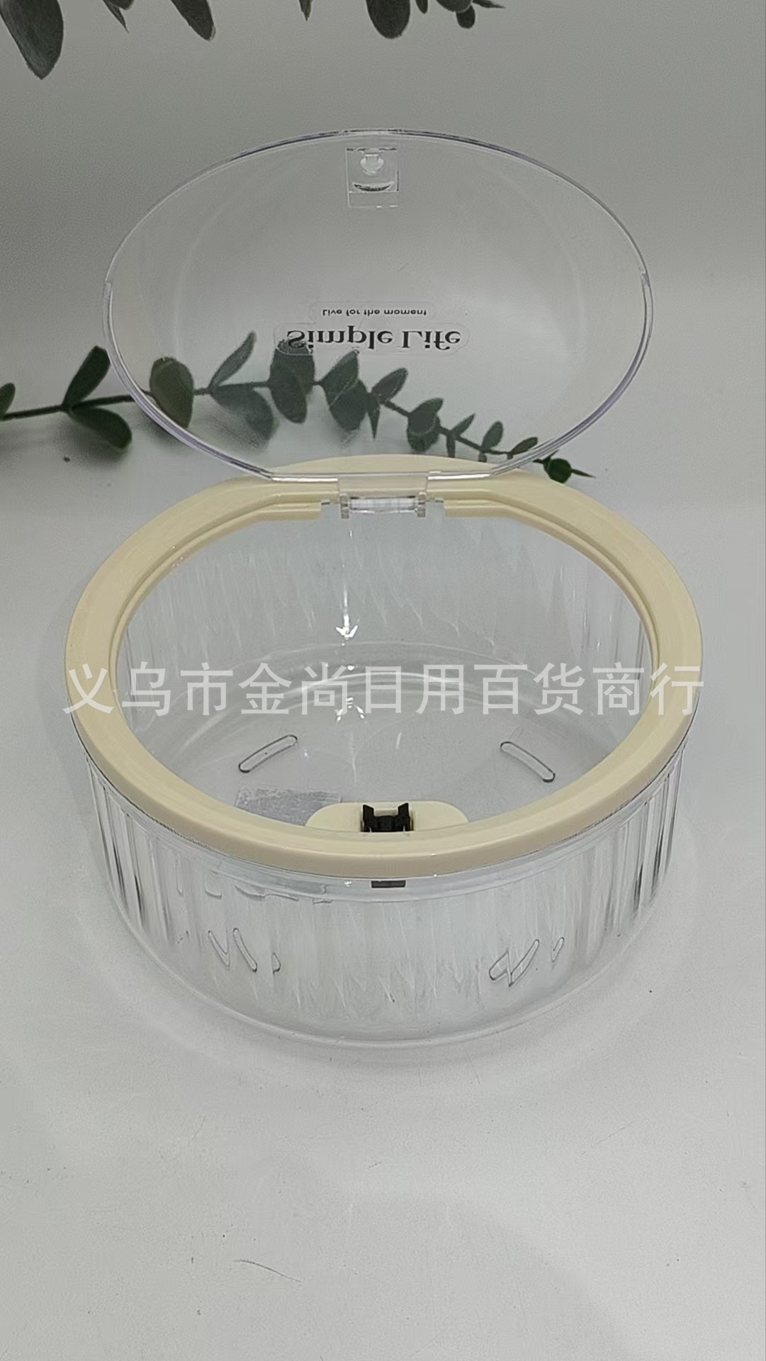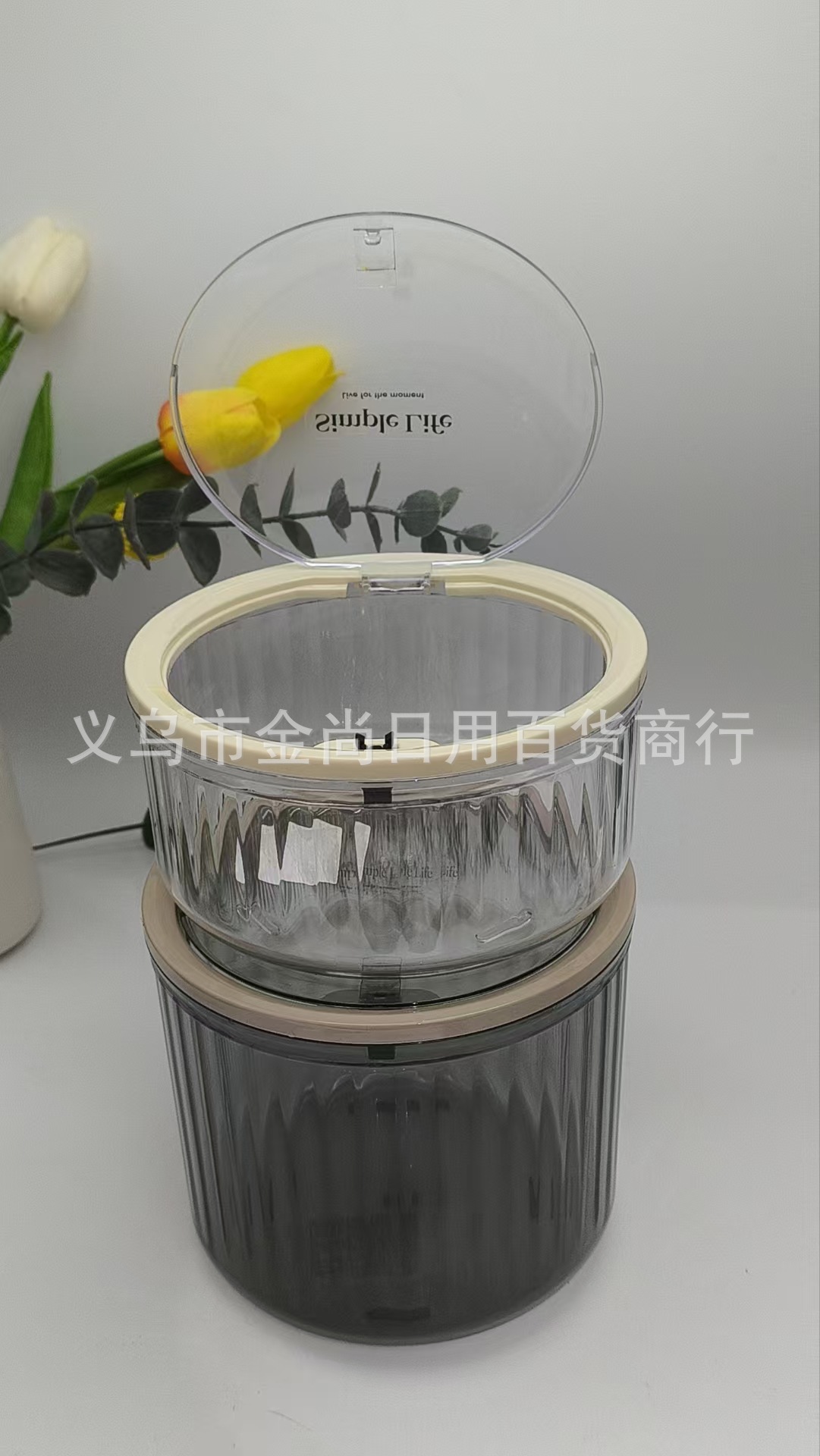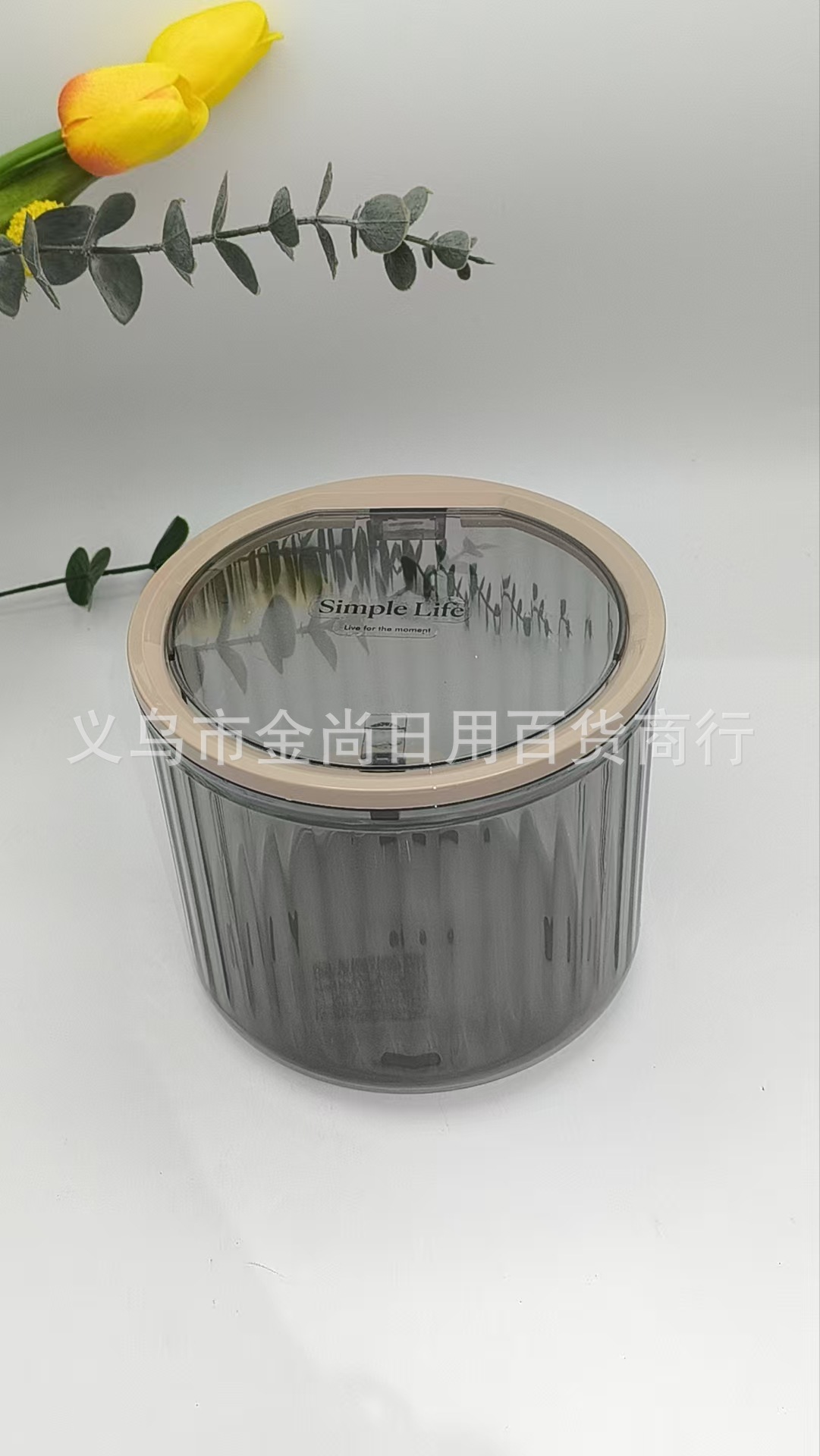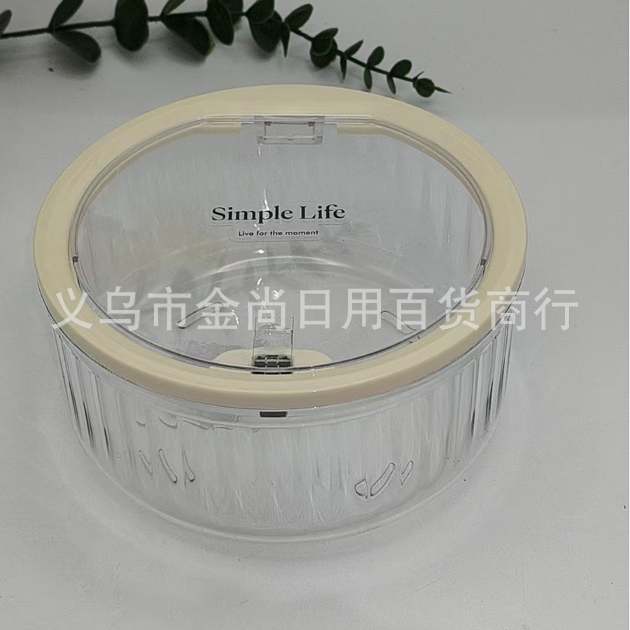 桌面垃圾桶圆形弹盖竖条纹收纳盒家用高颜值透明厨房台面餐桌卧室