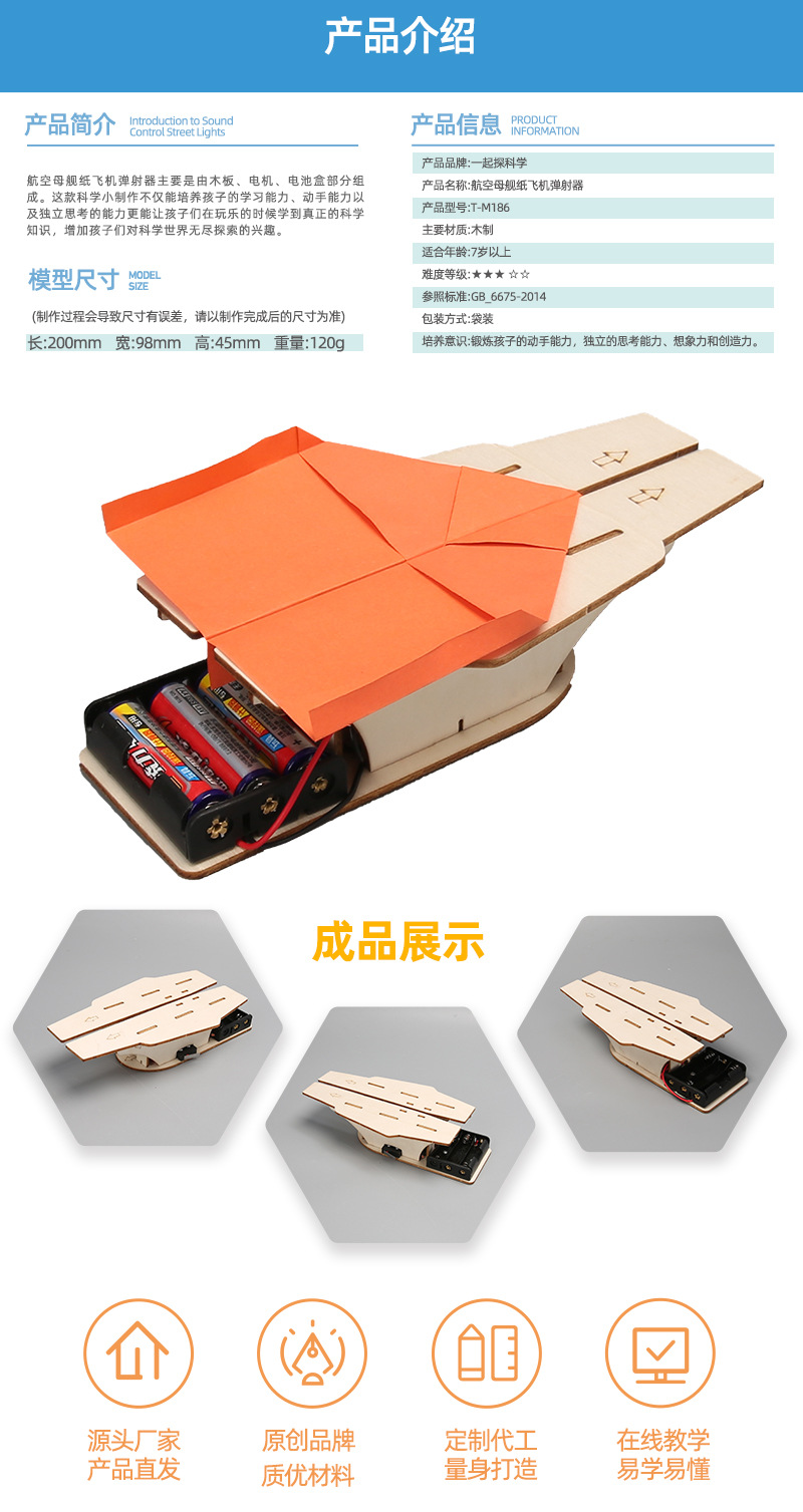 航空母舰纸飞机弹射器科技小制作儿童不科学实验教玩具小学生手工