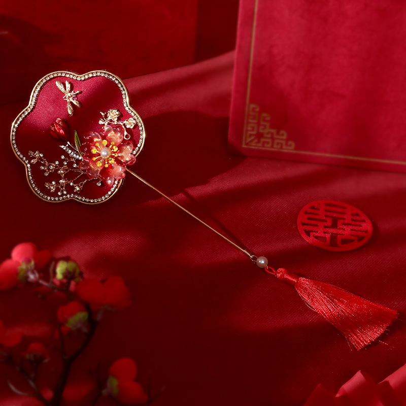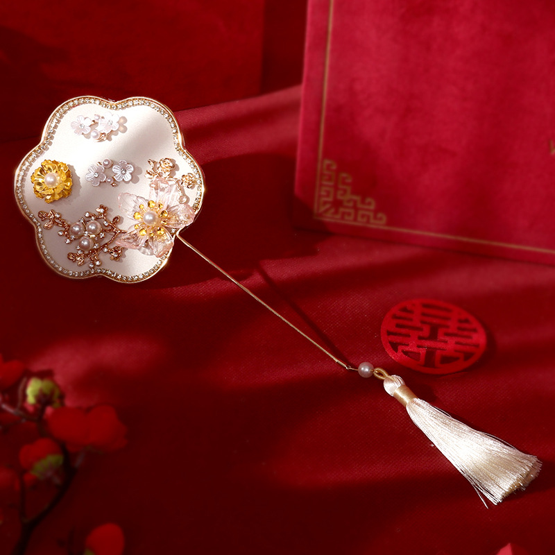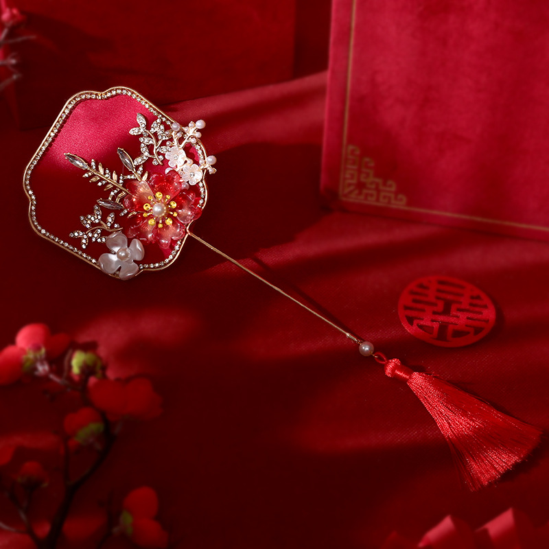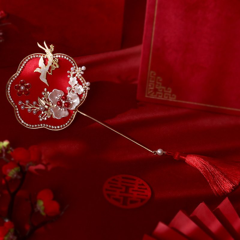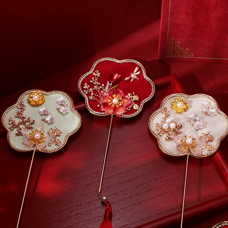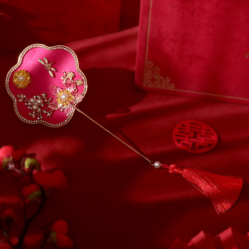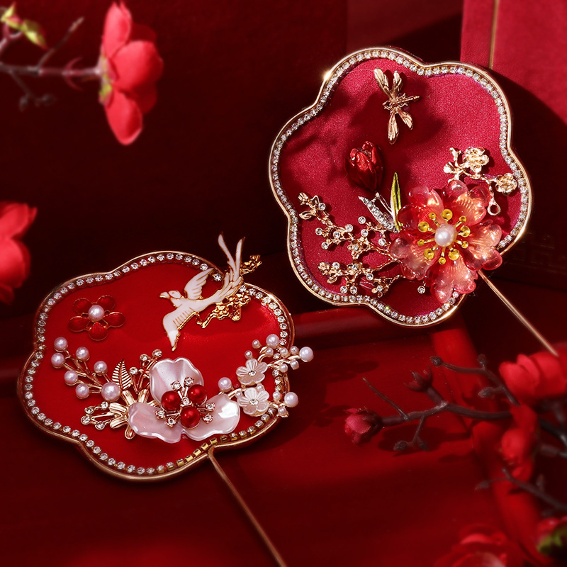 中式秀禾扇子迷你巴掌扇古风旗袍拍照道具结婚用品伴娘新娘小团扇