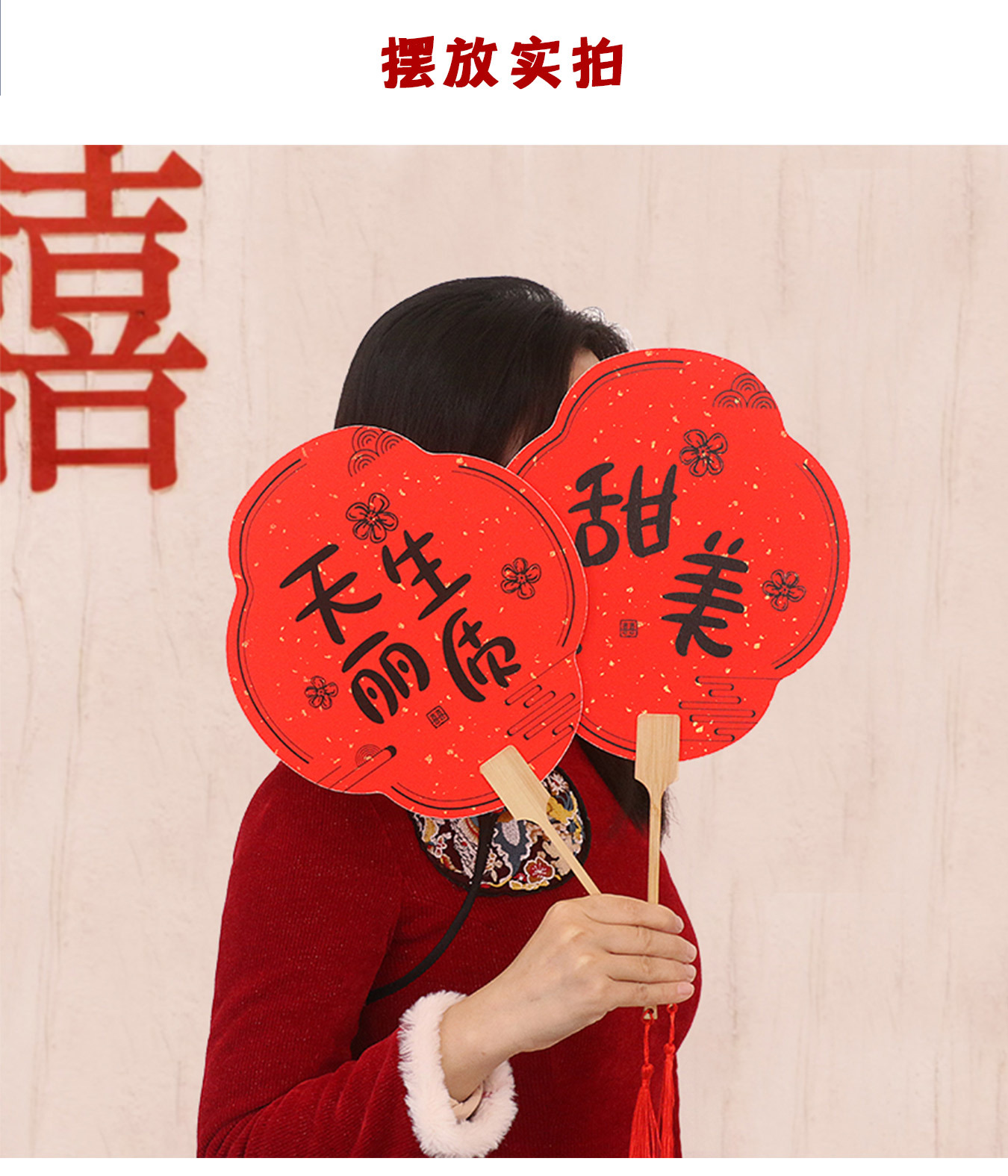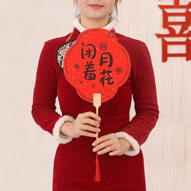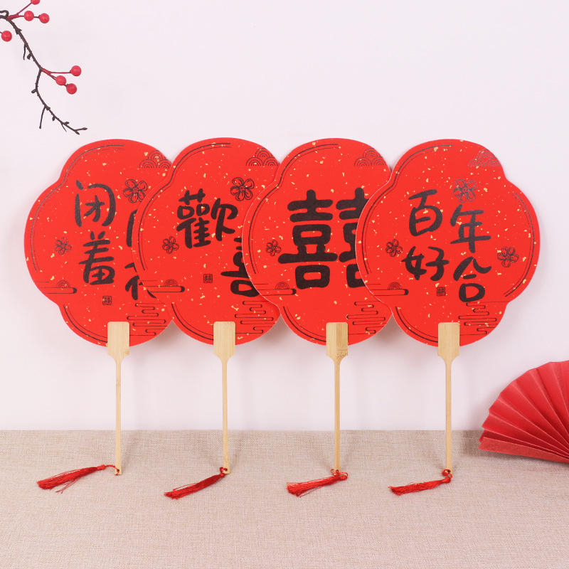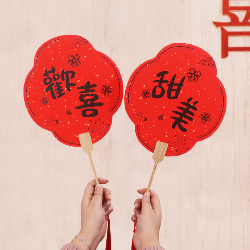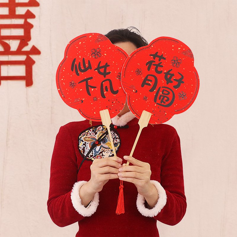 伴娘团扇新娘结婚姐妹迎亲扇中式拍照道具宾客接亲婚礼红色喜扇