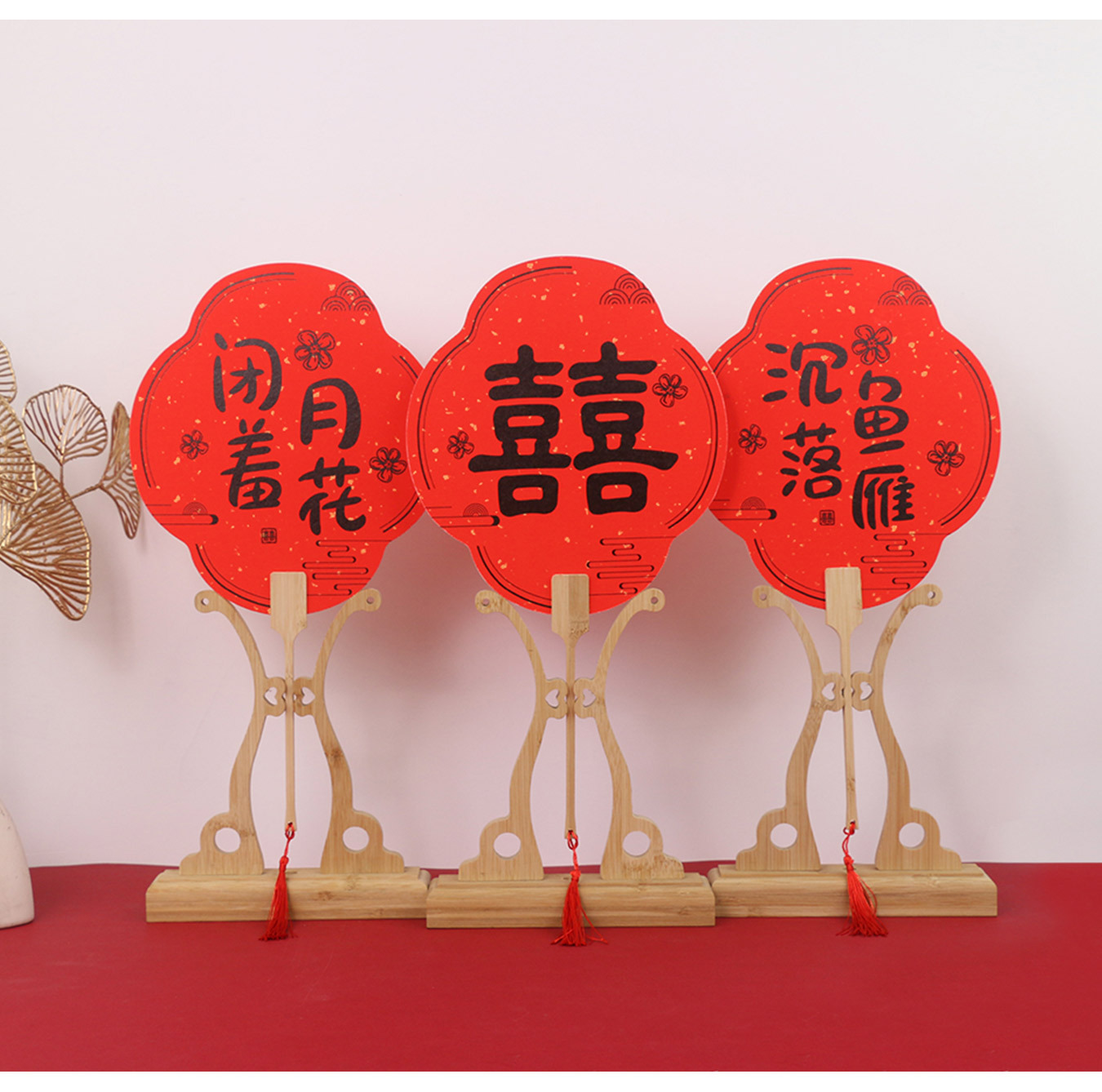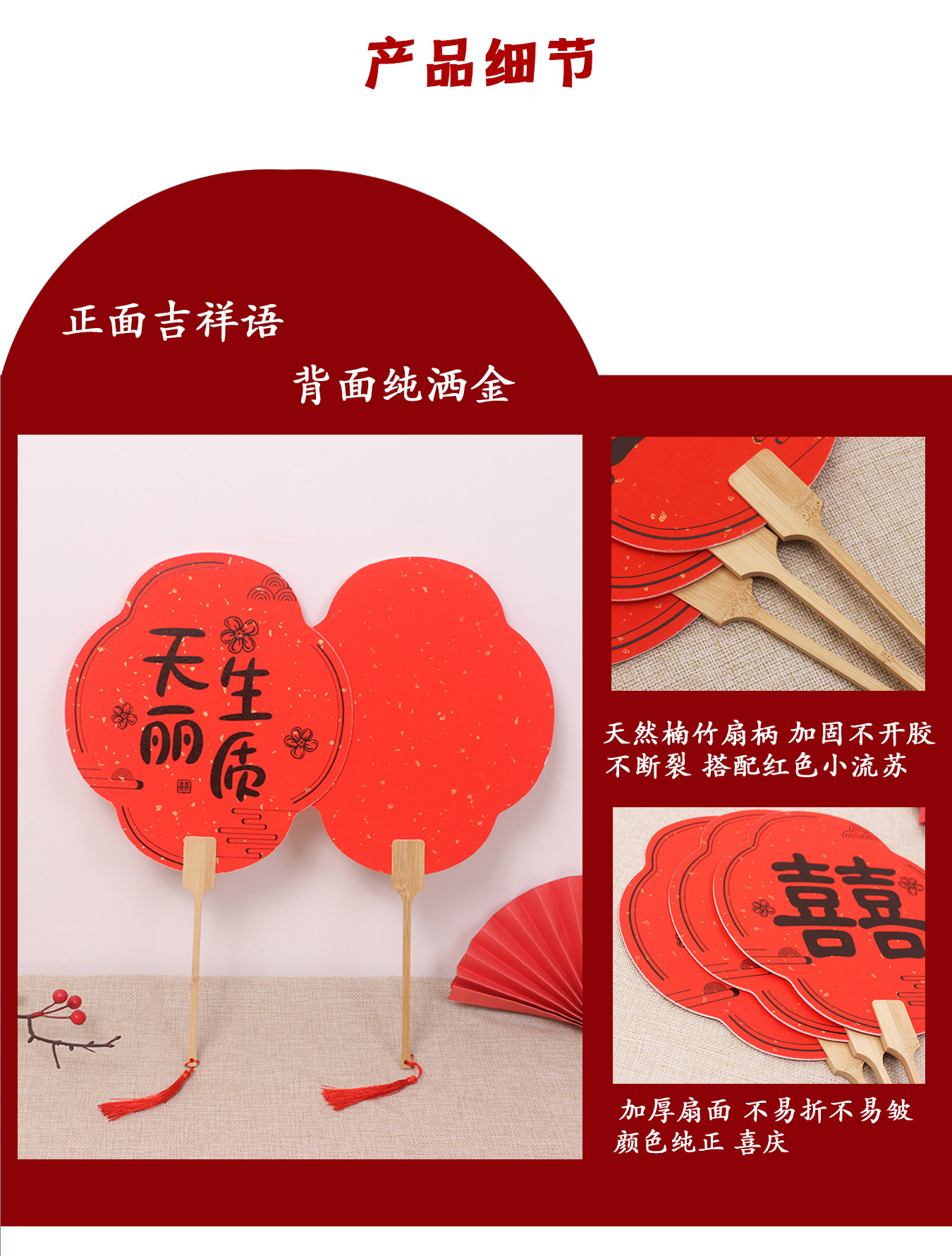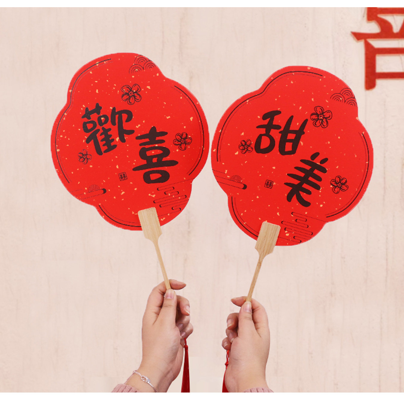 伴娘团扇新娘结婚姐妹迎亲扇中式拍照道具宾客接亲婚礼红色喜扇