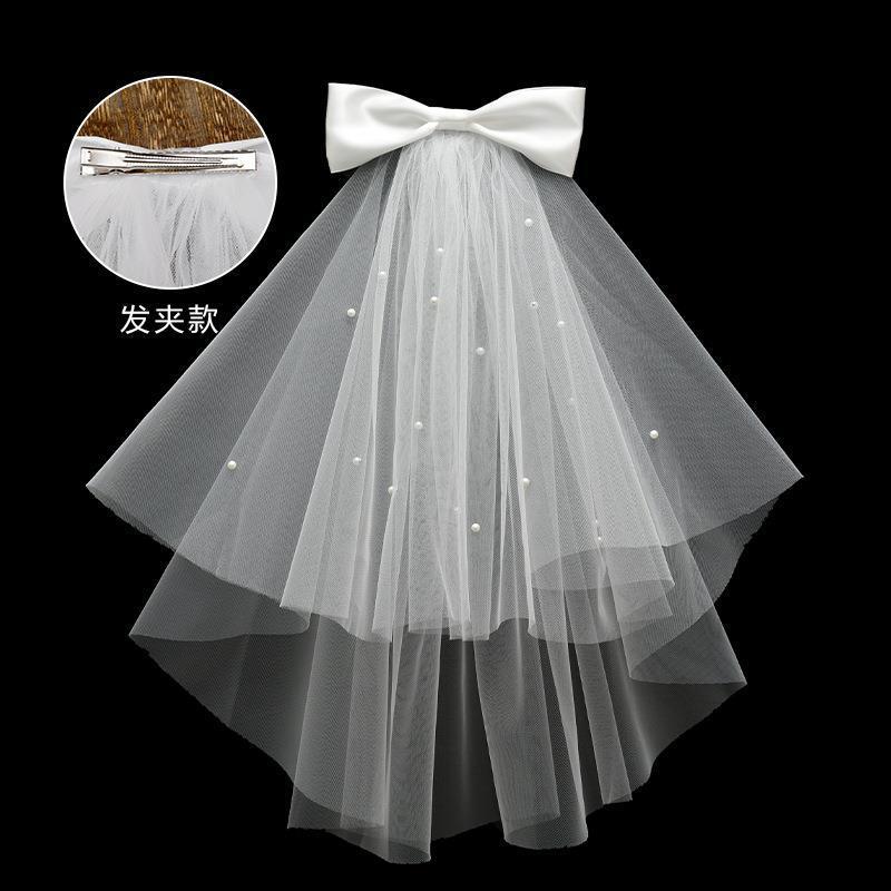 领证头纱登记求婚头饰简约短款新娘结婚主婚纱头饰高级婚礼小头纱