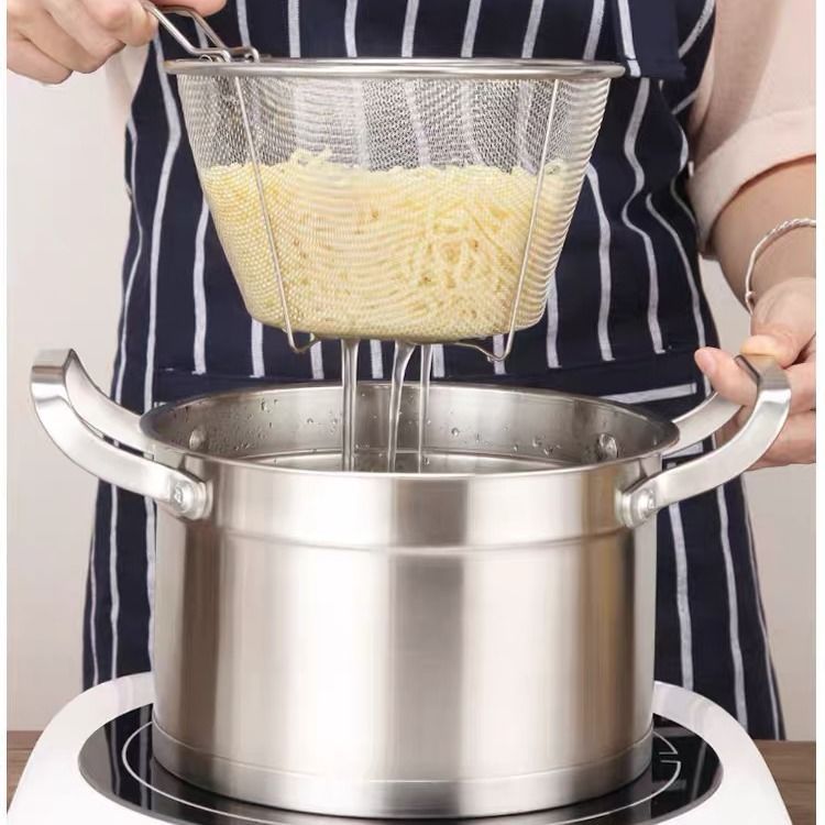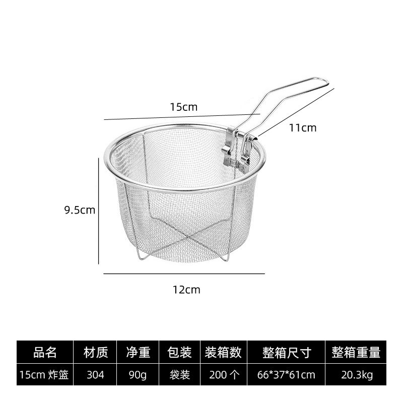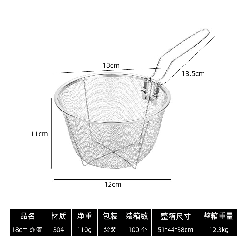 跨境304不锈钢炸网笊篱捞面勺油炸网炸篮油炸漏网薯条厨房可折叠