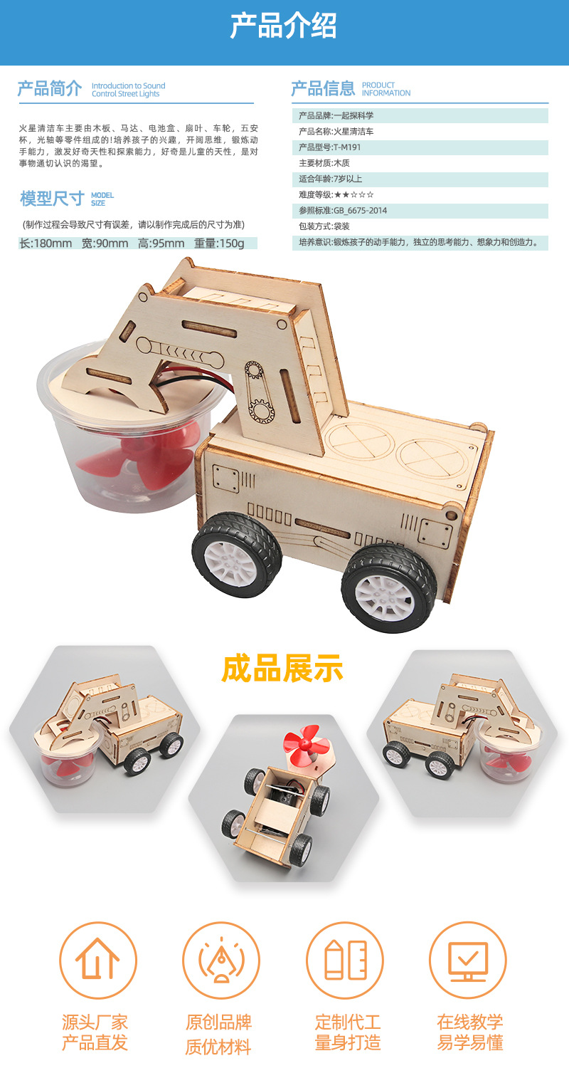 火星清洁扫地车垃圾吸尘器中小学创意手工 木制DIY小制作科学教具