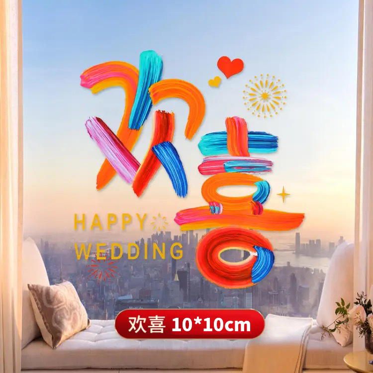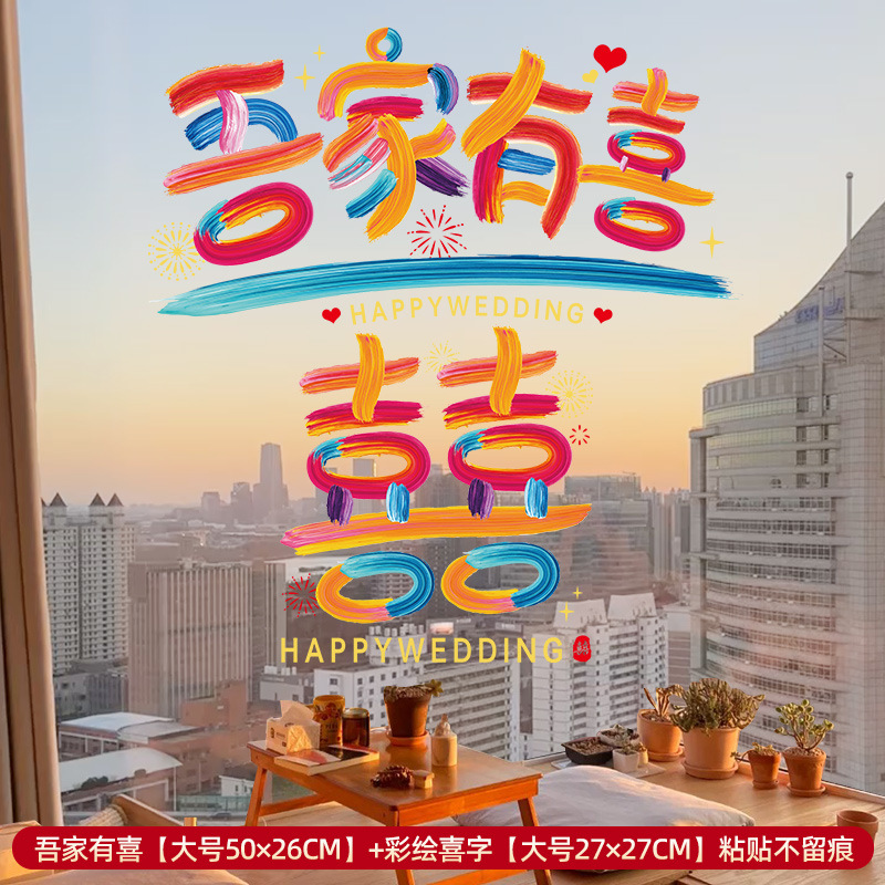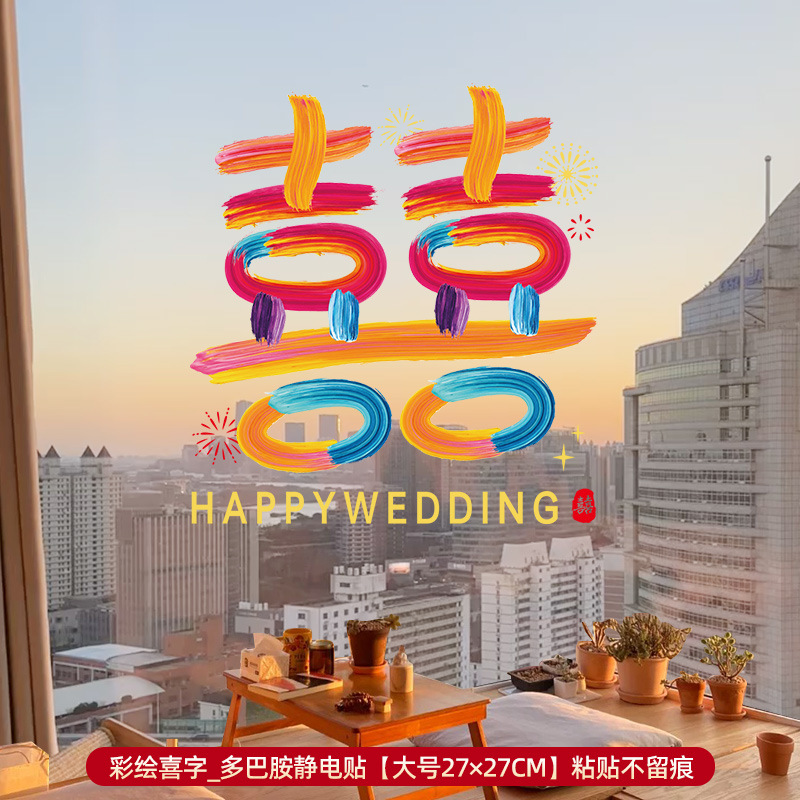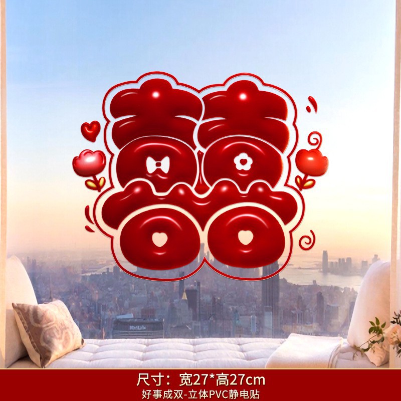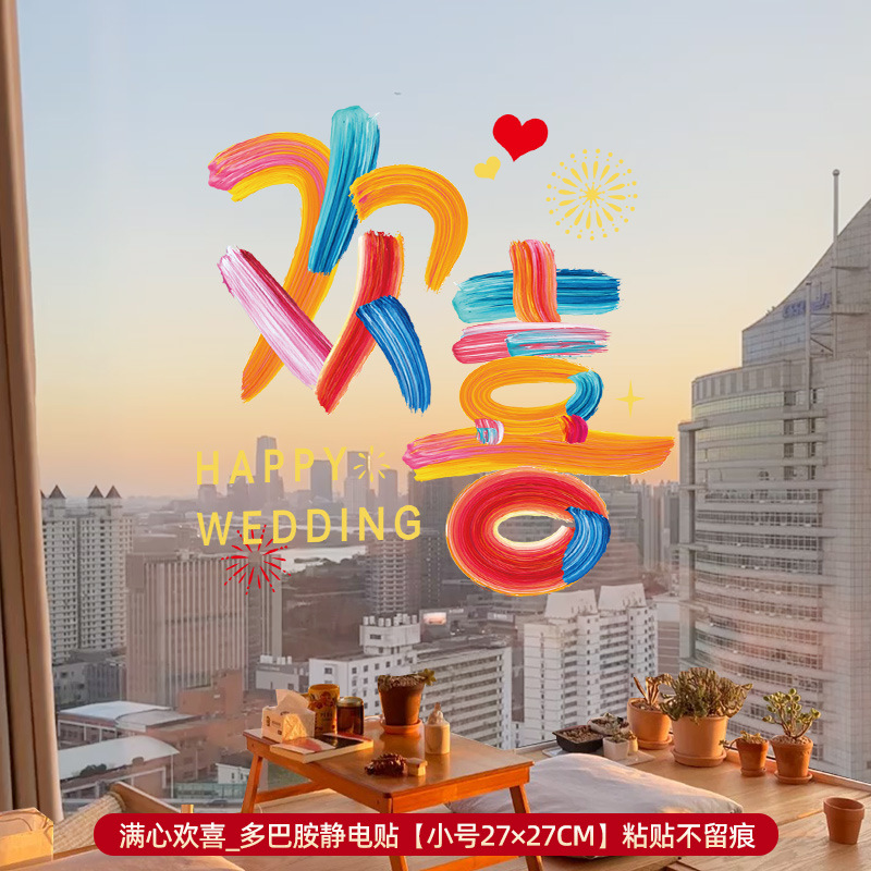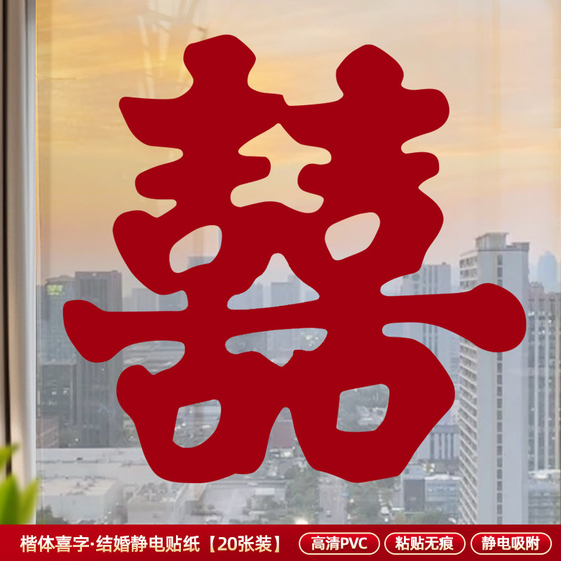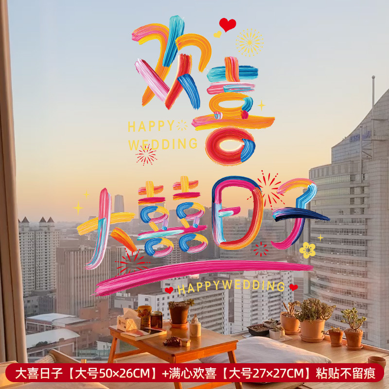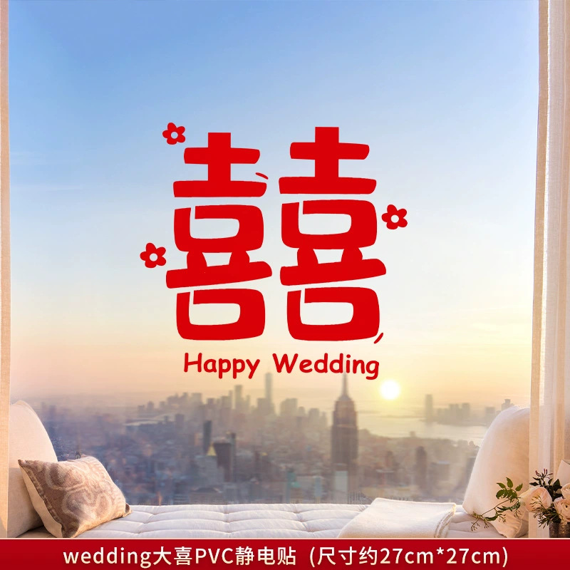 喜字静电贴婚房布置套装饰窗户玻璃多巴胺喜字贴婚庆结婚用品大全