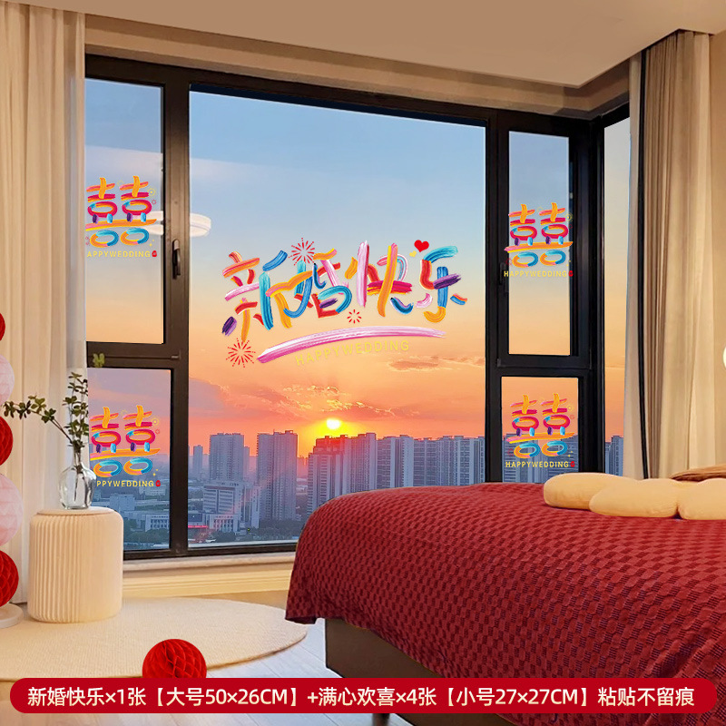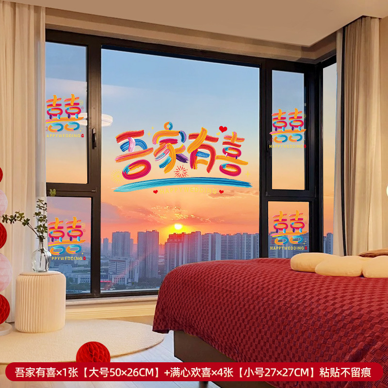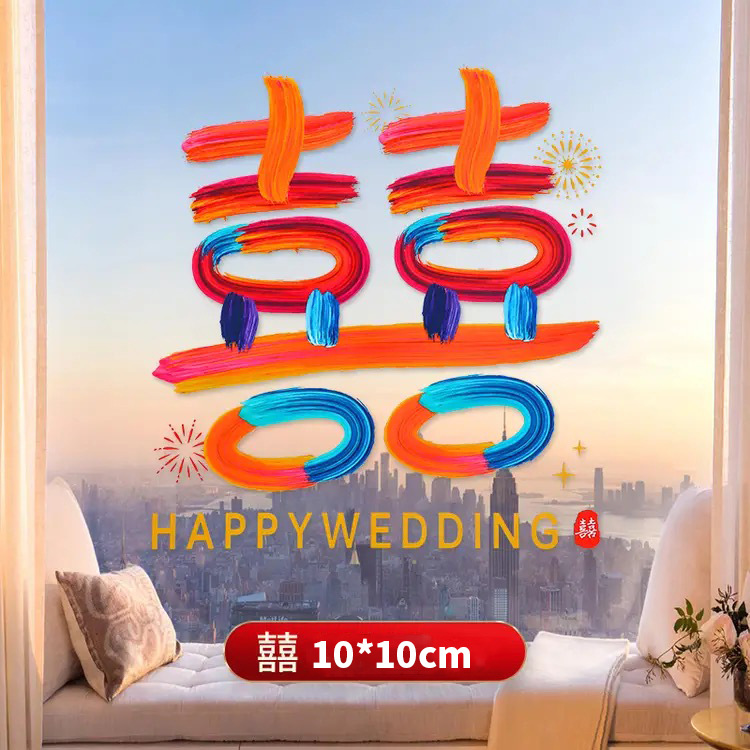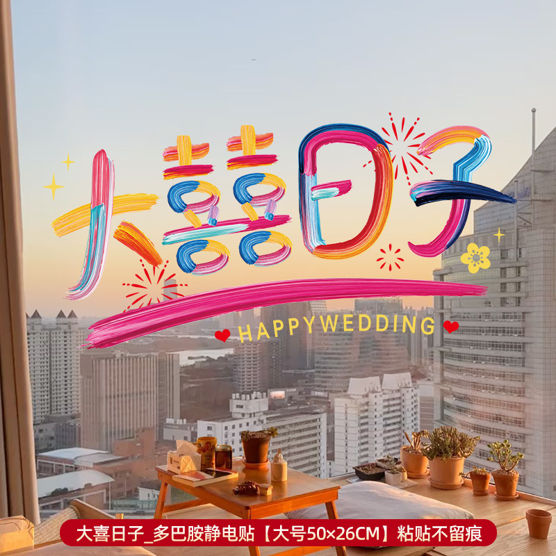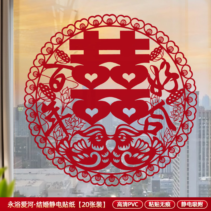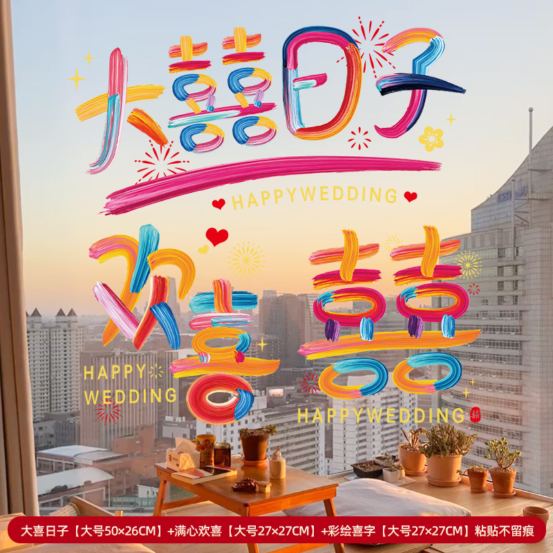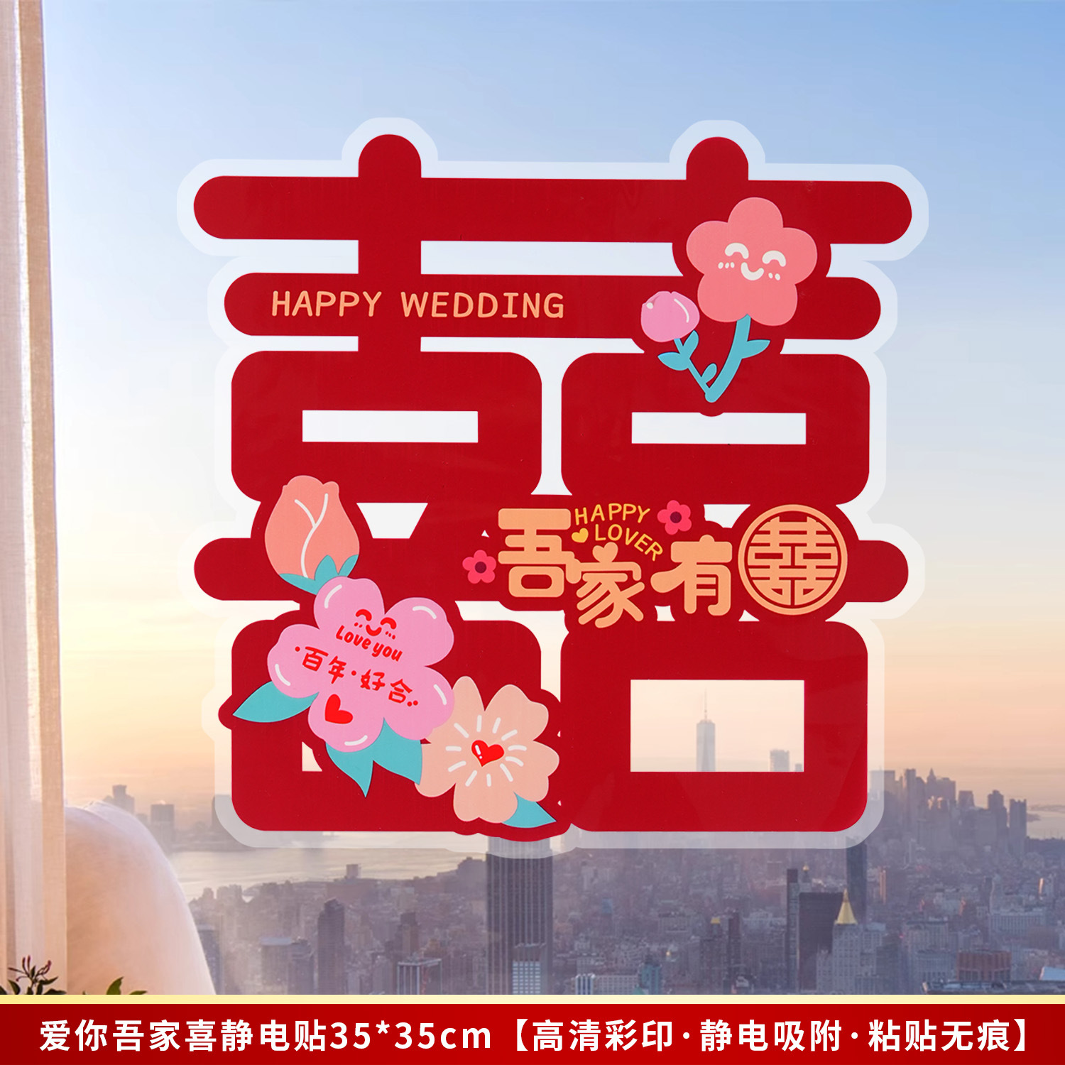 喜字静电贴婚房布置套装饰窗户玻璃多巴胺喜字贴婚庆结婚用品大全