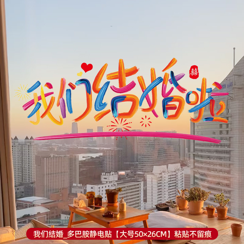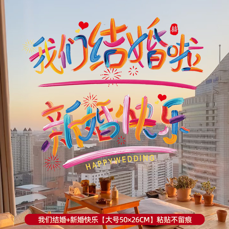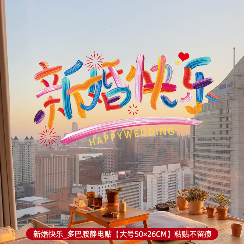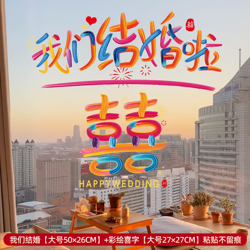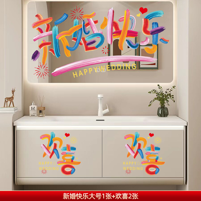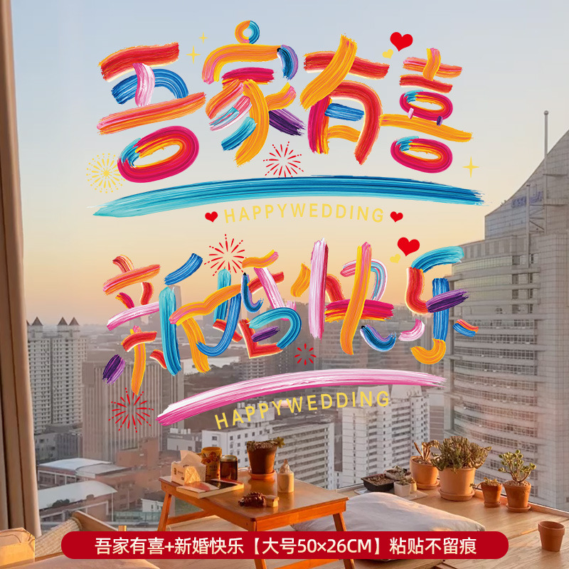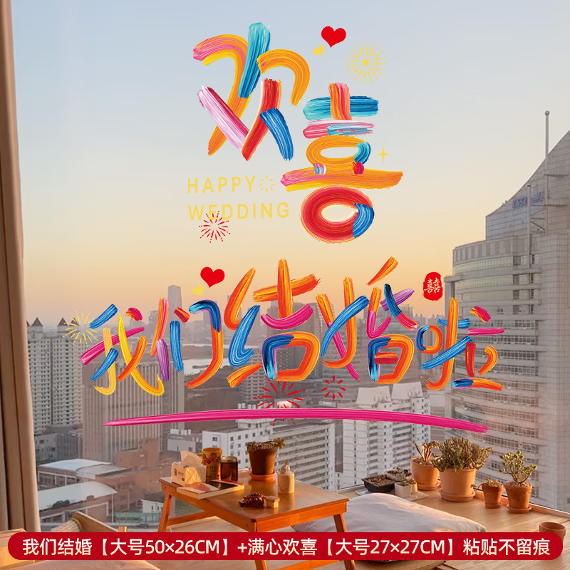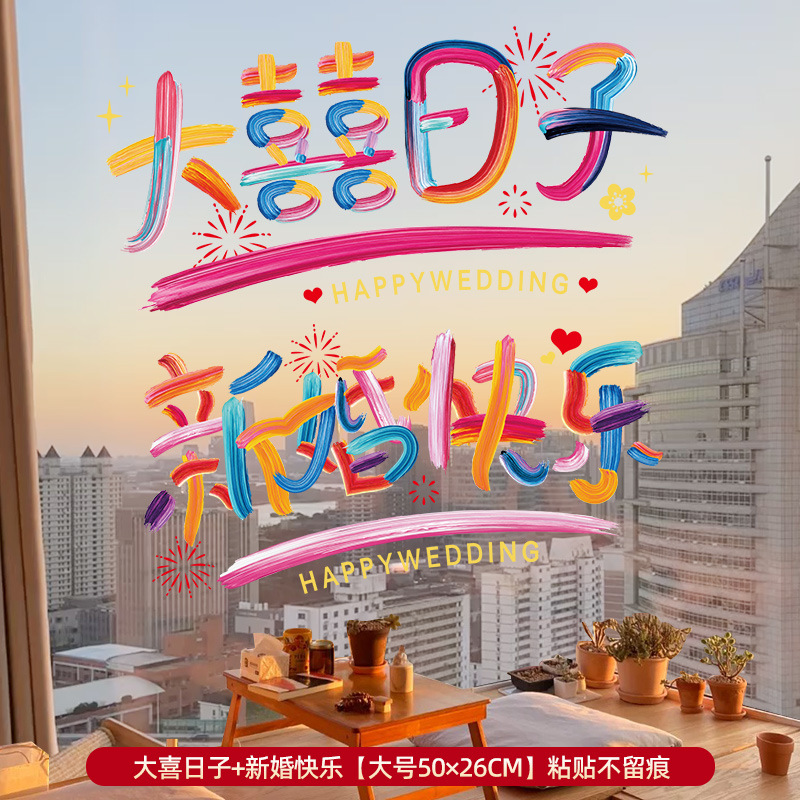 喜字静电贴婚房布置套装饰窗户玻璃多巴胺喜字贴婚庆结婚用品大全