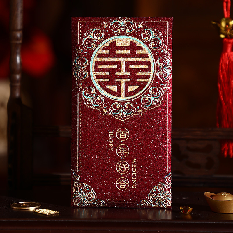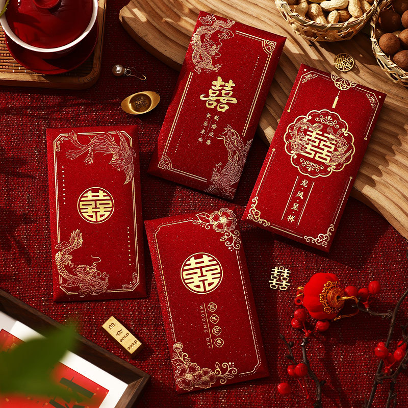 婚礼用品结婚红包金葱喜字烫金红包批发利是封婚庆红包袋改口喜包