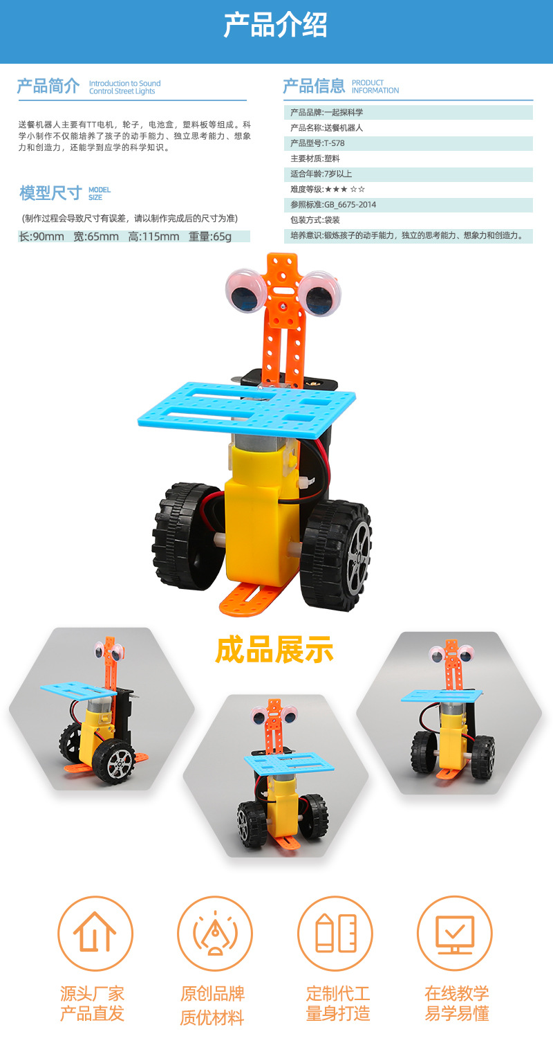 送餐机器人 科技小制作发明diy儿童手工拼插玩具科学实验材料教具