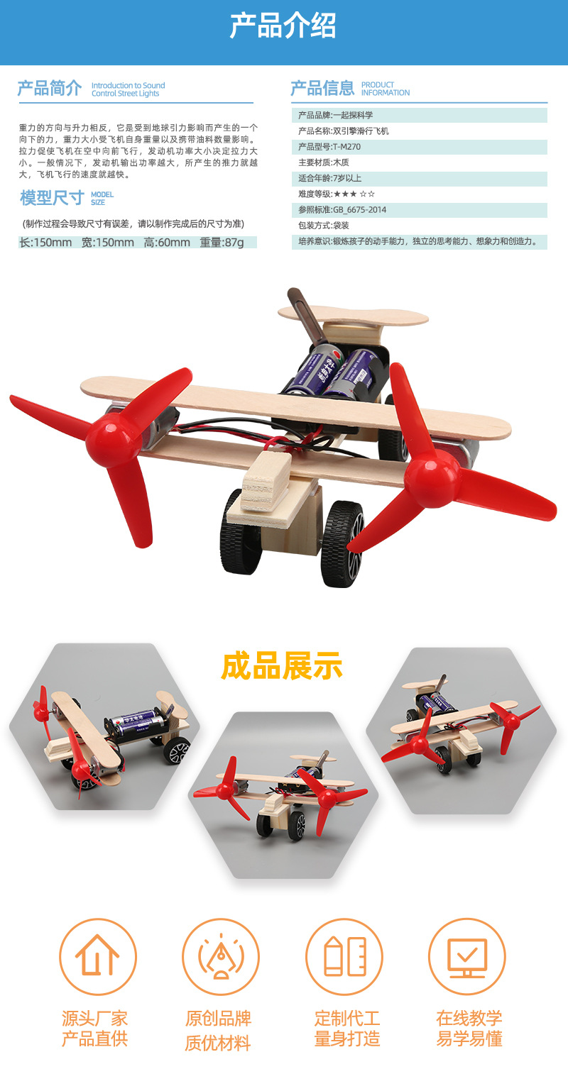 科技小制作手工diy双引擎滑行飞机中小学生科学教玩具拼装包材料