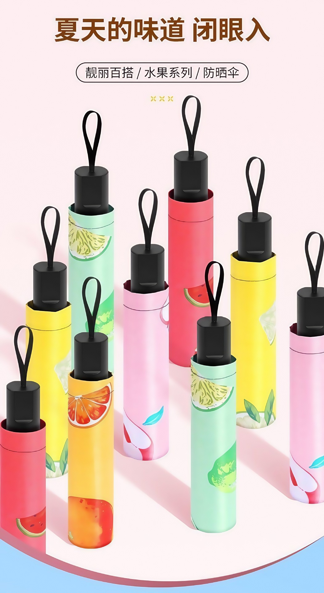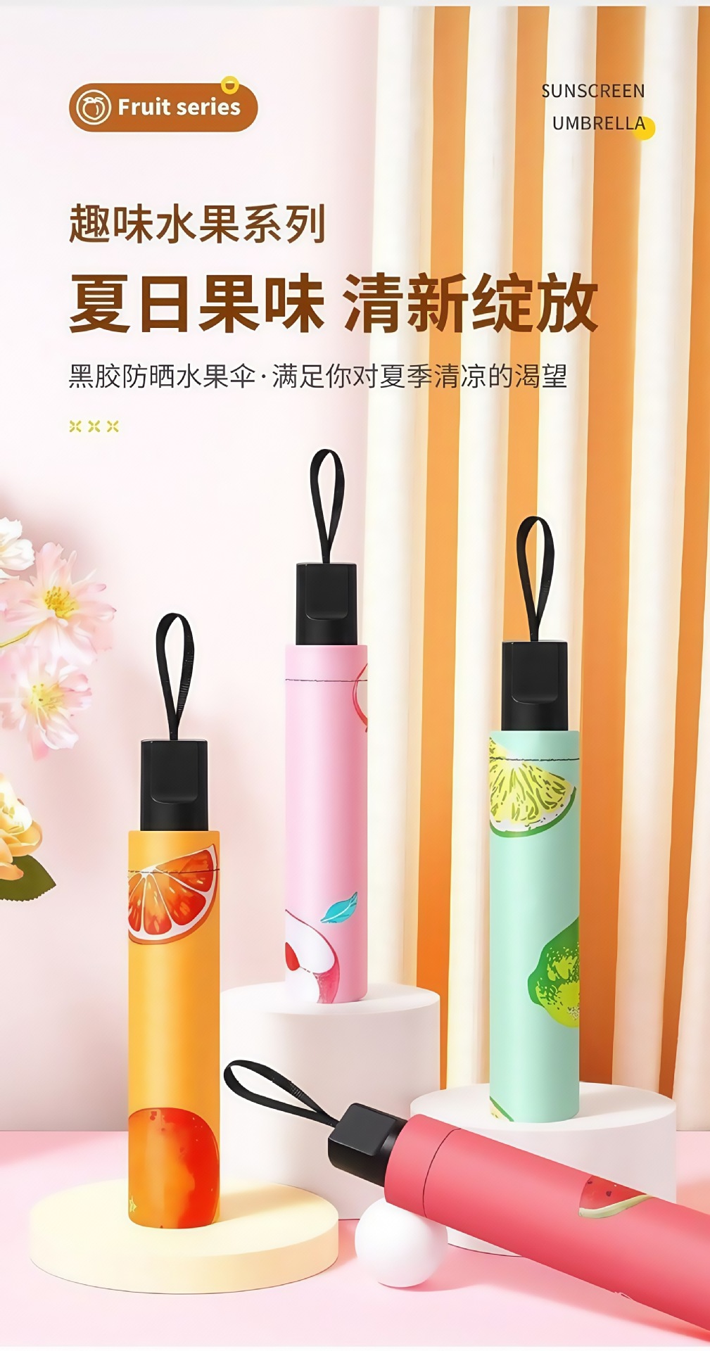 水果加厚晴雨伞太阳伞防紫外线黑胶批发简约遮阳伞伞晴雨两用折叠