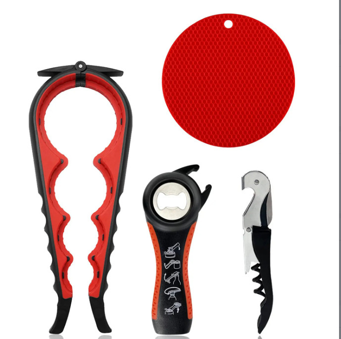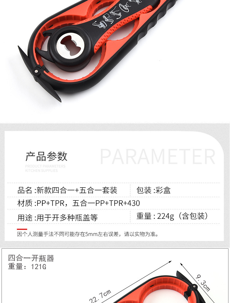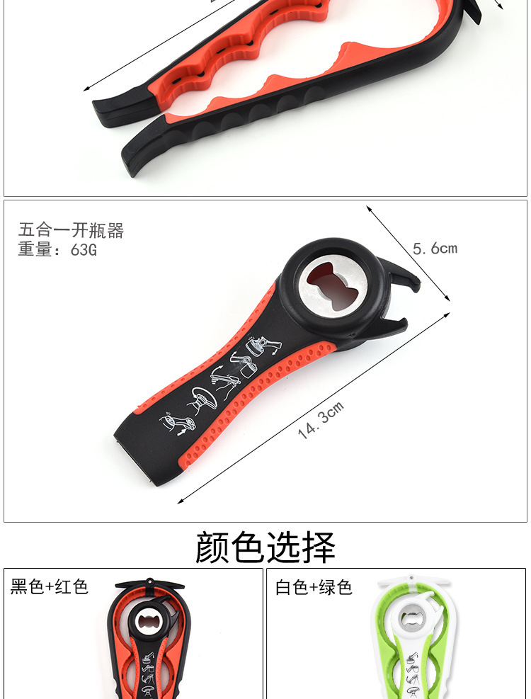 新款四合一开瓶器套装创意塑料拧盖器5合1开罐器创意啤酒开瓶器