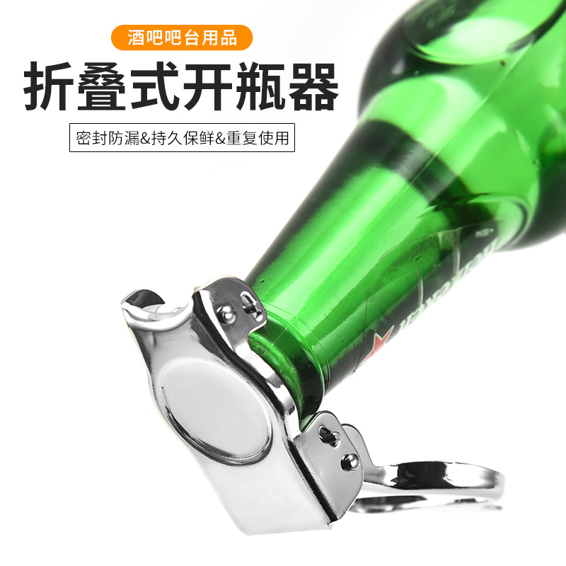 不锈钢调酒师苏打水开瓶器密封保存器啤酒起子多功能折叠开罐器