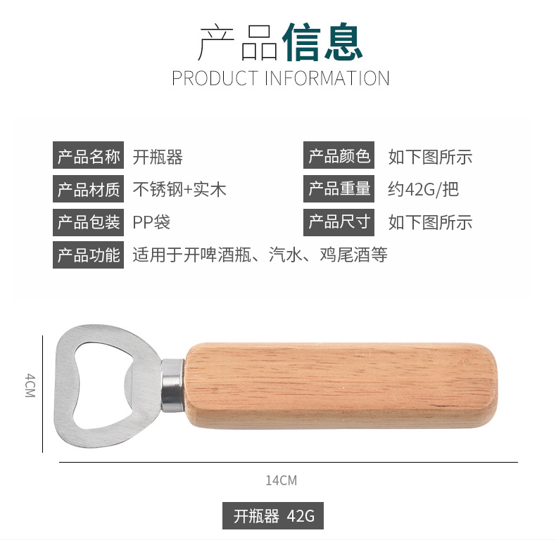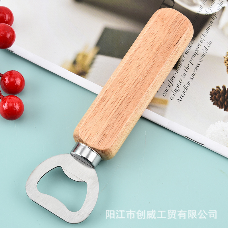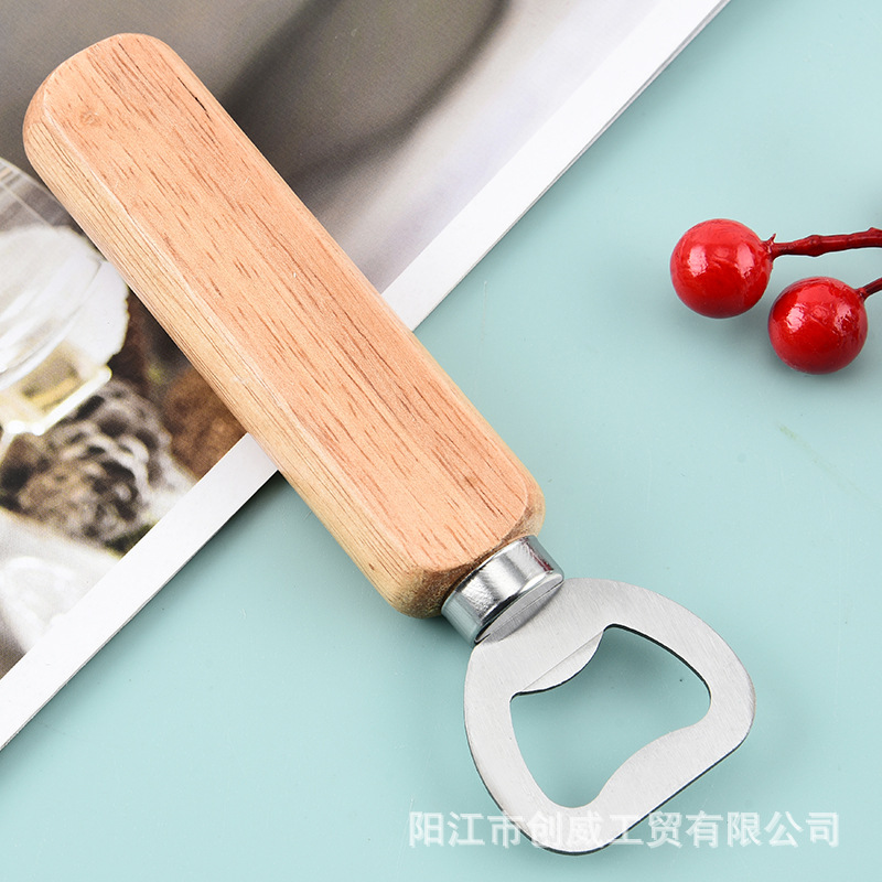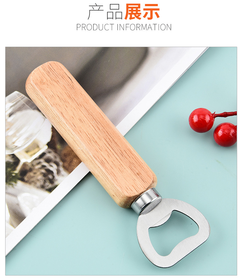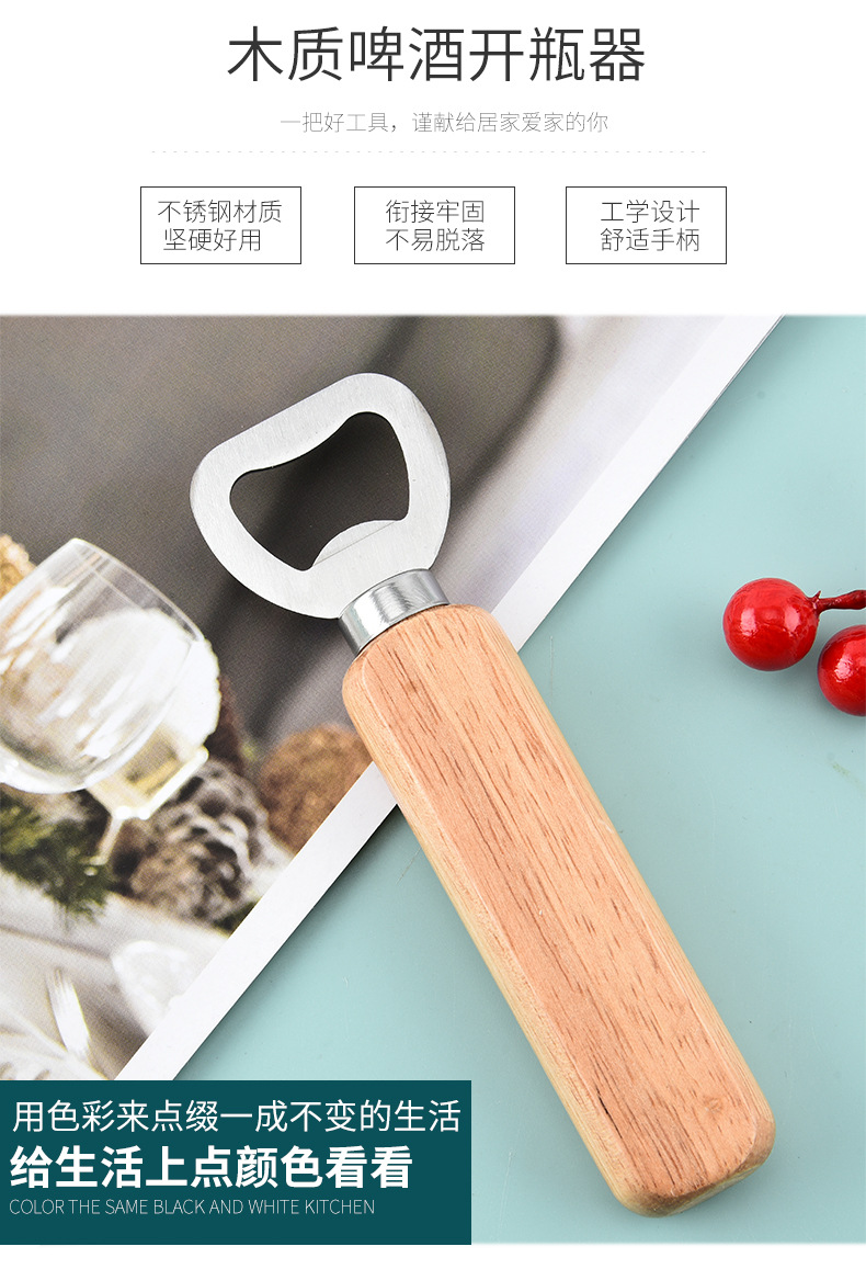 加厚木柄啤酒开瓶器多功能实木大号不锈钢红酒塑料酒起子冰箱贴