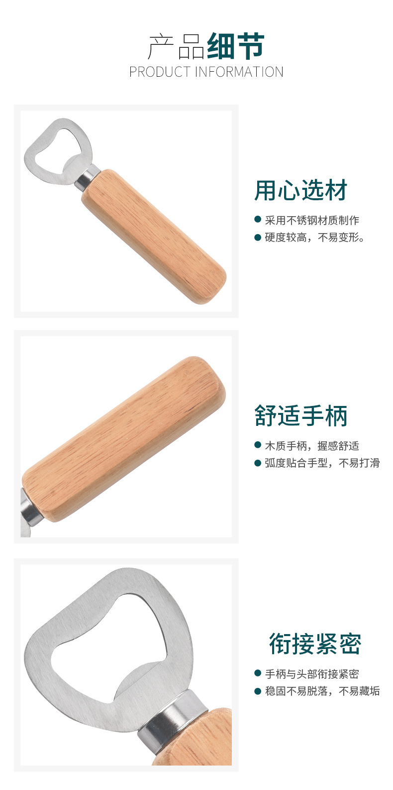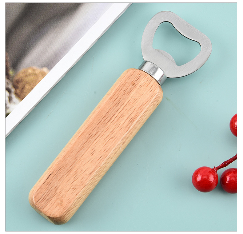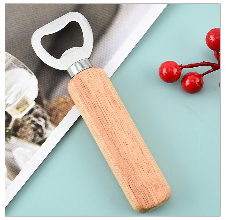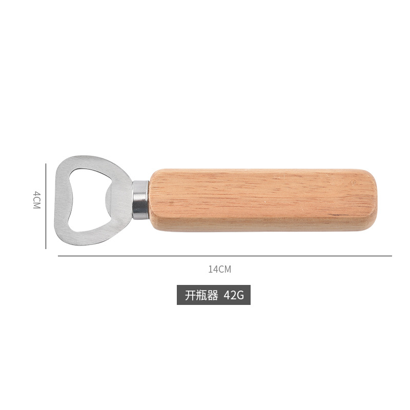 加厚木柄啤酒开瓶器多功能实木大号不锈钢红酒塑料酒起子冰箱贴
