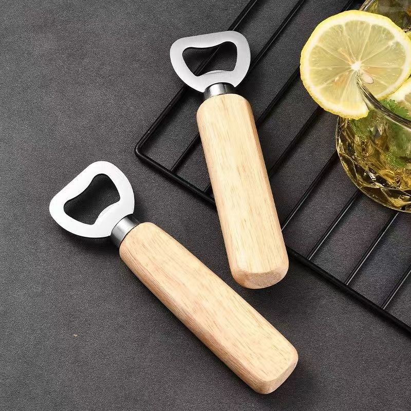木柄啤酒开瓶器可定logo图家用实木啤酒启瓶器不锈钢啤酒起开盖器