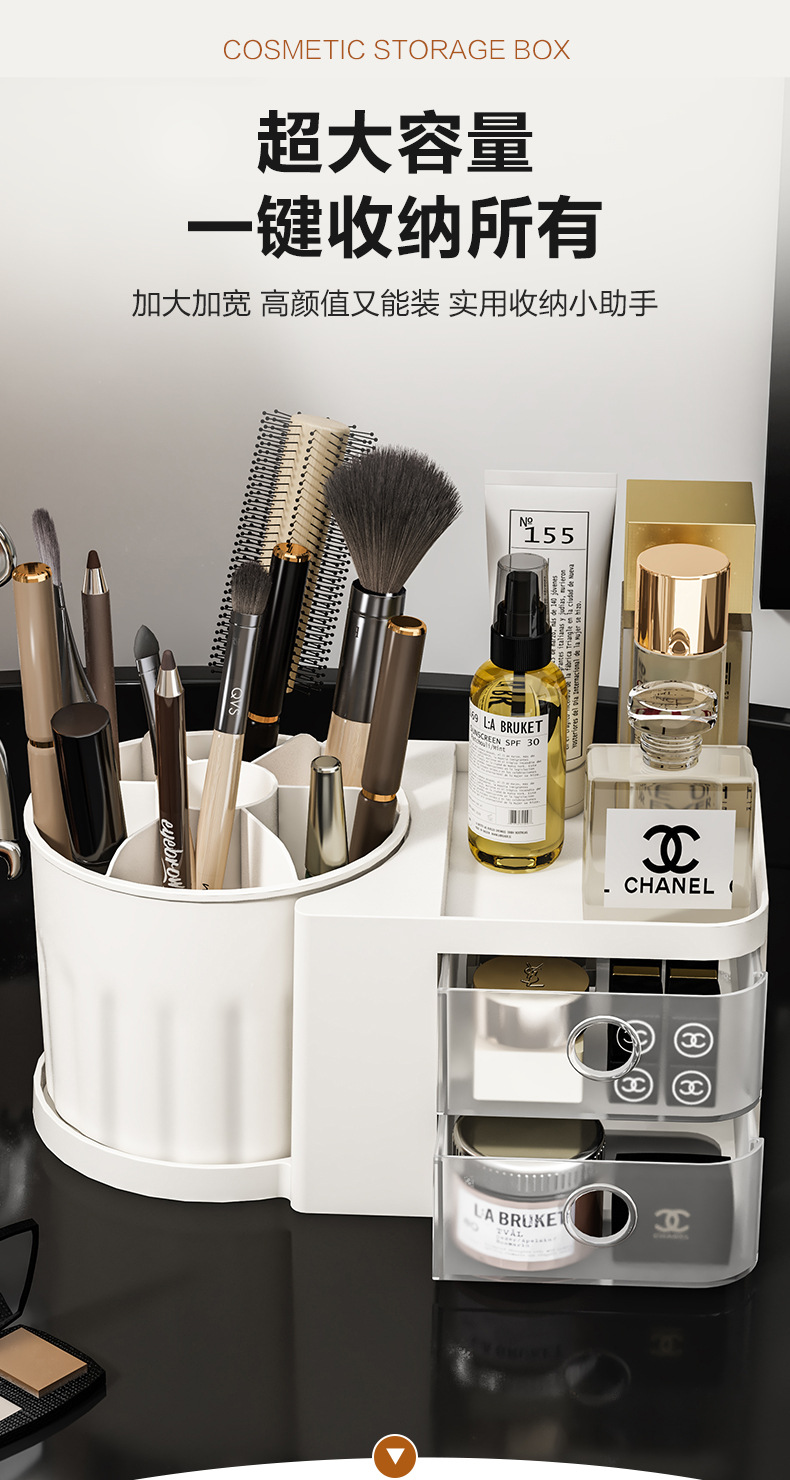 桌面化妆品收纳盒口红化妆刷分格整理盒抽屉式亚克力护肤品置物架