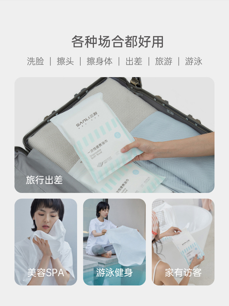 三利一次性浴巾毛巾独立包装酒店成人旅游无纺布便携吸水洗脸差旅