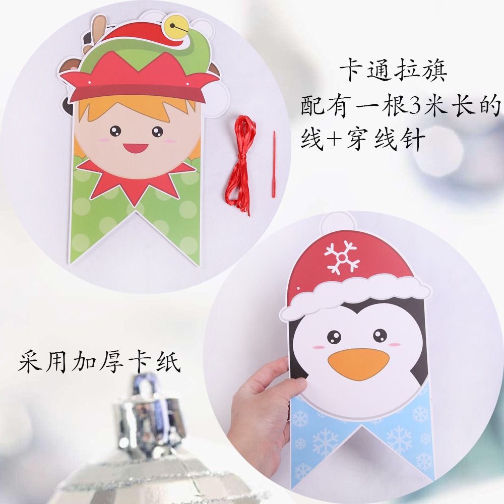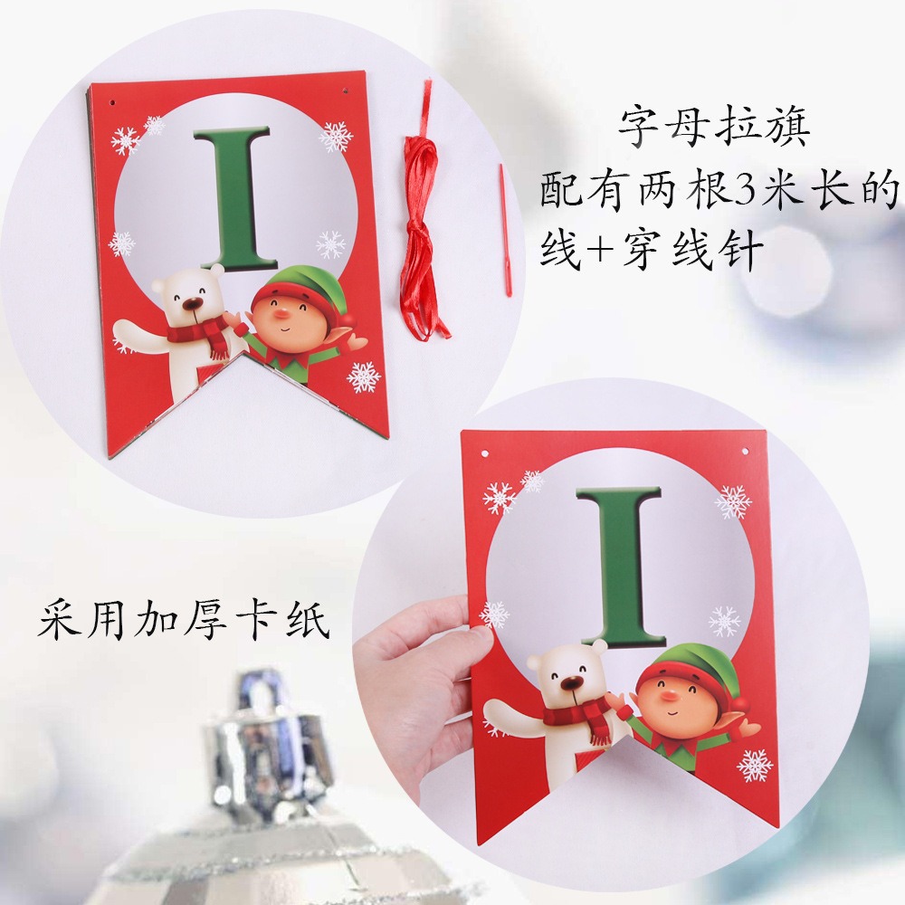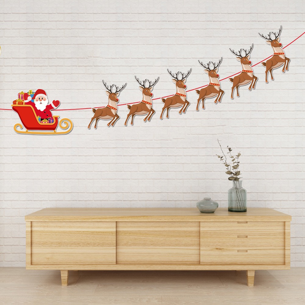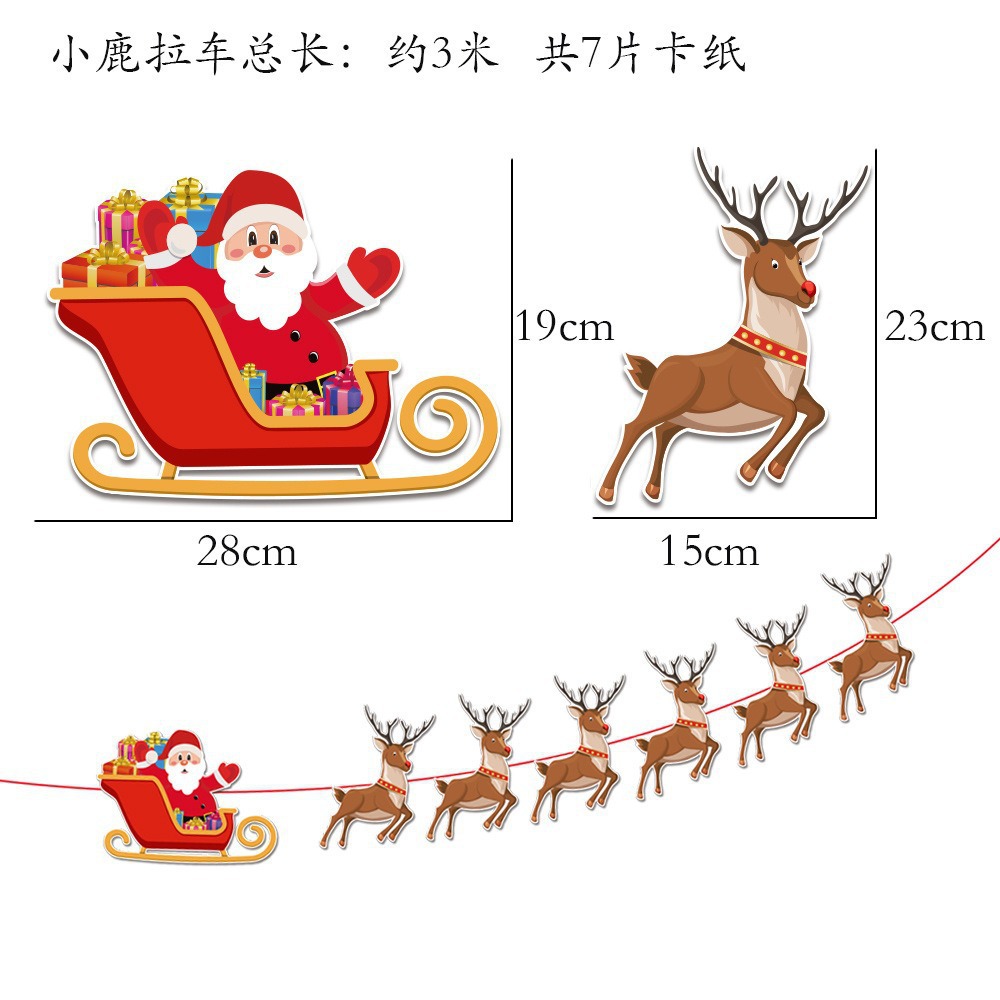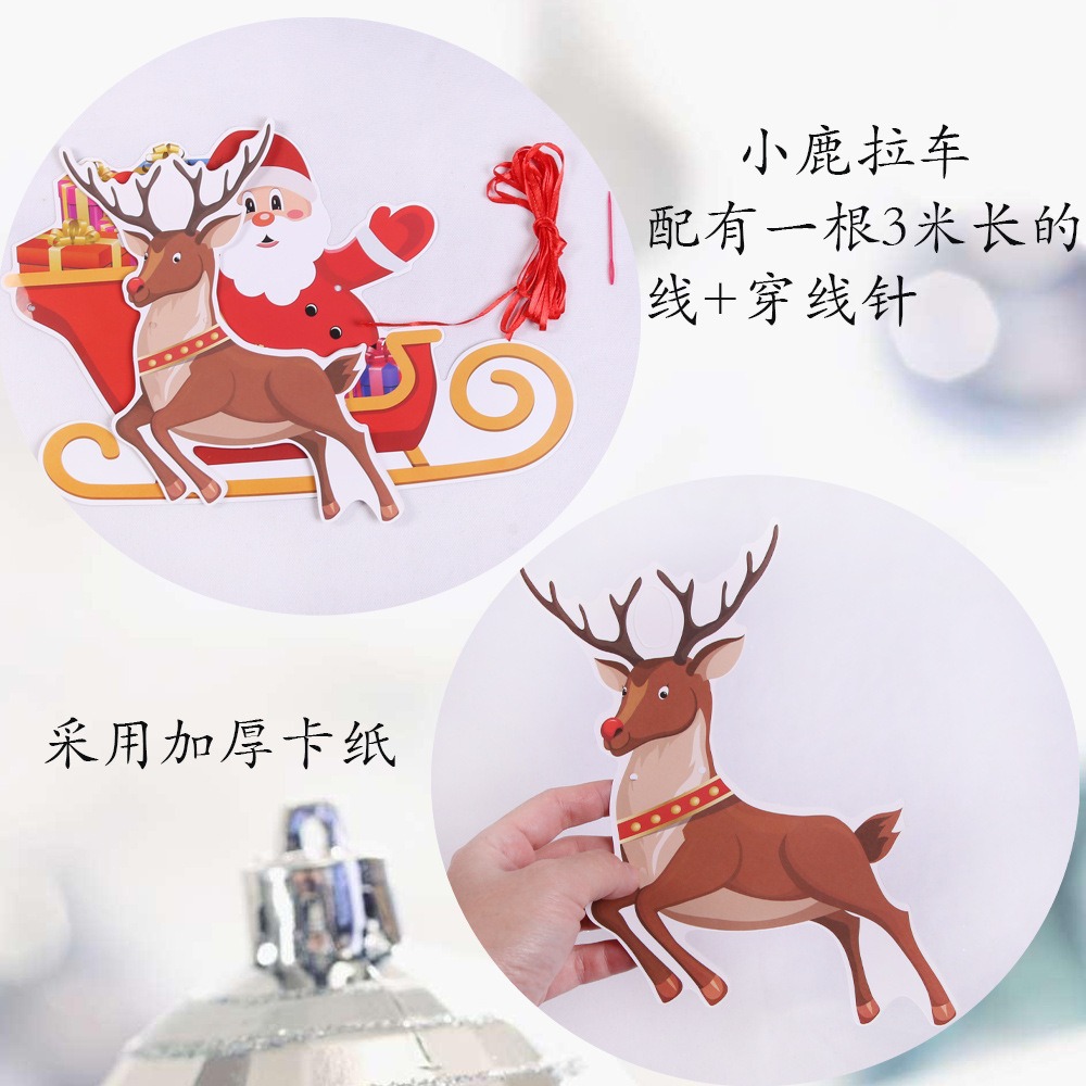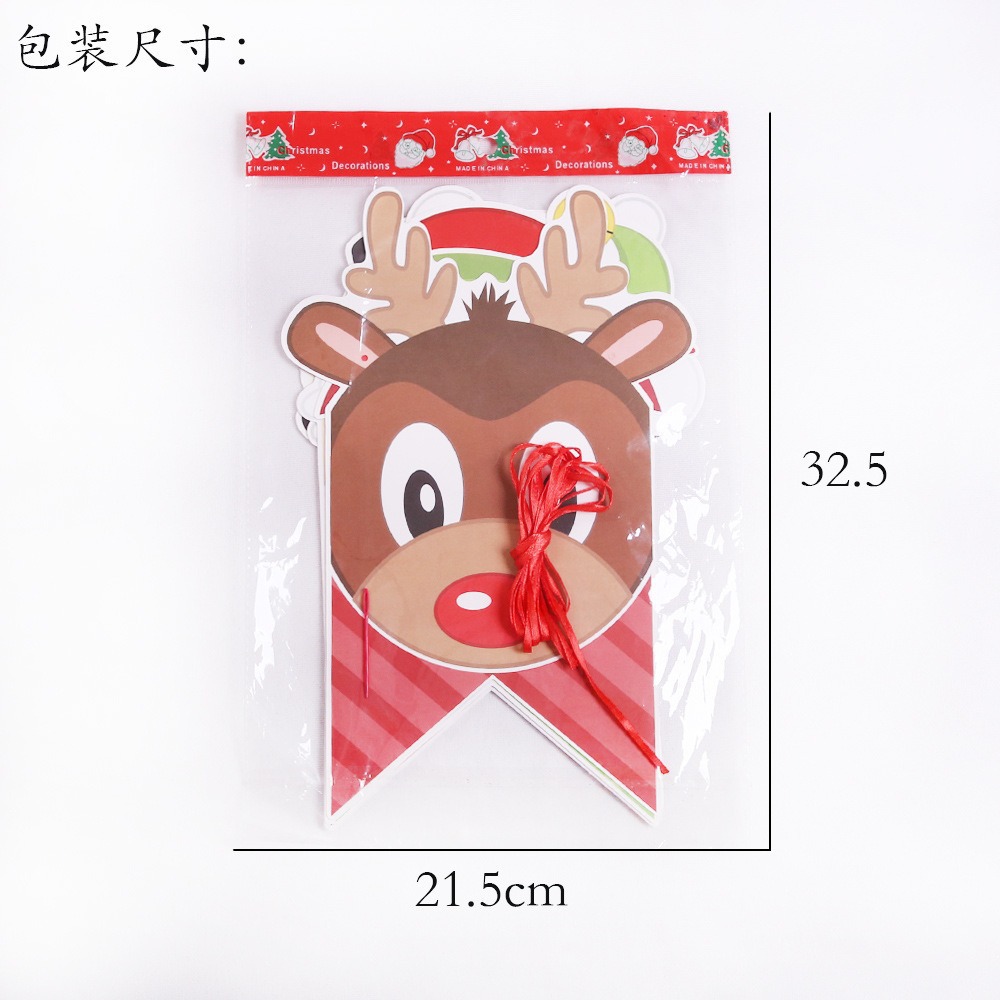 卡通纸质圣诞拉旗圣诞节装饰用品加厚卡纸小鹿拉车字母彩旗燕尾旗