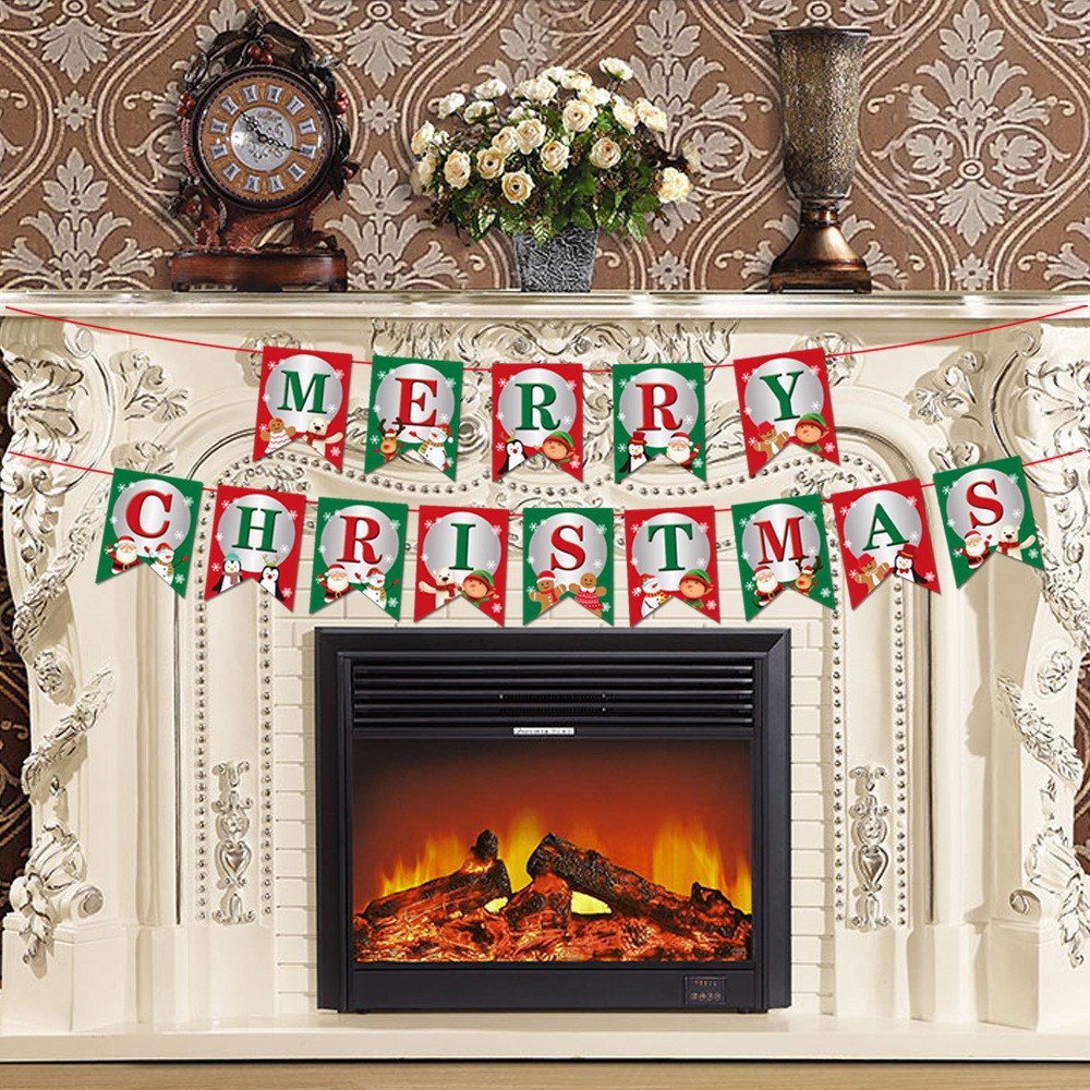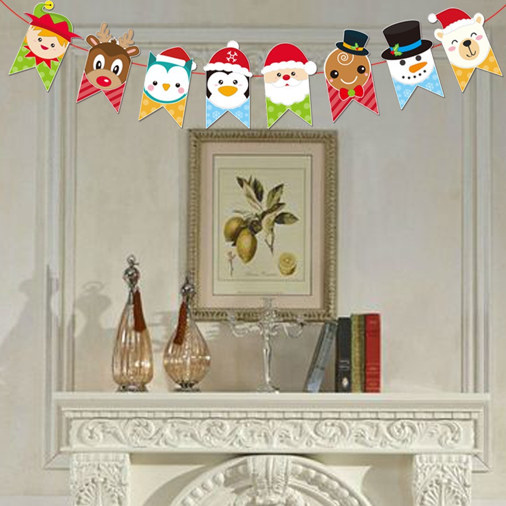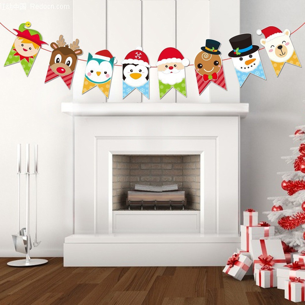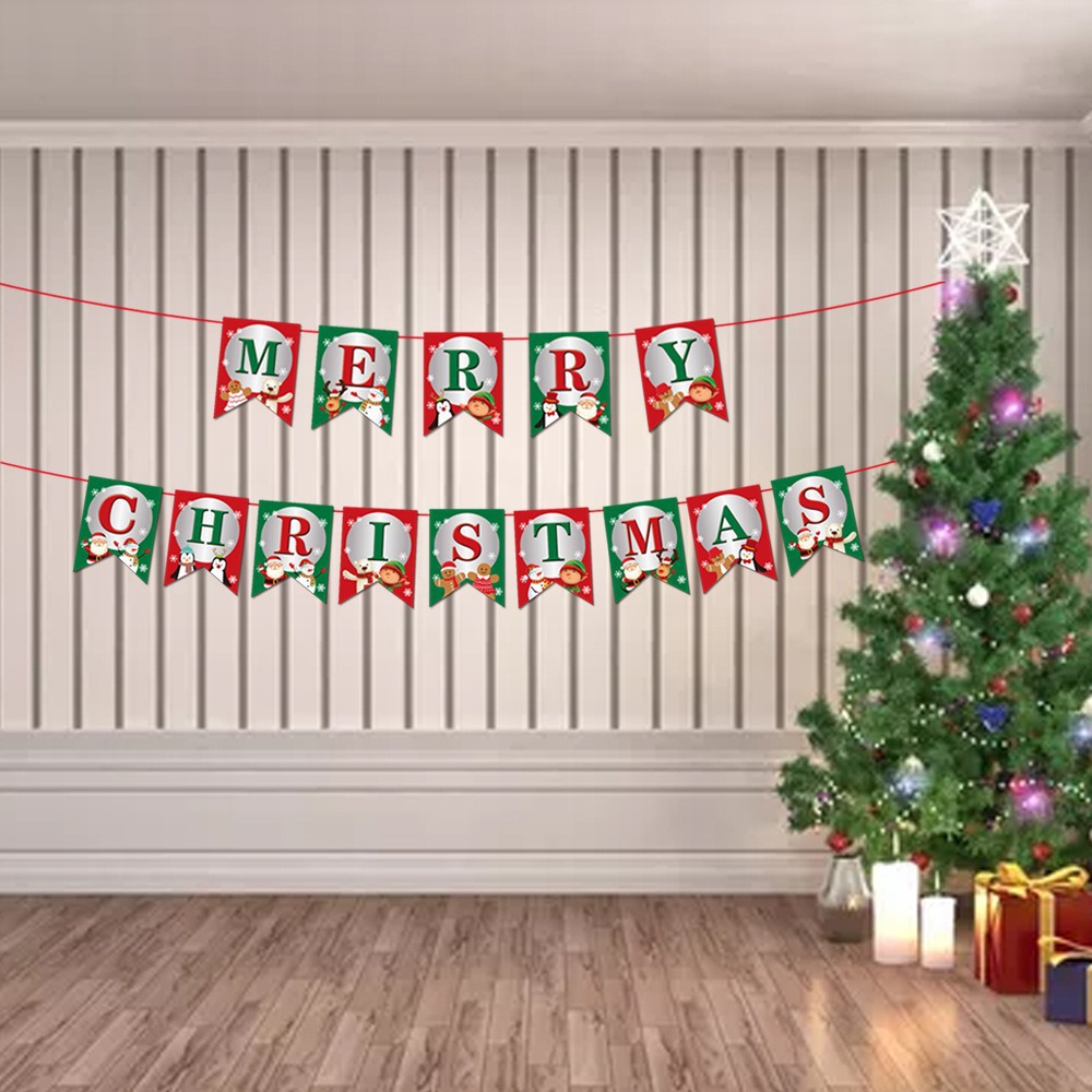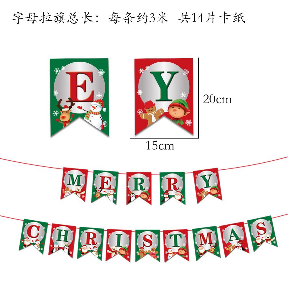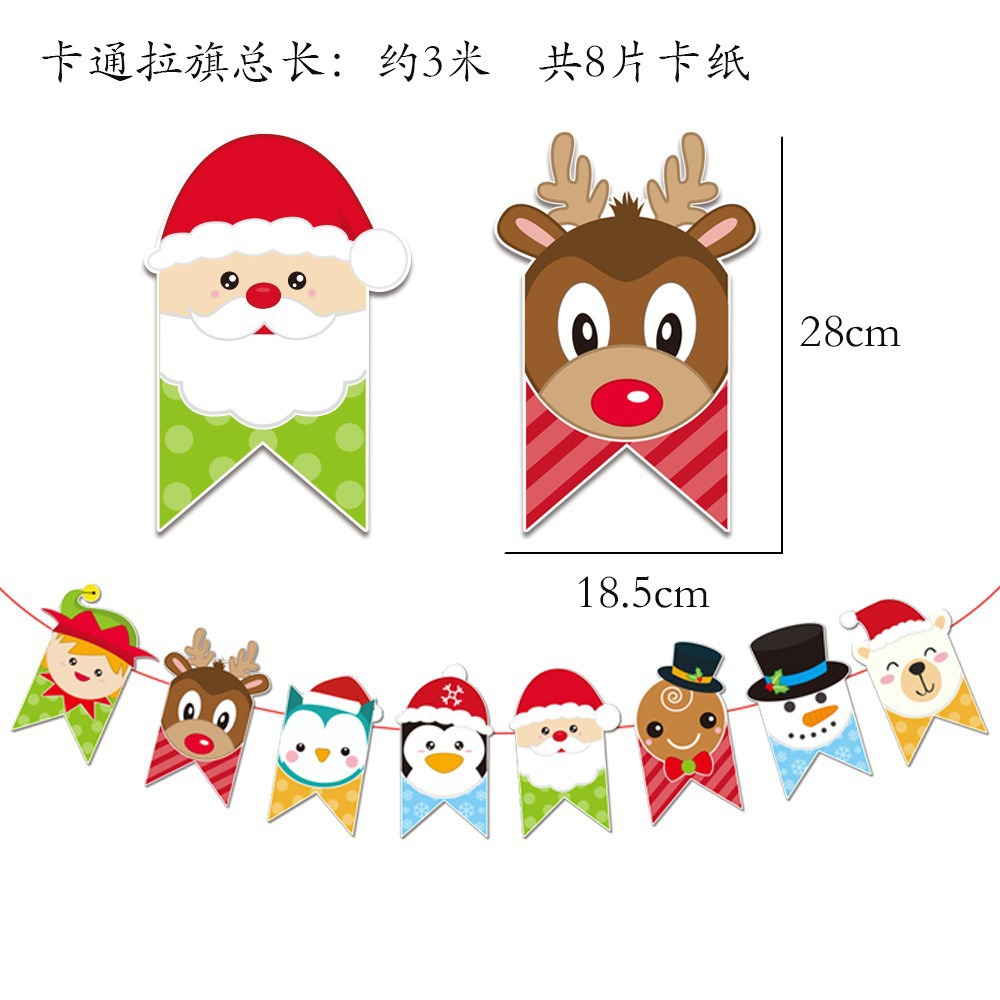 卡通纸质圣诞拉旗圣诞节装饰用品加厚卡纸小鹿拉车字母彩旗燕尾旗
