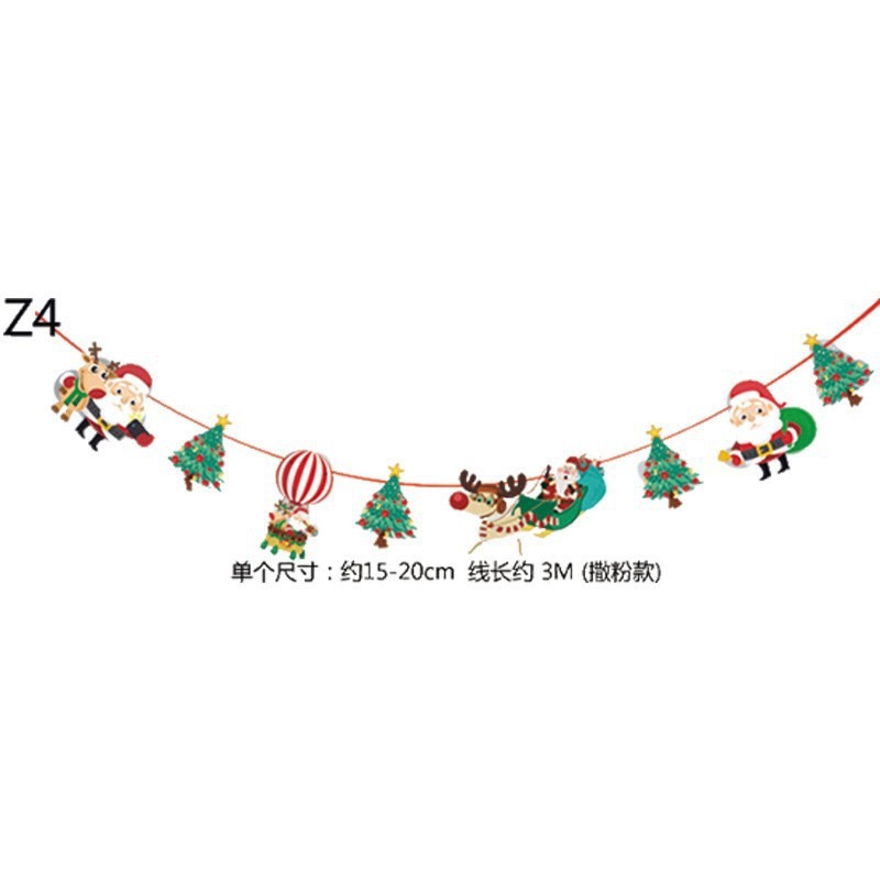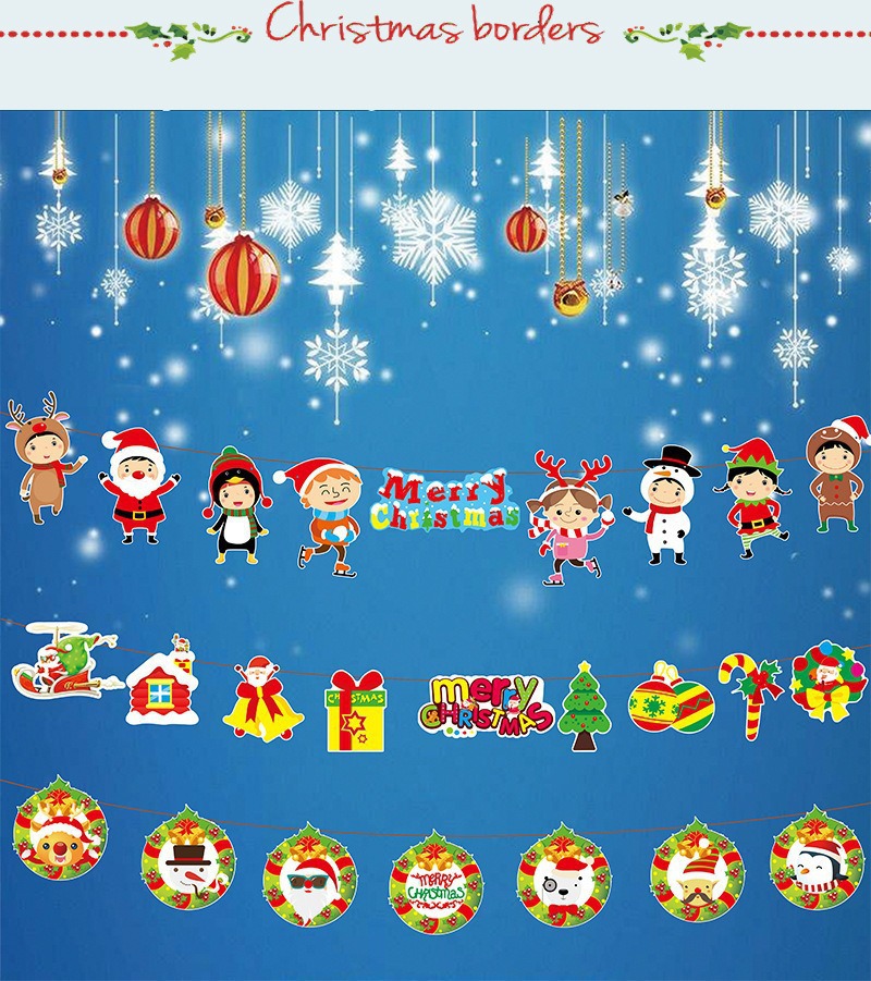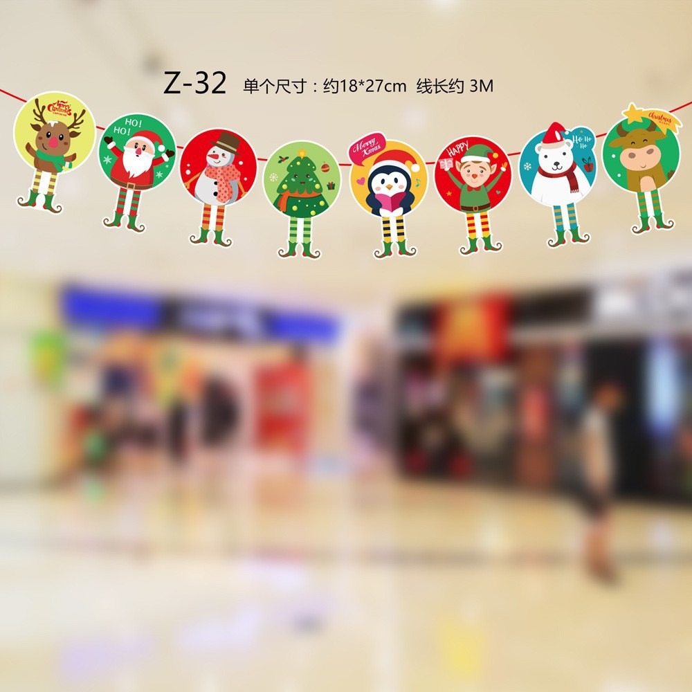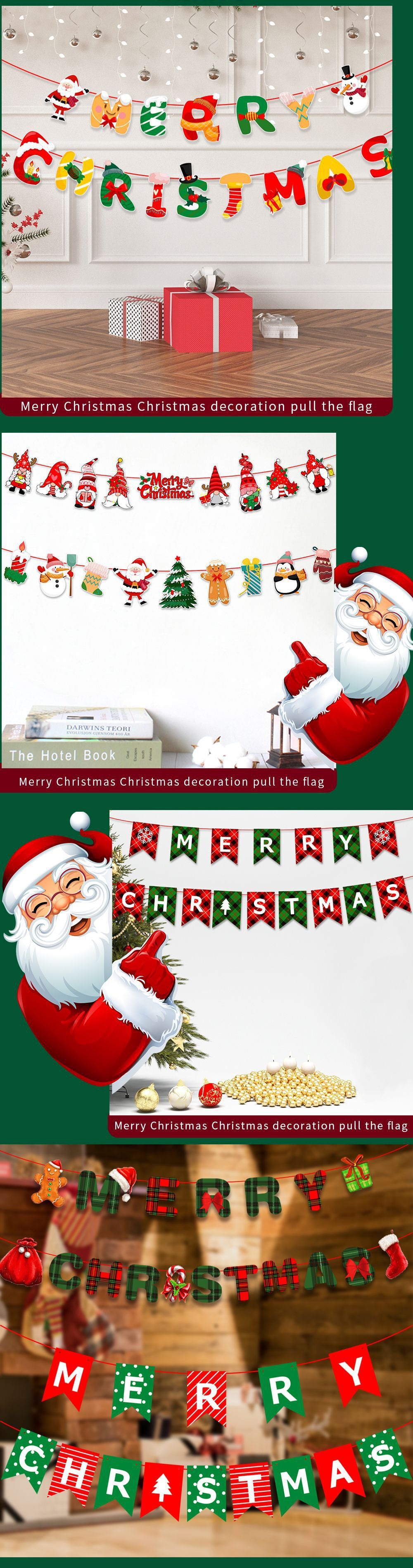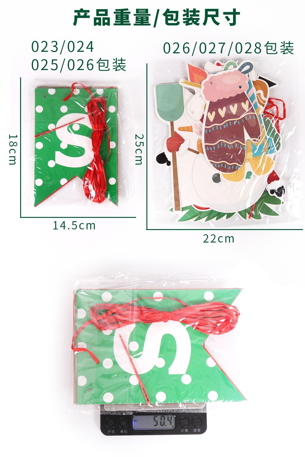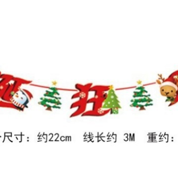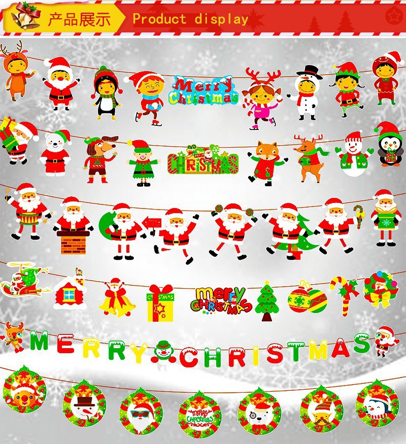 圣诞节装饰品彩色纸质卡通拉旗拉花圣诞老人字母挂饰彩旗三角旗
