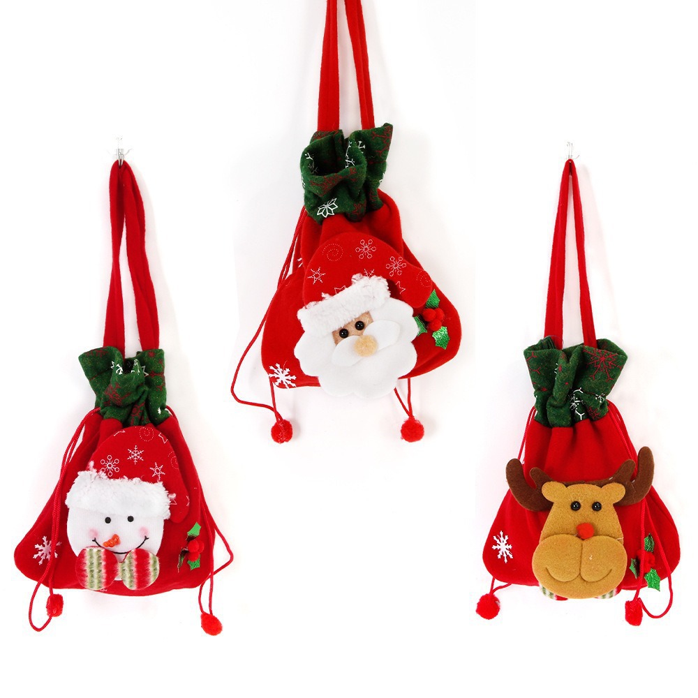 圣诞节装饰卡通绒布苹果袋圣诞老人麋鹿雪人糖果袋手提袋礼物袋