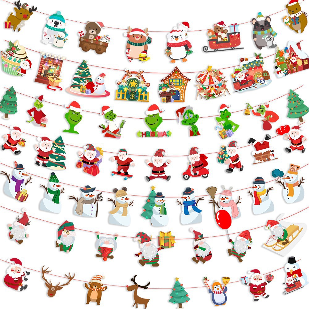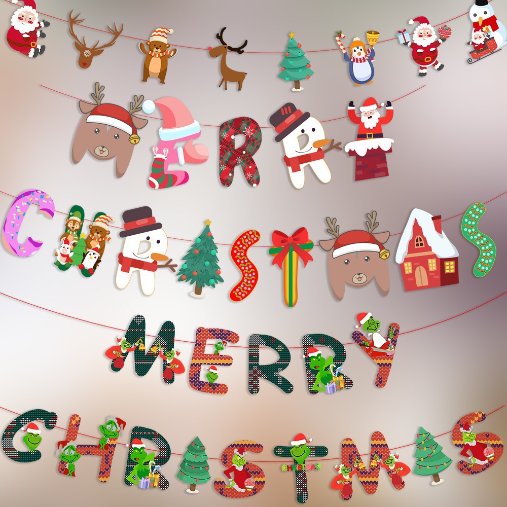 圣诞装饰品彩色纸质拉旗横幅圣诞节派对场景布置卡通字母彩旗吊旗