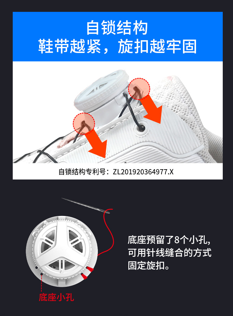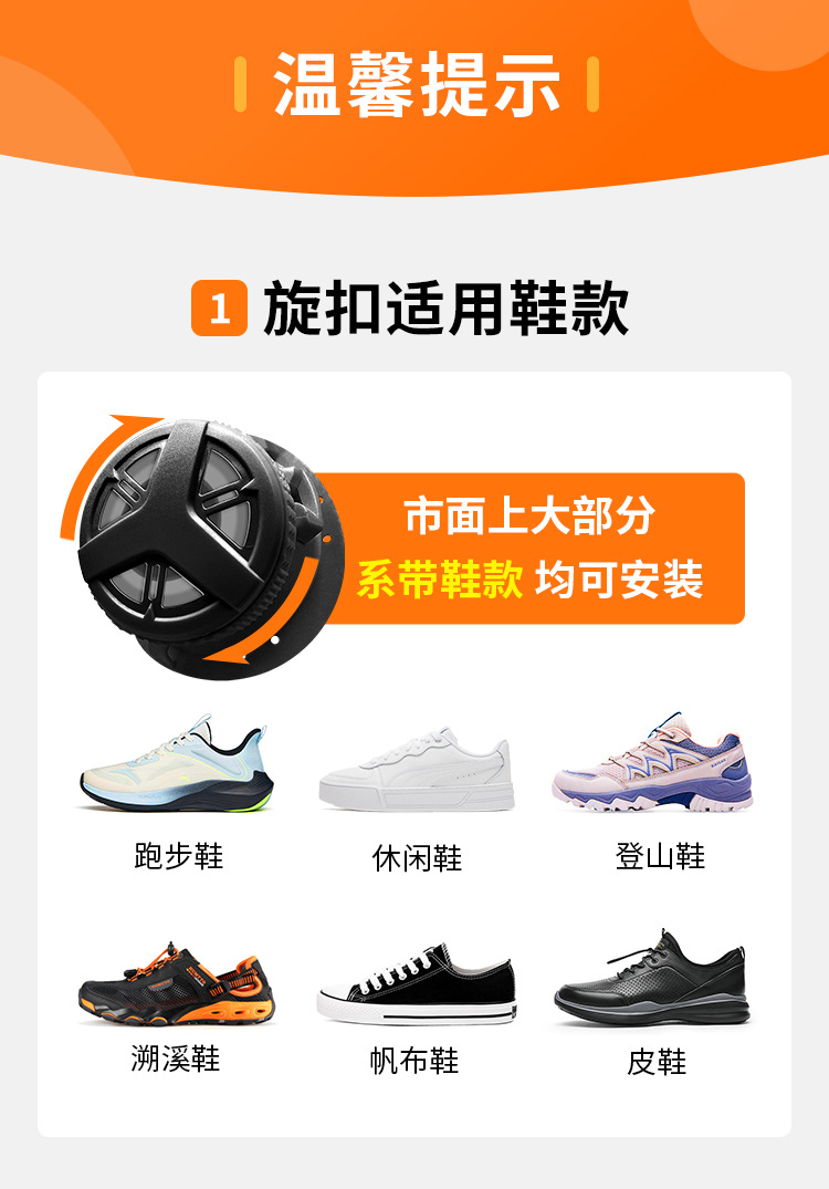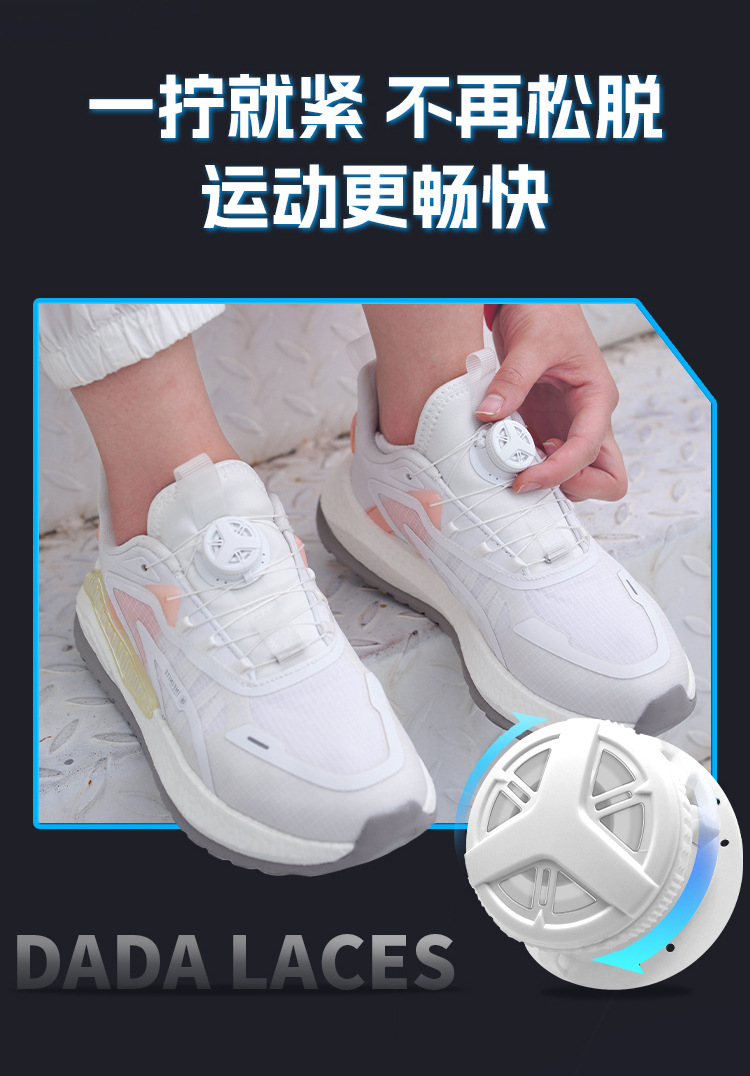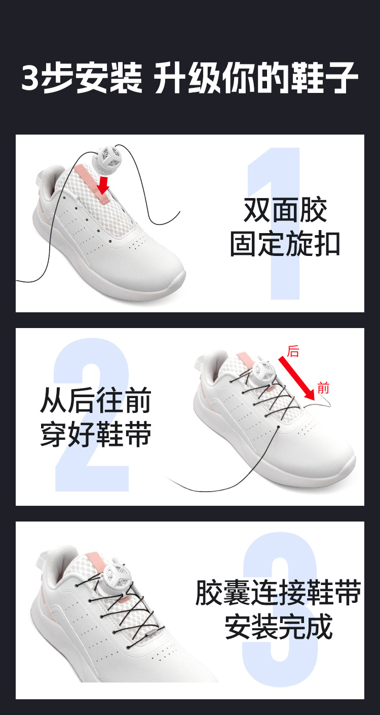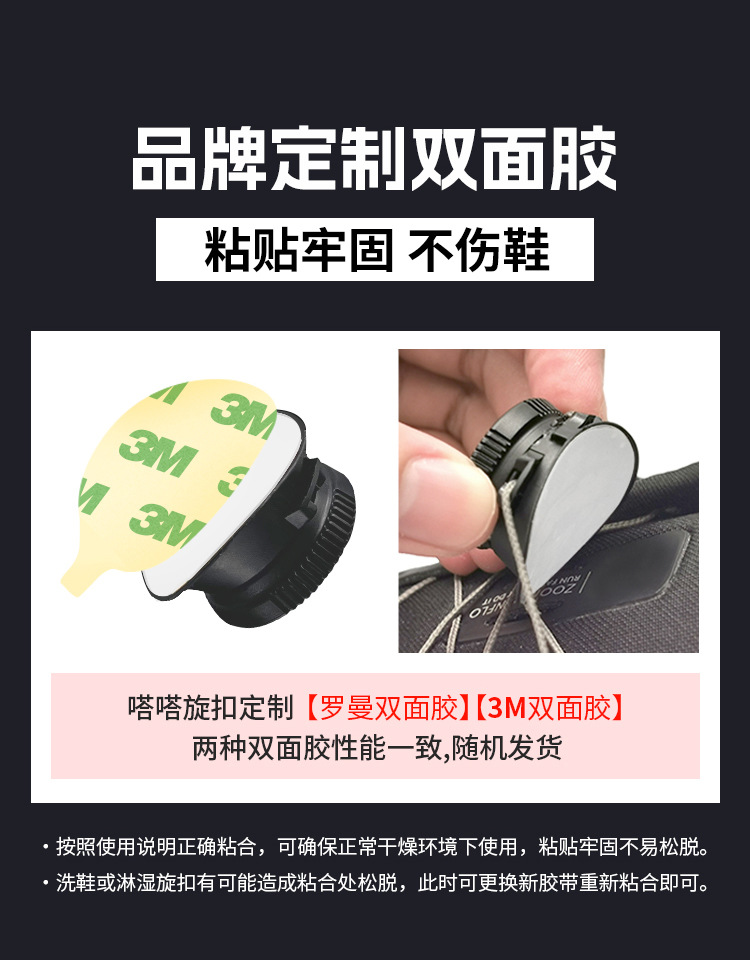 嗒嗒旋扣鞋带免系户外运动快速鞋带松紧免绑旋转鞋带卡扣黑白