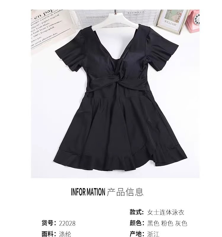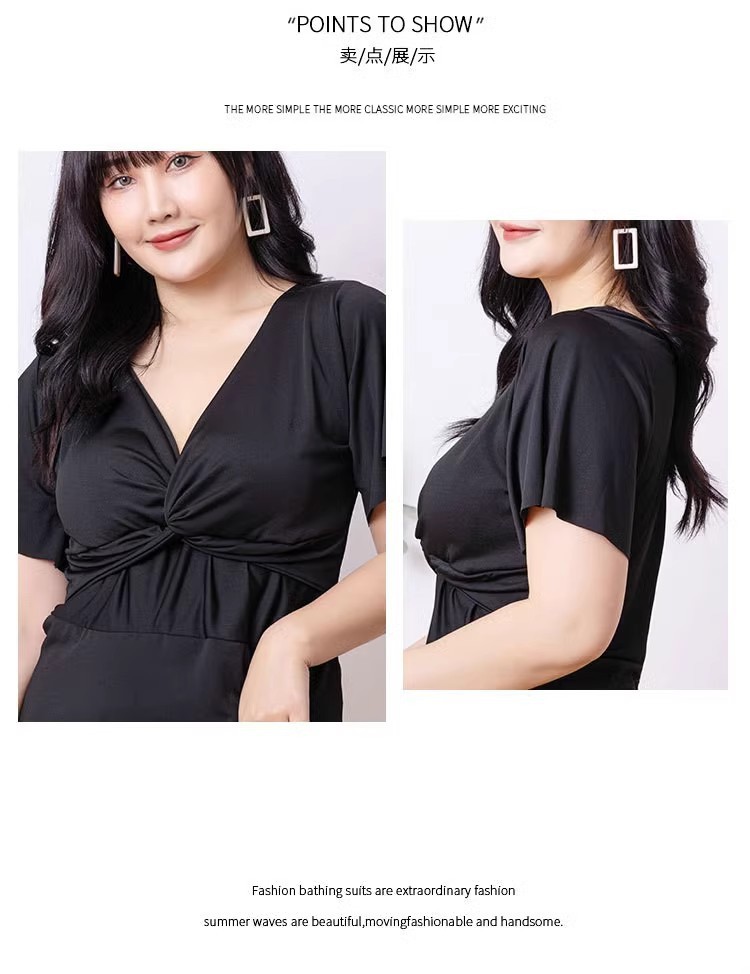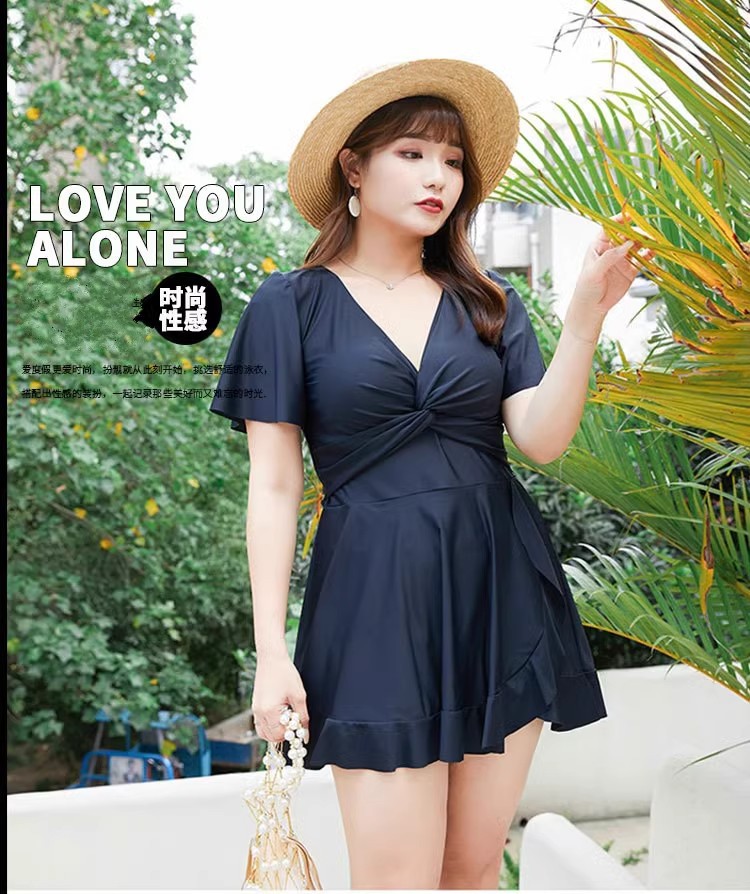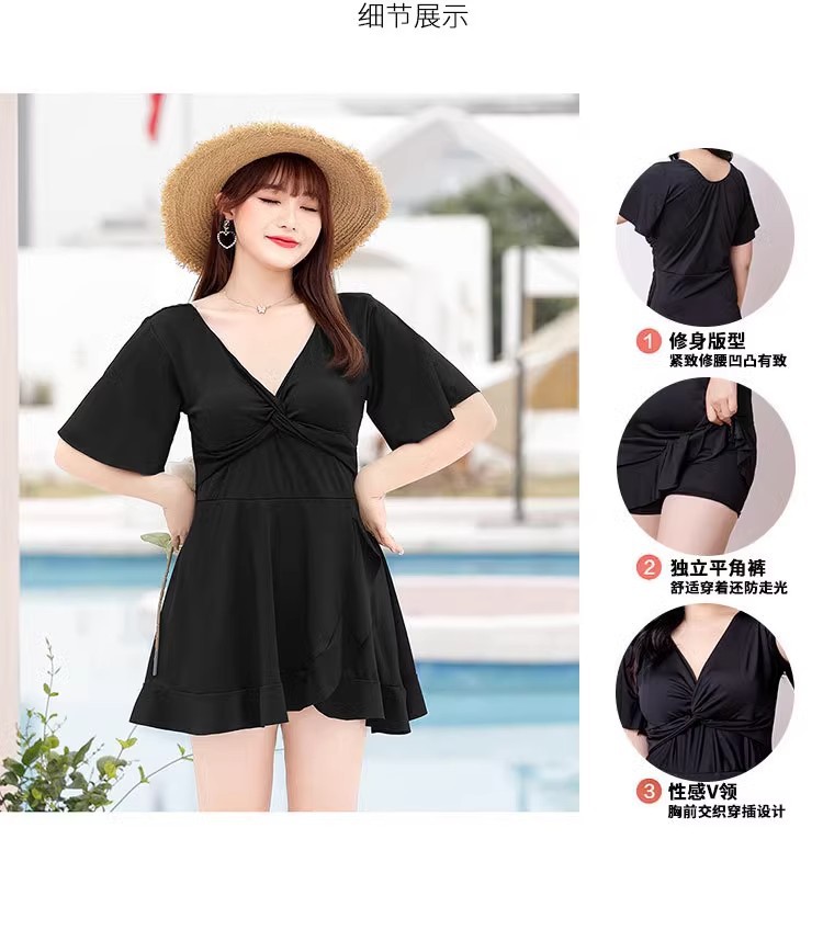 大码泳衣女分体胖MM加大码裙式遮肉显瘦平角保守性感V领温泉泳装