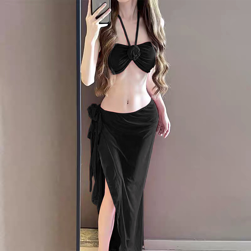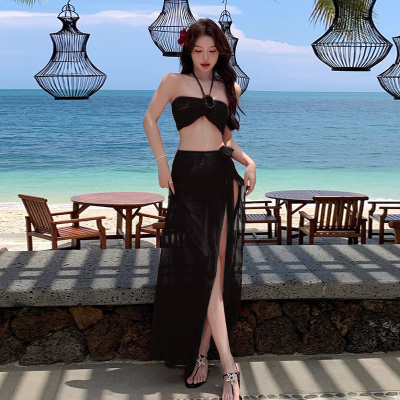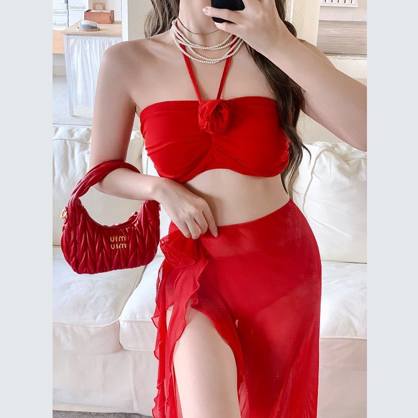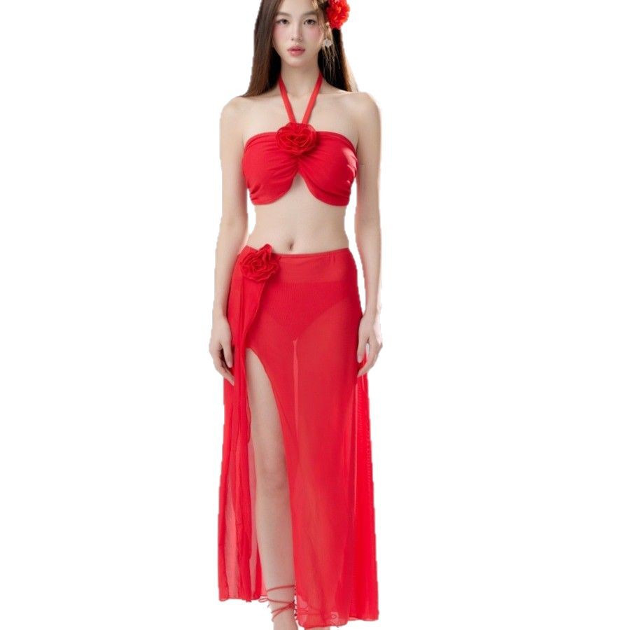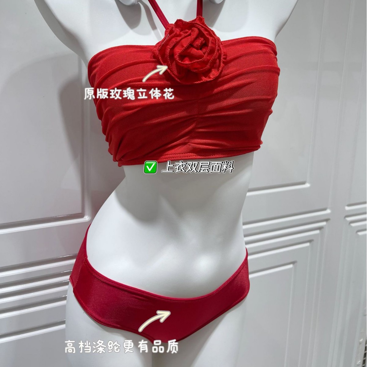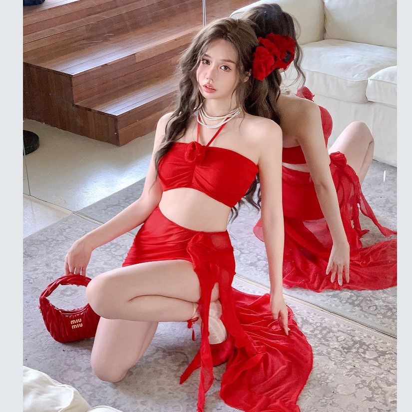 2025新款比基尼泳衣女性感bikini分体泳装红色三件套夏季沙滩游玩