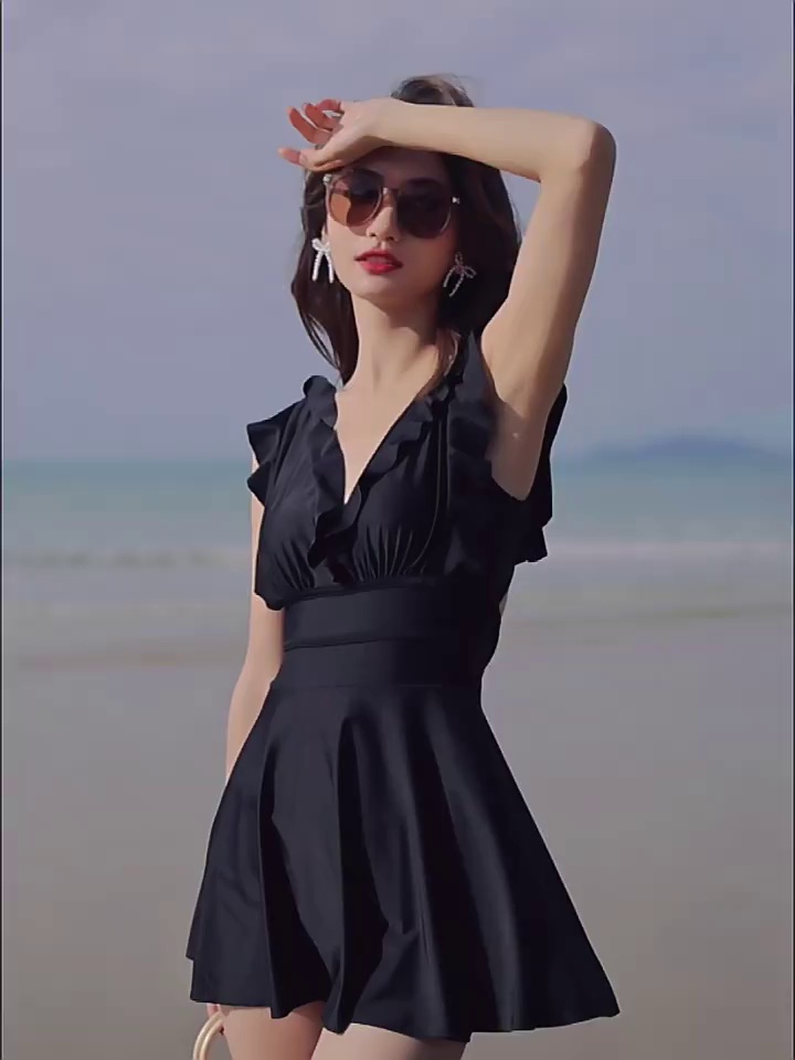 新款ins女韩版温泉泳衣露背连体泳衣女海边度假游泳装批发显瘦仙