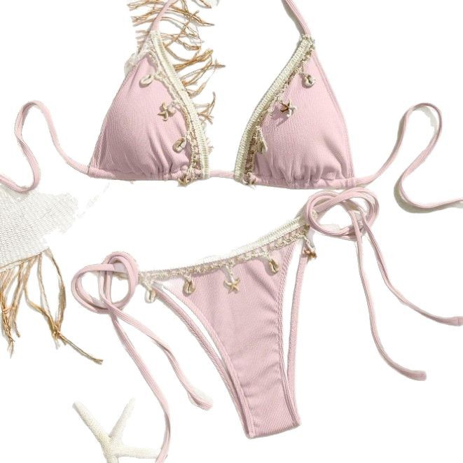 2025高级感泳衣女新款系绳三点式性感纯欲泳装比基尼分体泳衣
