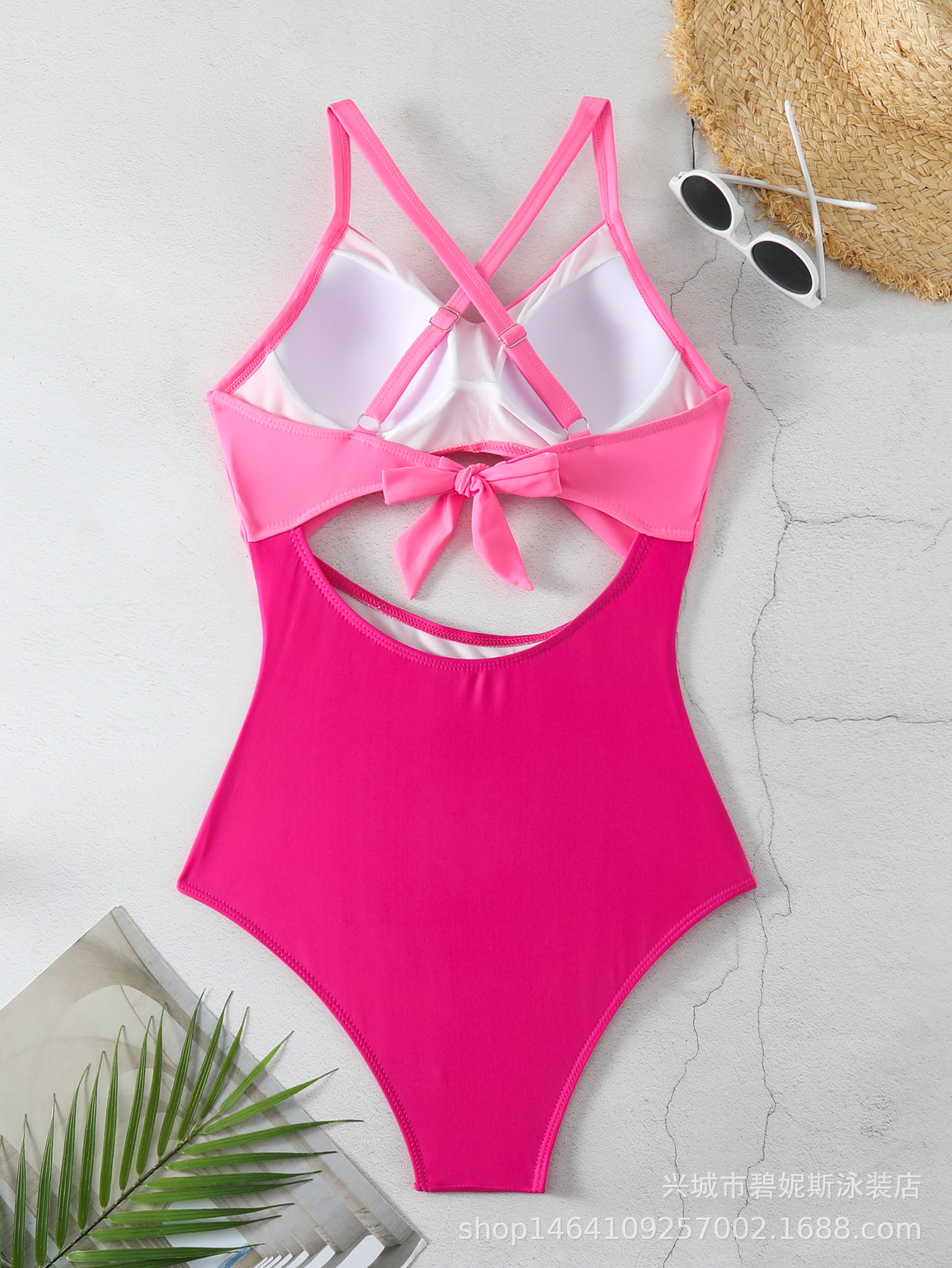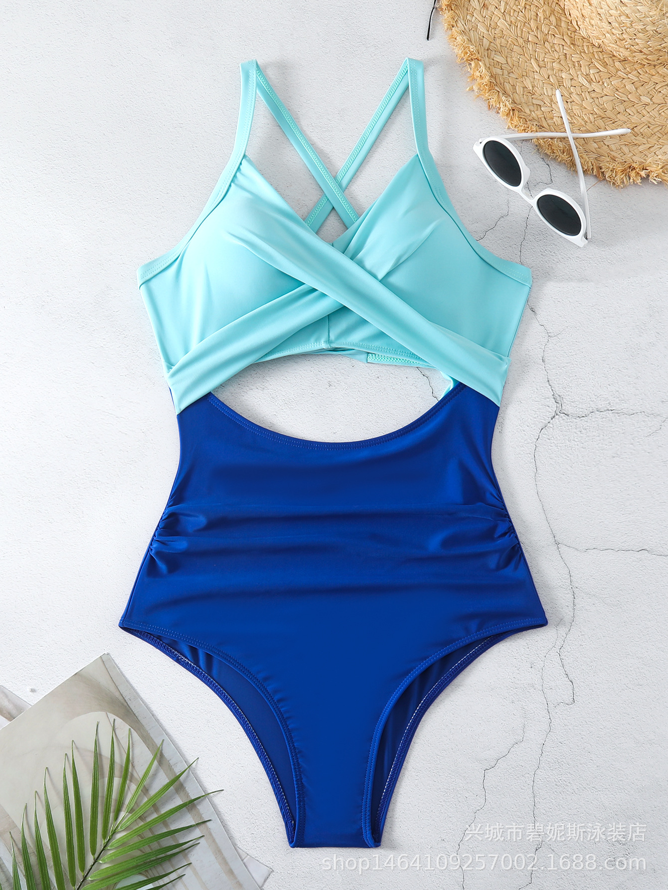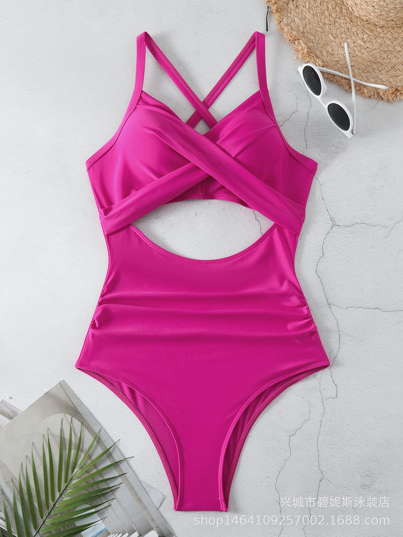 欧美跨境外贸亚马逊连体泳衣性感镂空女士泳装露背紧身绑带比基尼