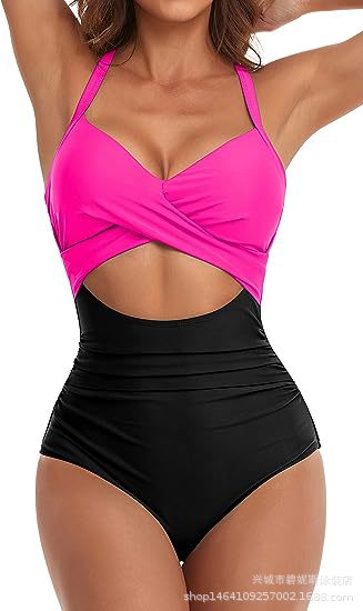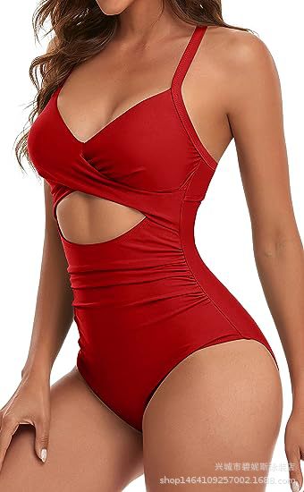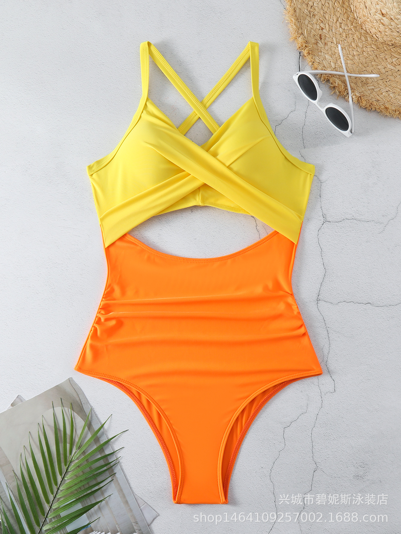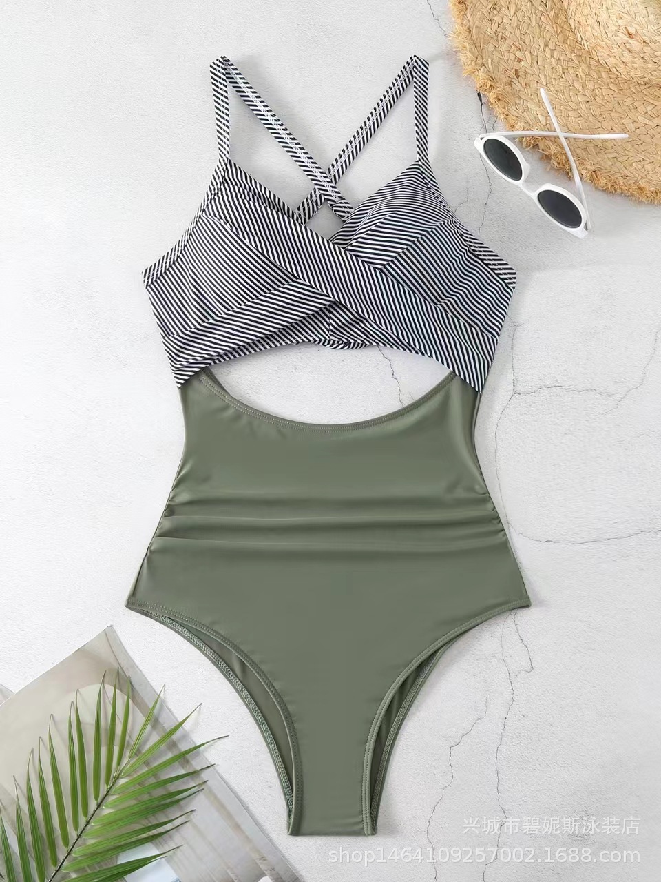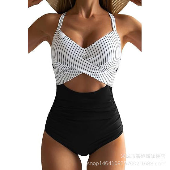 欧美跨境外贸亚马逊连体泳衣性感镂空女士泳装露背紧身绑带比基尼