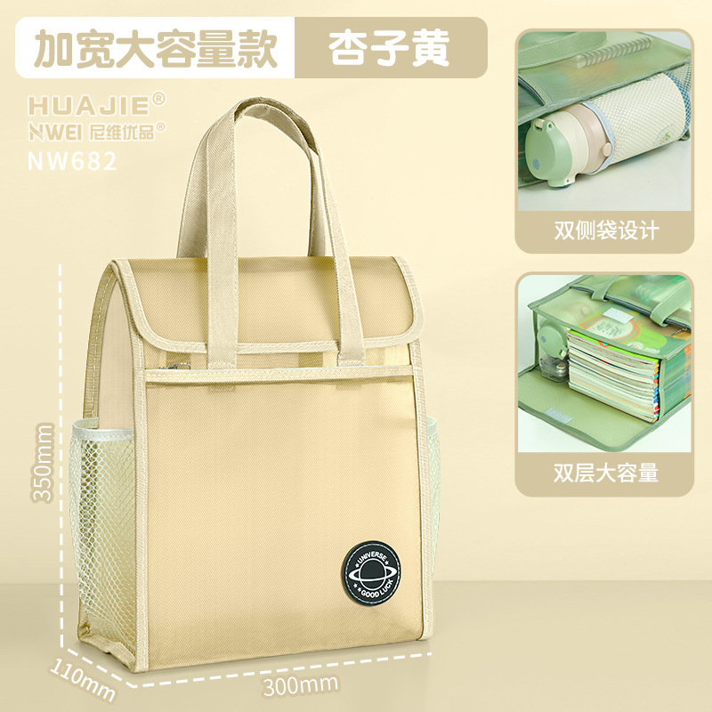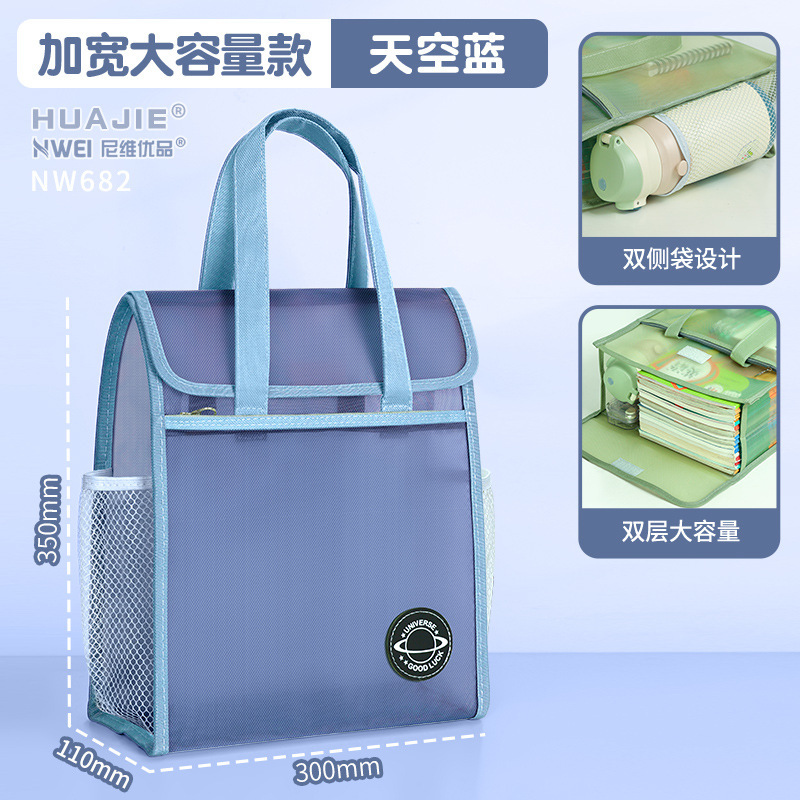手提拎书袋加厚文件补习袋小学生补课袋双层大容量网纱课本收纳袋