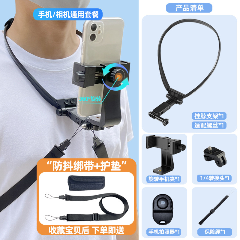 手机挂脖支架Gopro大疆运动相机项圈拍第一视角骑行路亚钓鱼配件