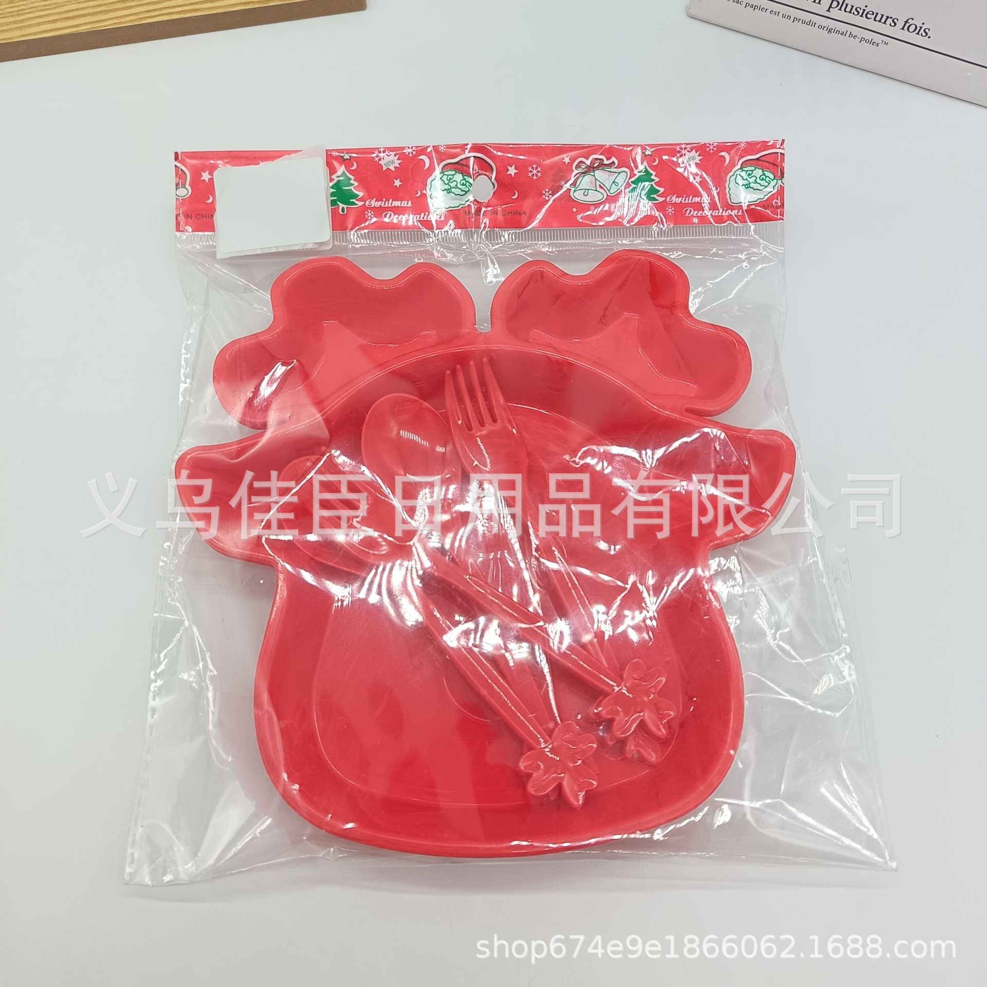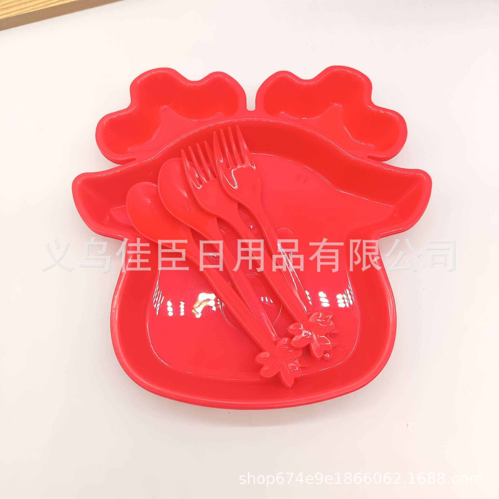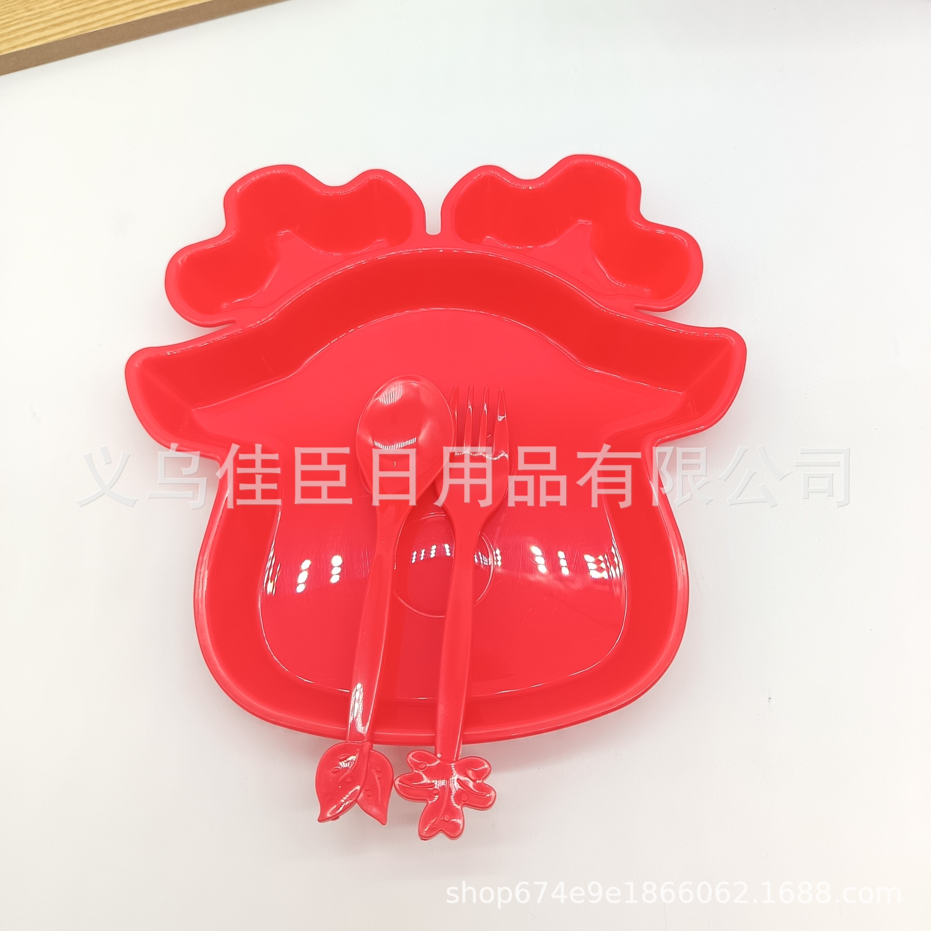 跨境热销pp材质儿童餐盘带餐具圣诞麋鹿萌趣宝宝分格盘圣诞树造型