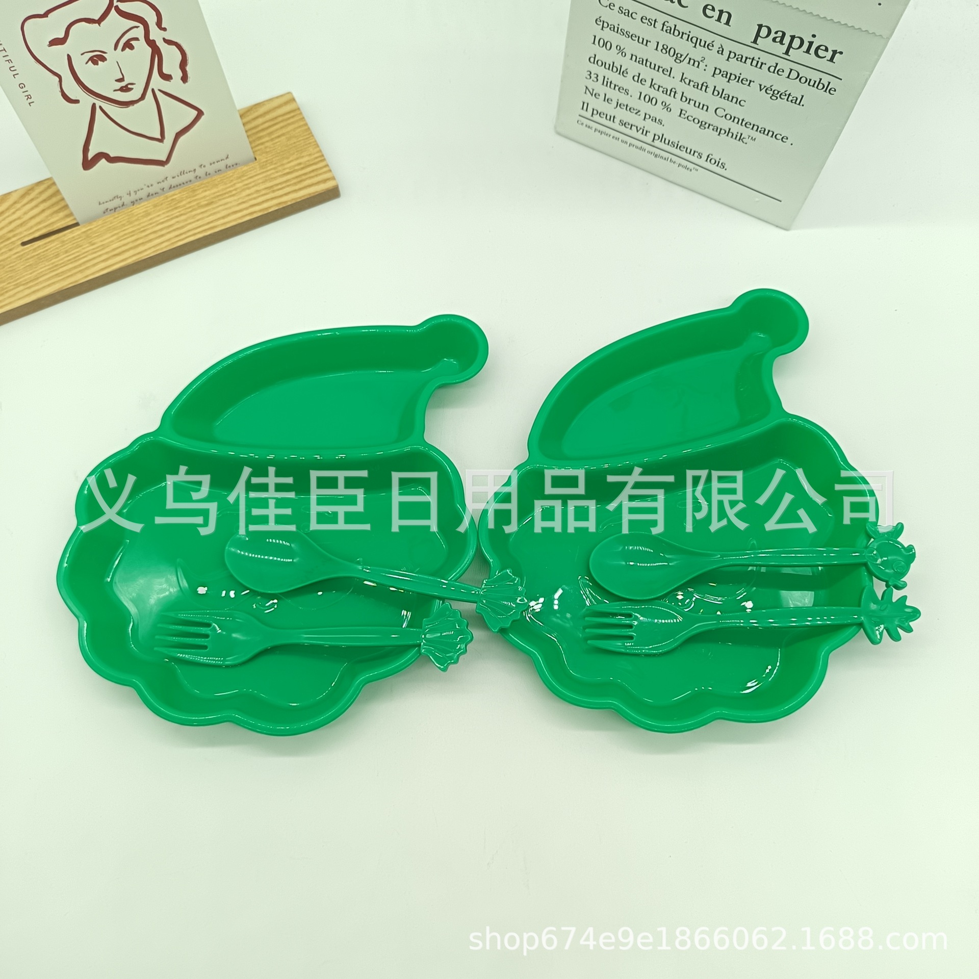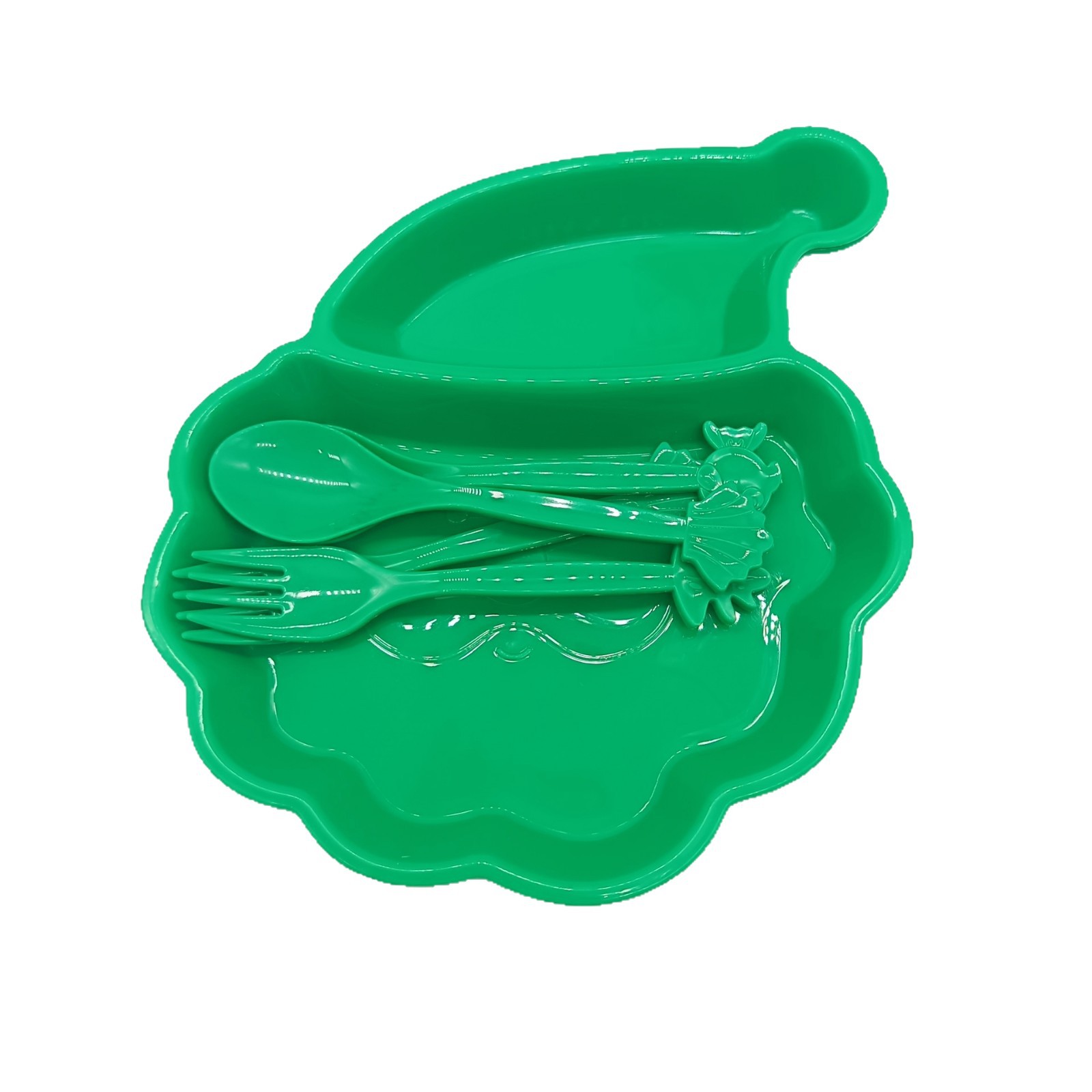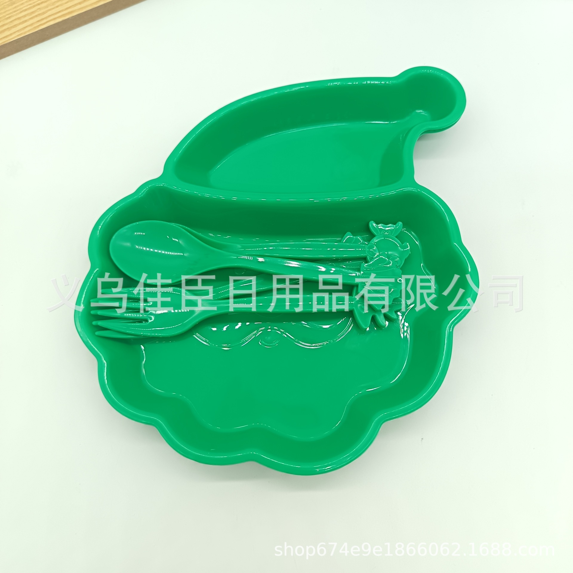 跨境热销pp材质儿童餐盘带餐具圣诞老人萌趣宝宝分格盘圣诞树造型