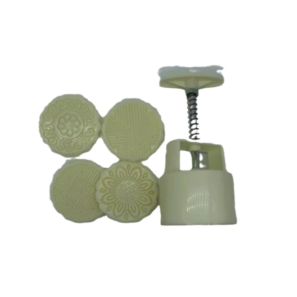 产品说明:月饼模具,带弹簧,4个花形花片,可随意更换花片形状,操作简单。做月饼模的好帮手。