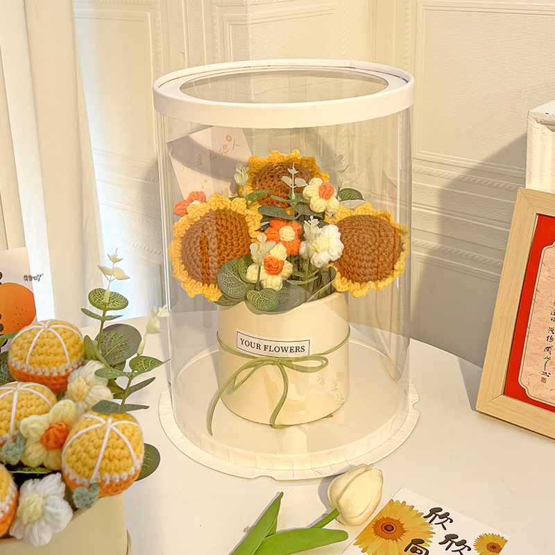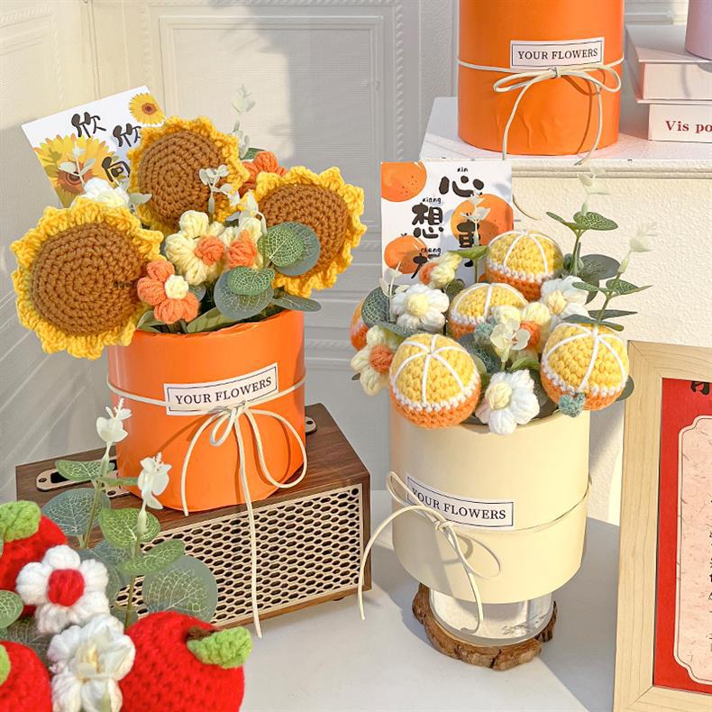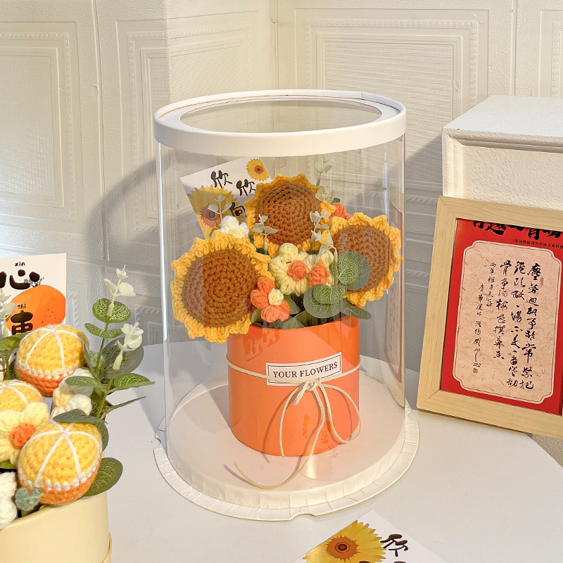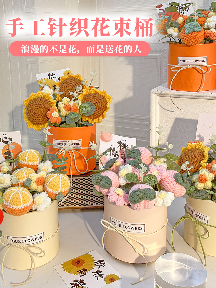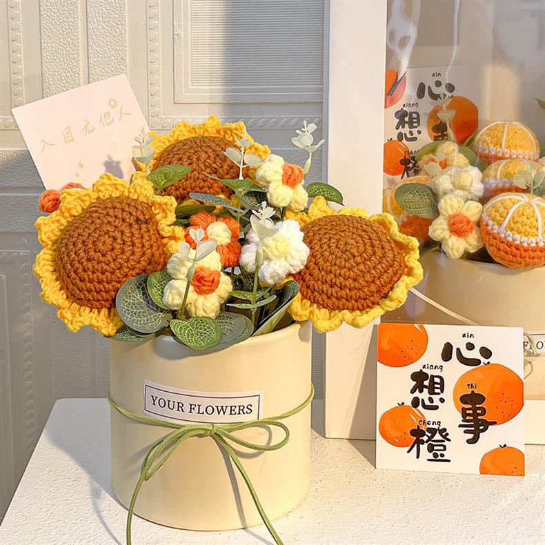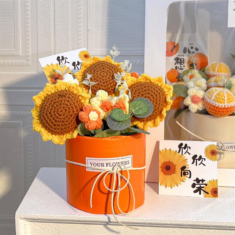 高级感针织向日葵花束抱抱桶手工编织成品高档礼盒装跨境批发零售