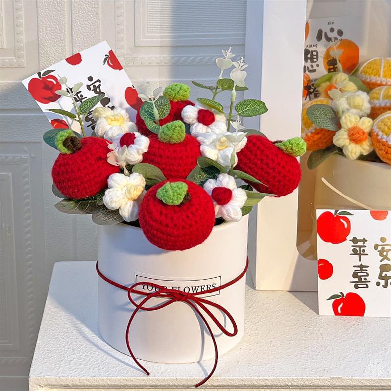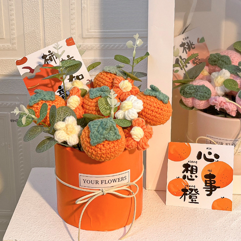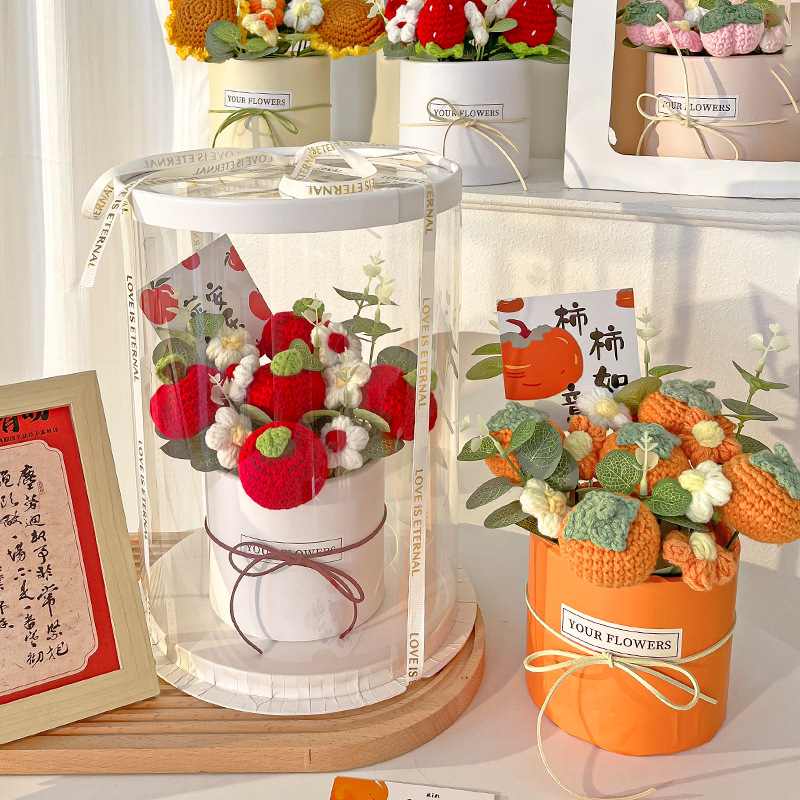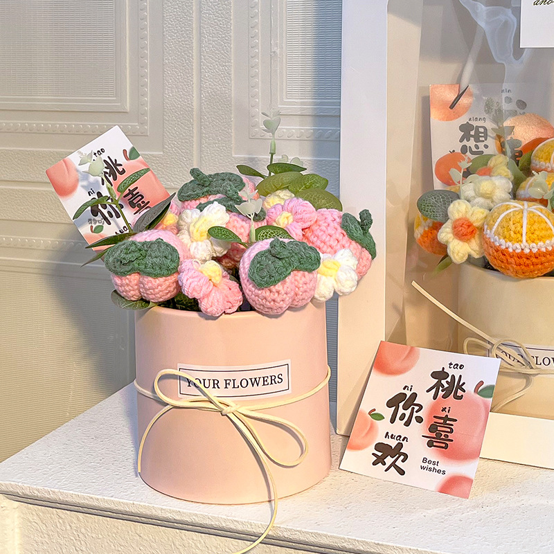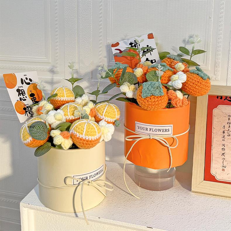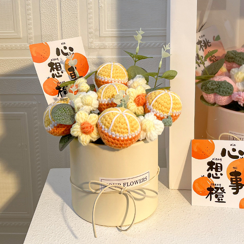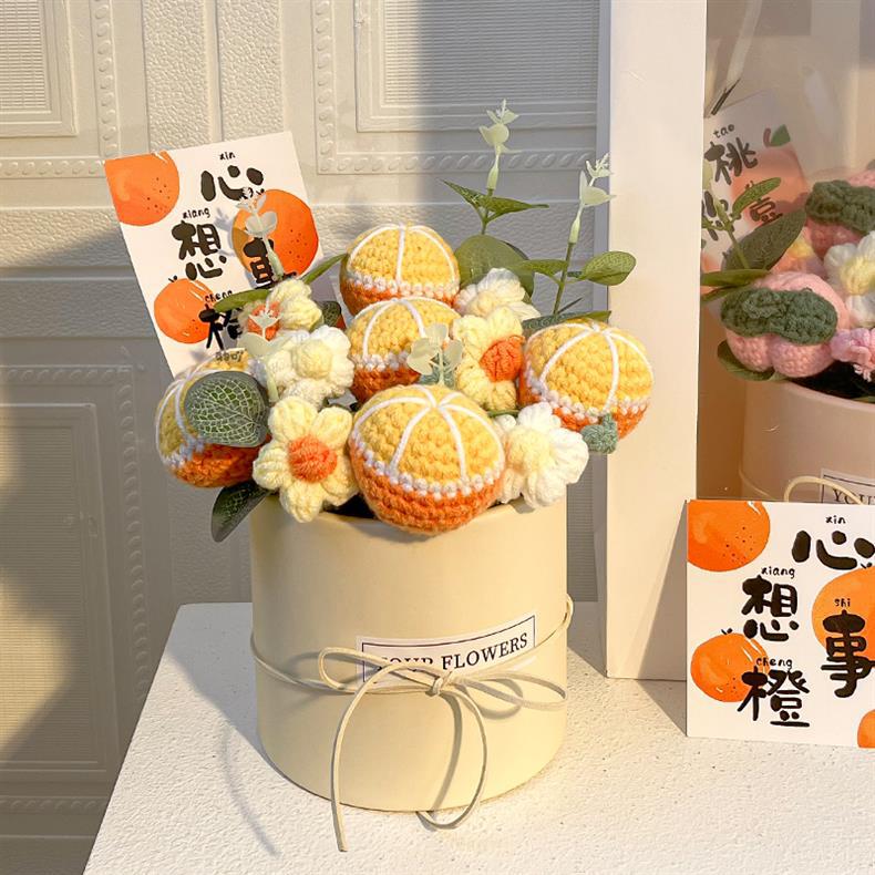 高级感针织向日葵花束抱抱桶手工编织成品高档礼盒装跨境批发零售
