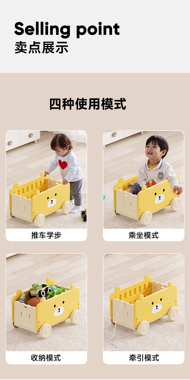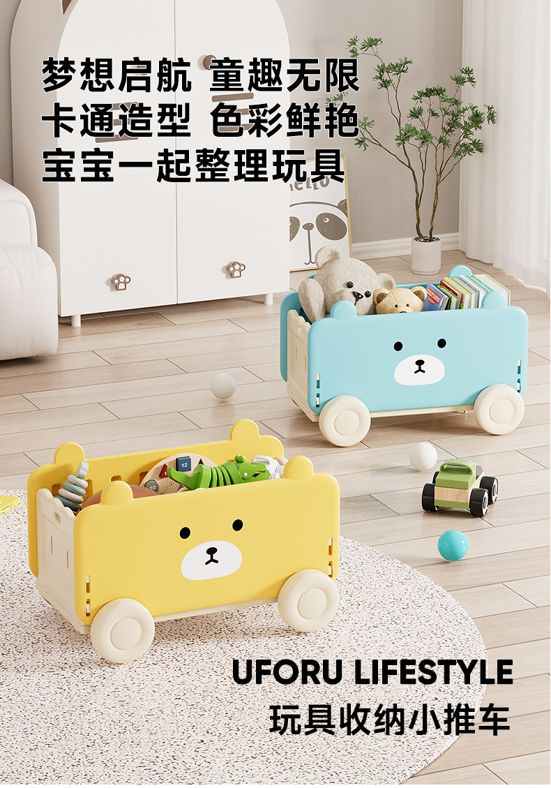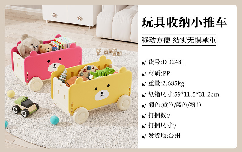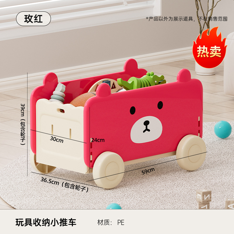 儿童玩具收纳箱家用带轮可移动小推车宝宝零食图书玩具大号整理箱